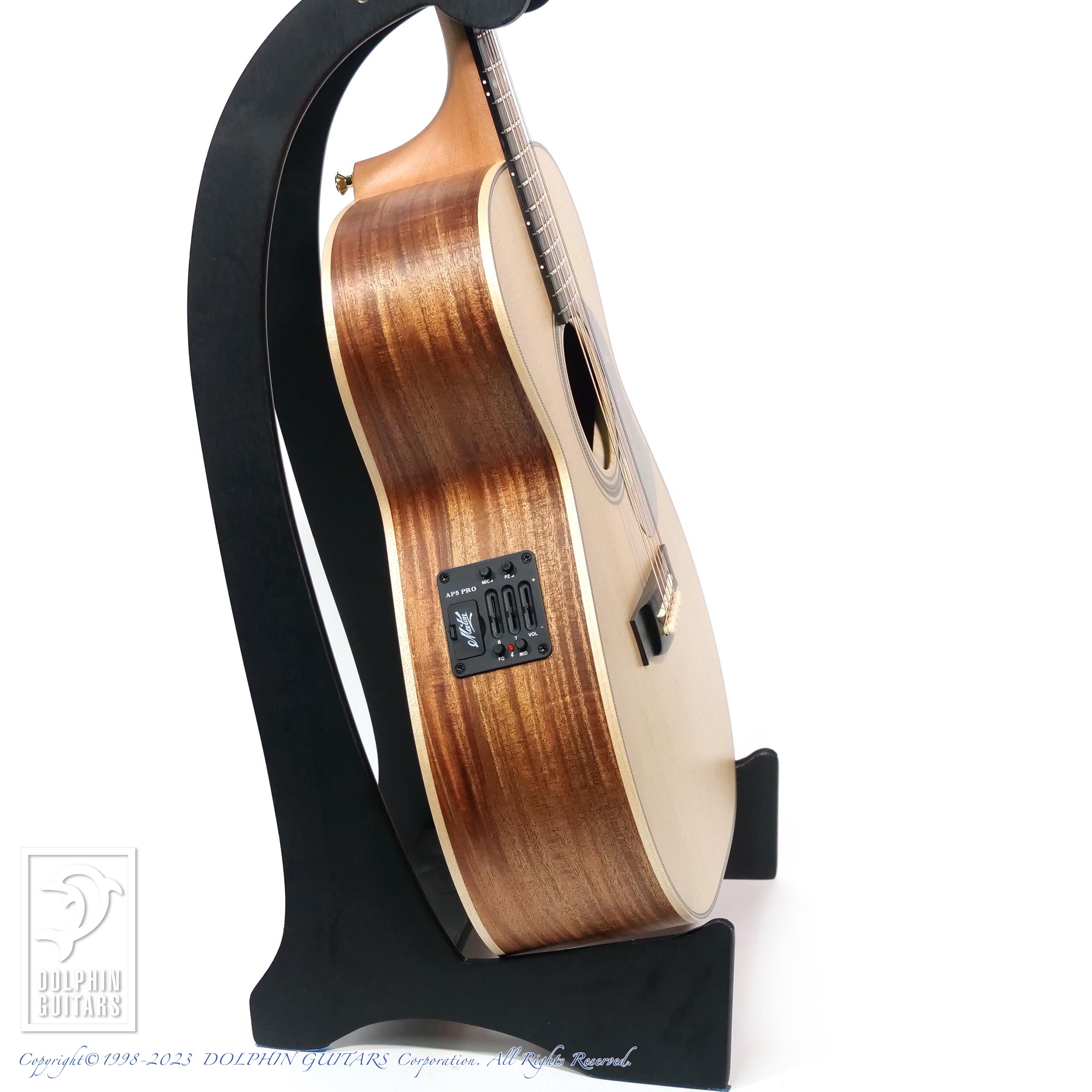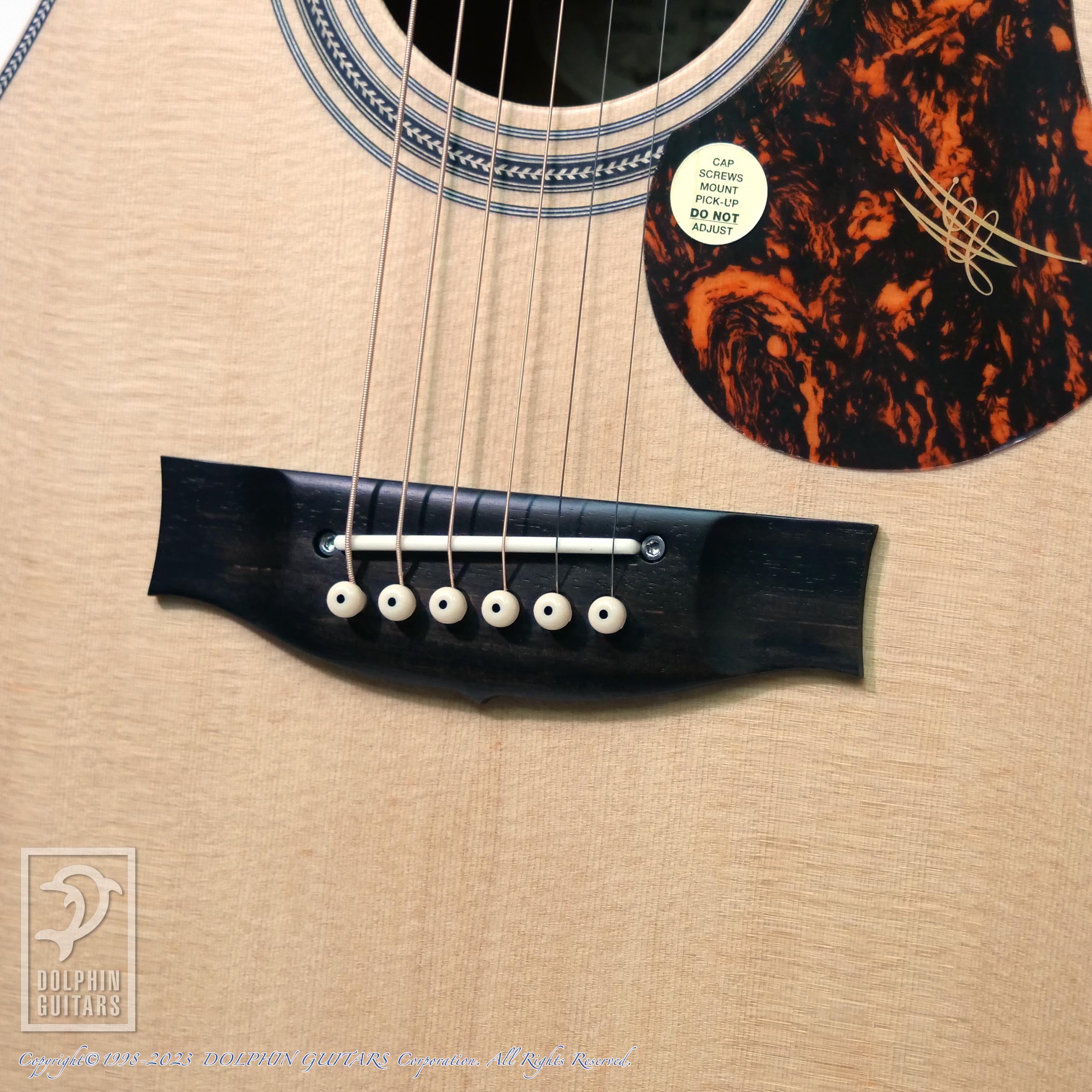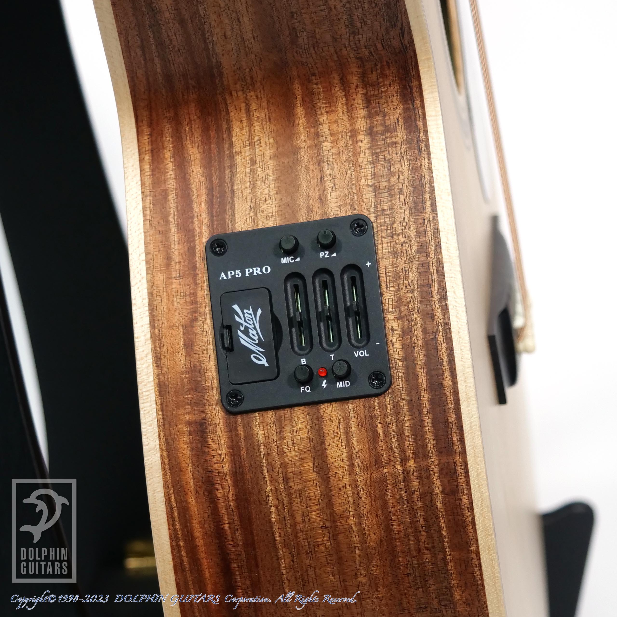 搭載されたAP5pro・ピックアップ・システムは、オリジナルのアンダーサドル・PUにコンデンサーマイクを併用する事により、奥行きのある音域と抜群なエアー感に加え、ボディー・ヒット音も余すことなくアウトプットします。また、高い出力を持つプリアンプを内蔵しておりますので、外部プリアンプ等を使用せずとも、そのままプラグインしていただければ極上のサウンドをお楽しみいただけます。PUとマイクVolは完全に独立しており、手元での出力バランス調整が可能ですのでお好みや現場に合わせてご使用下さい。