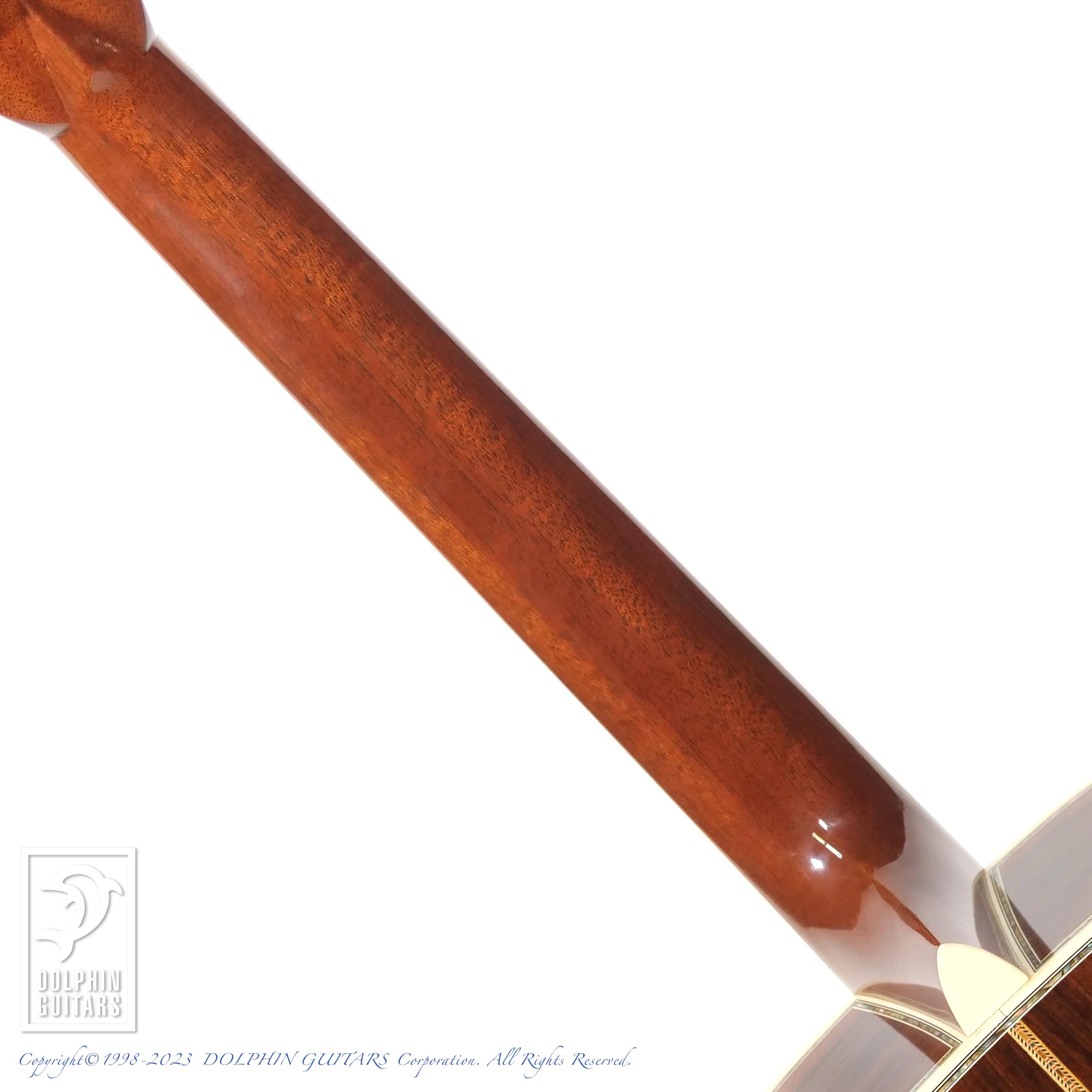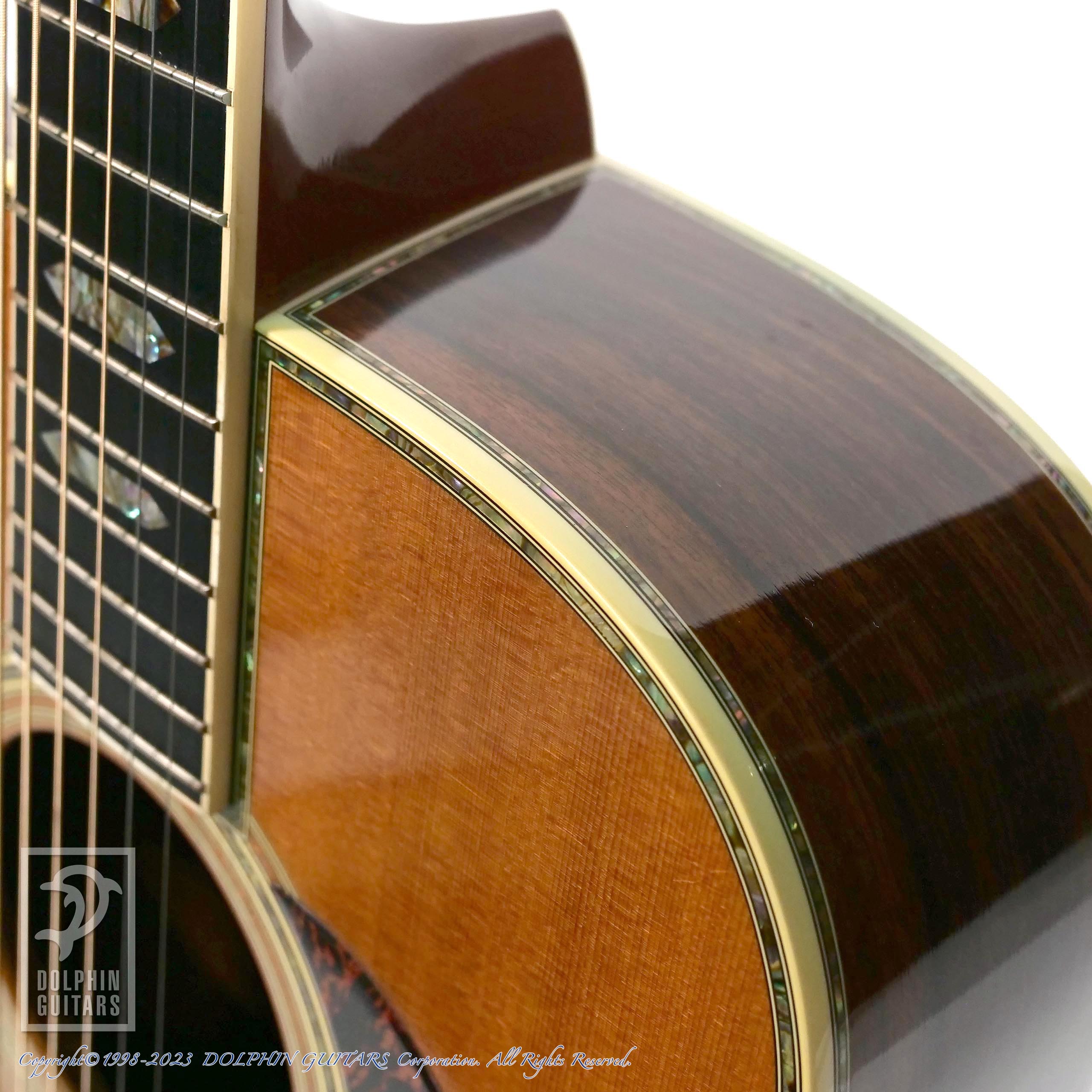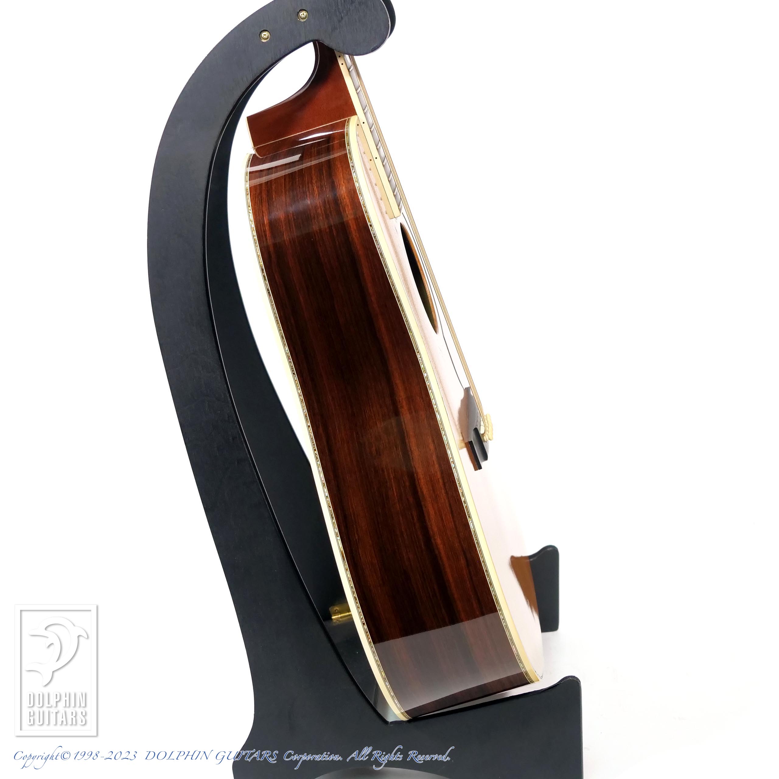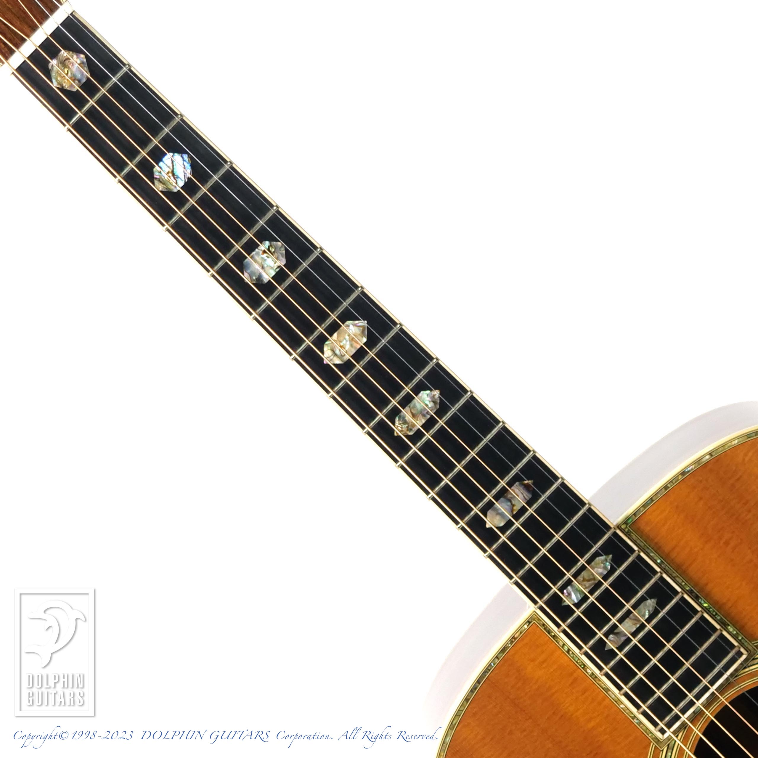 マーティンのお約束でもあるウェスト部のバインディング再接着あとがございますが、その他は消耗パーツのサドル交換以外、ストラップピンも打たれていないオリジナルの状態です。薄く現れ始めたウェザーチェックや渋くやけたトップがマーティンファンにはたまらない恰好の良さを演出しております。
