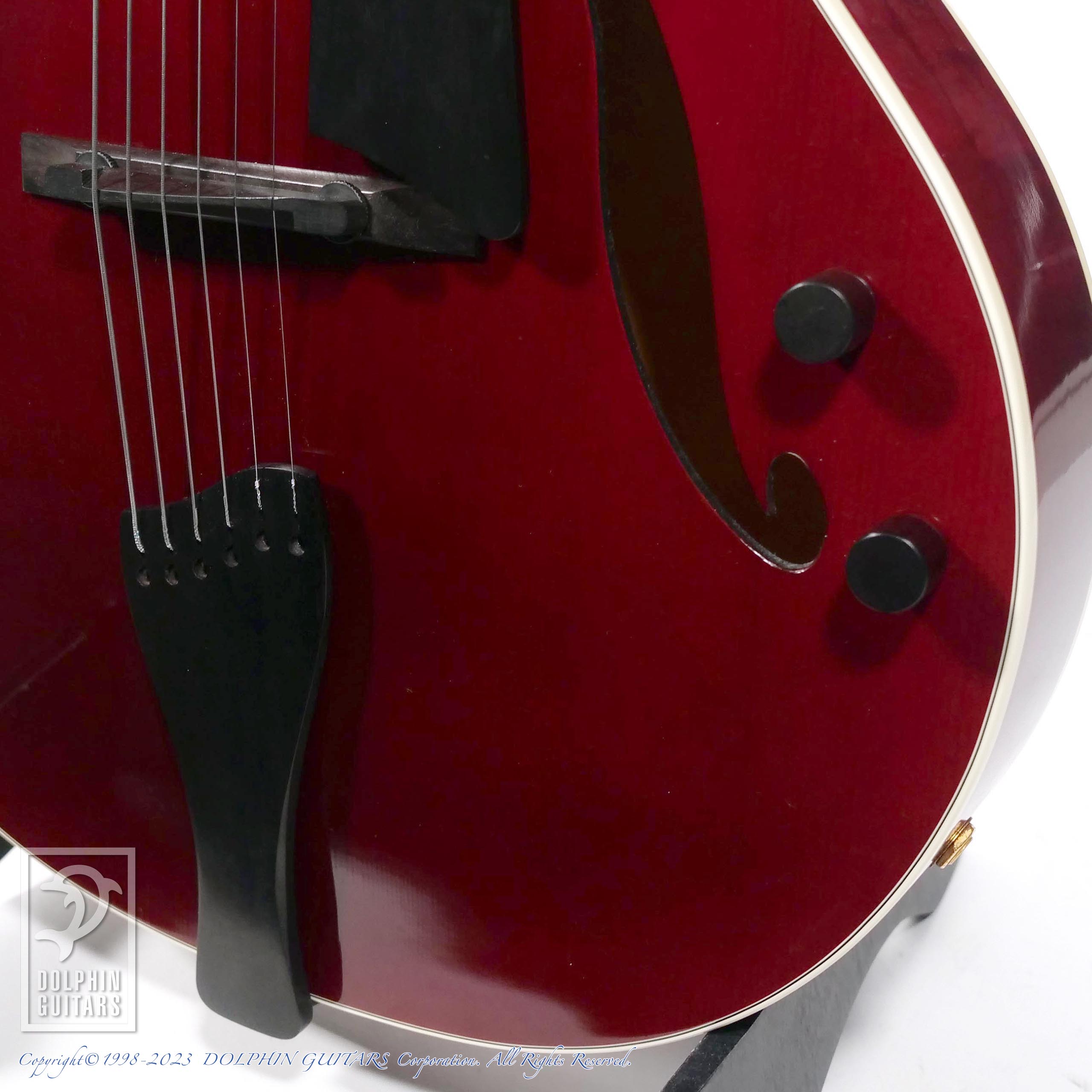 薄めのボディですが、十分にふくよかなトーンを持つモデルで、フルサイズの鳴りを気軽に持ち運びたいというジャズマンの要望を叶えました。