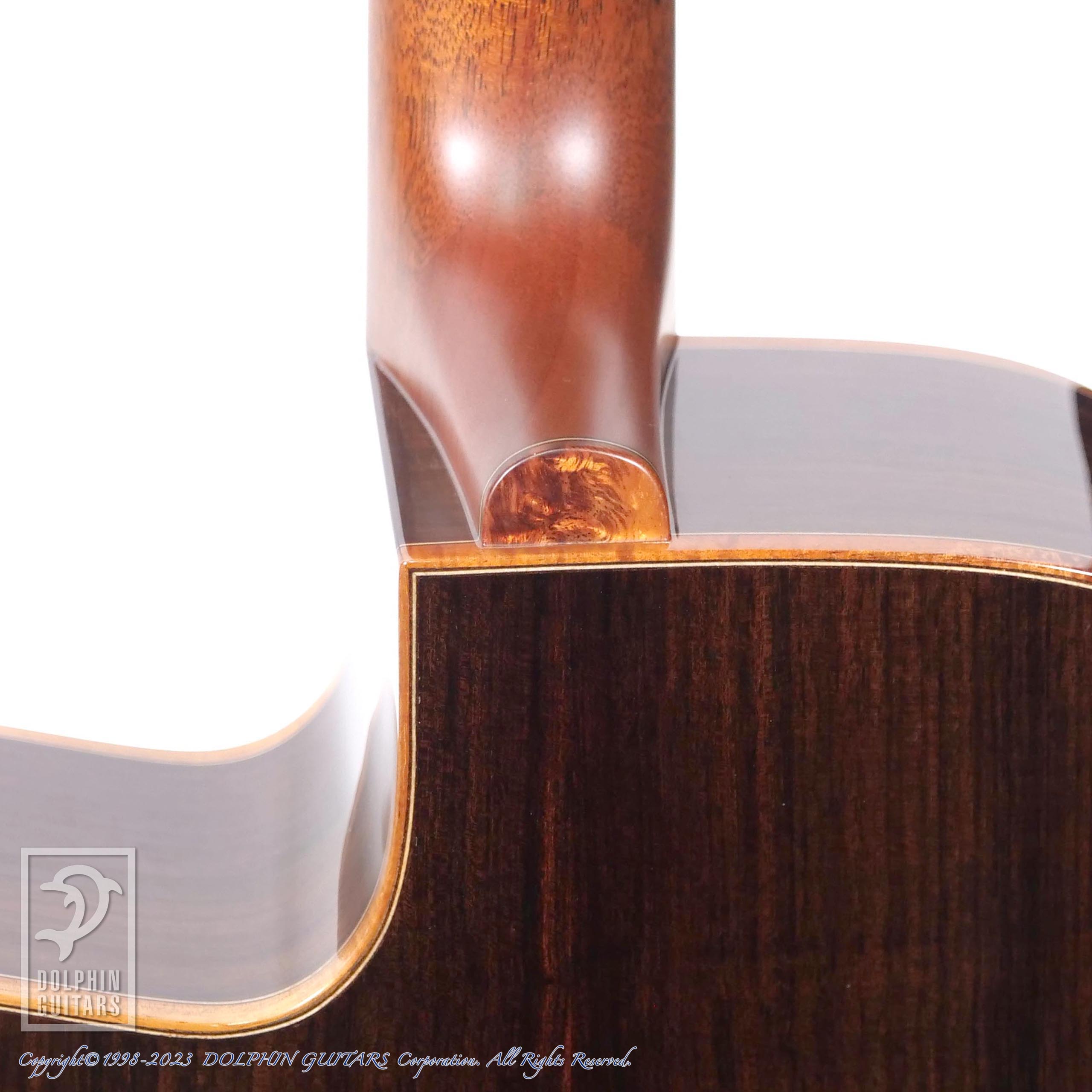 日々進化するルシアーメイドシリーズは、その時のベストが尽くされ様々なアイデアが盛り込まれます。今回完成したS-131は、レギュラーのSシェイプよりもジョイント部で約5mm、エンド部で10mm以上薄胴になっており、ラウンドバック+シンボディにより、弾力、深みがありながらも非常に反応速度が早いサウンドメイクとなっております。フィンガースタイルに特化したモデルだけあって、繊細なタッチでも気持ち良く反応してくれると演奏も随分と楽になります。