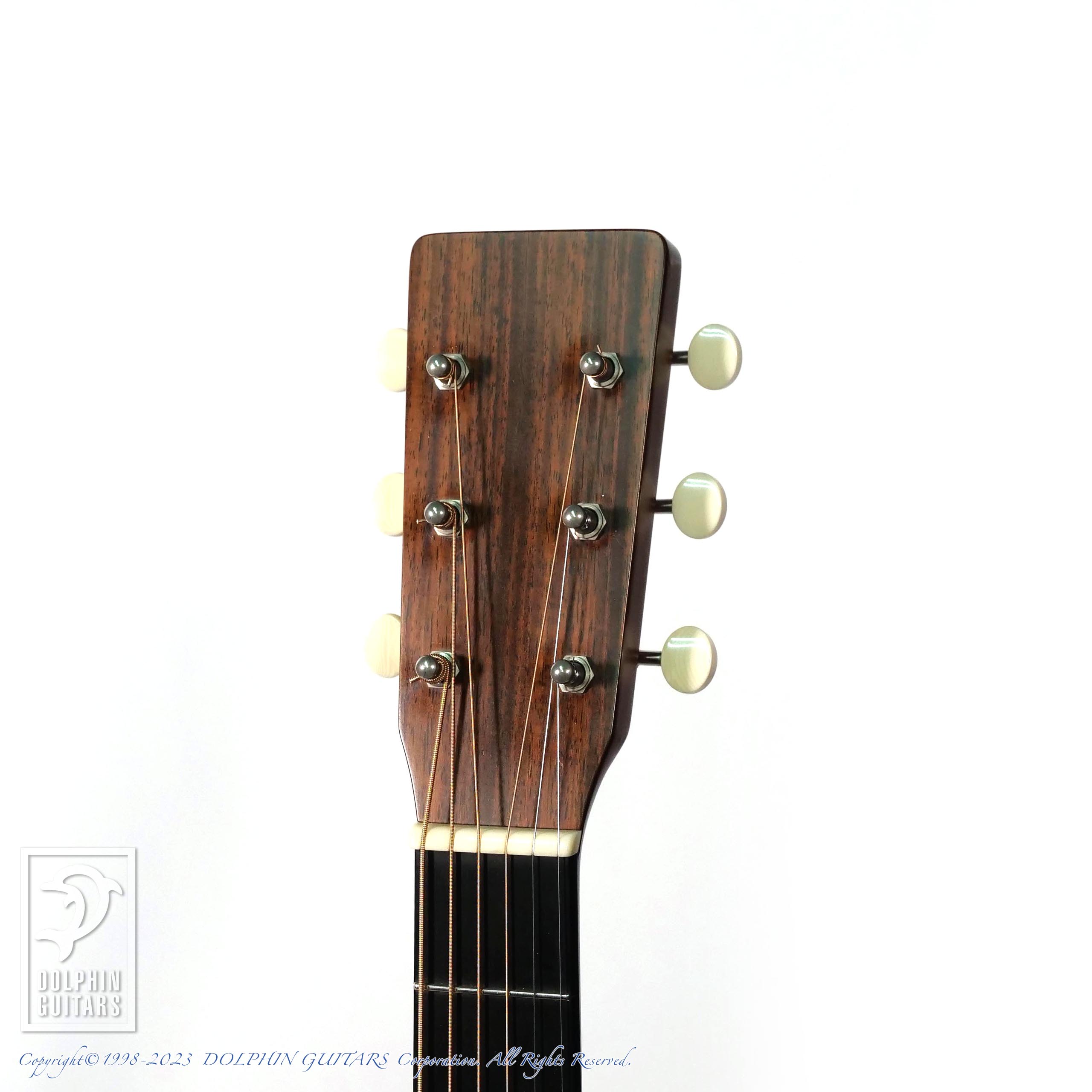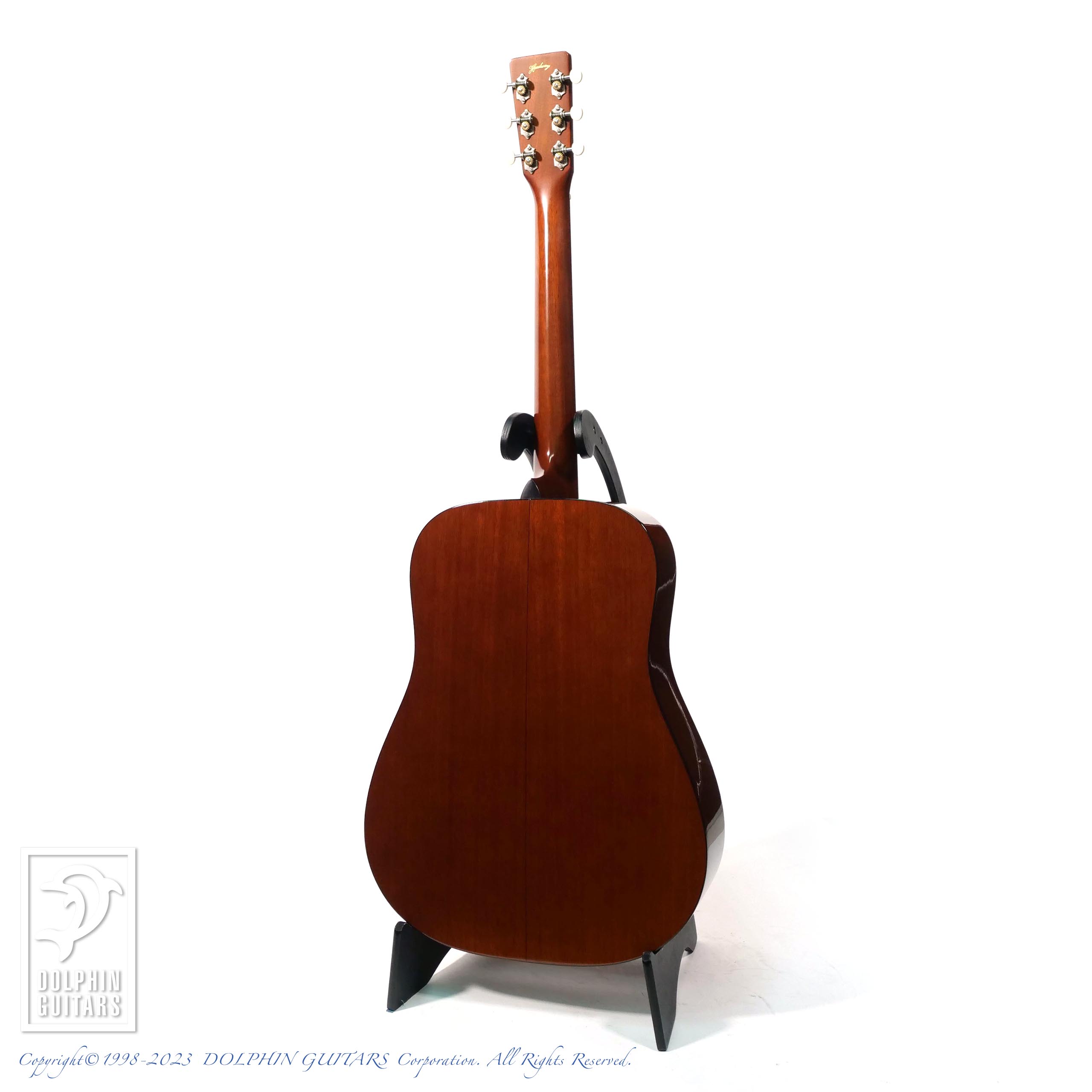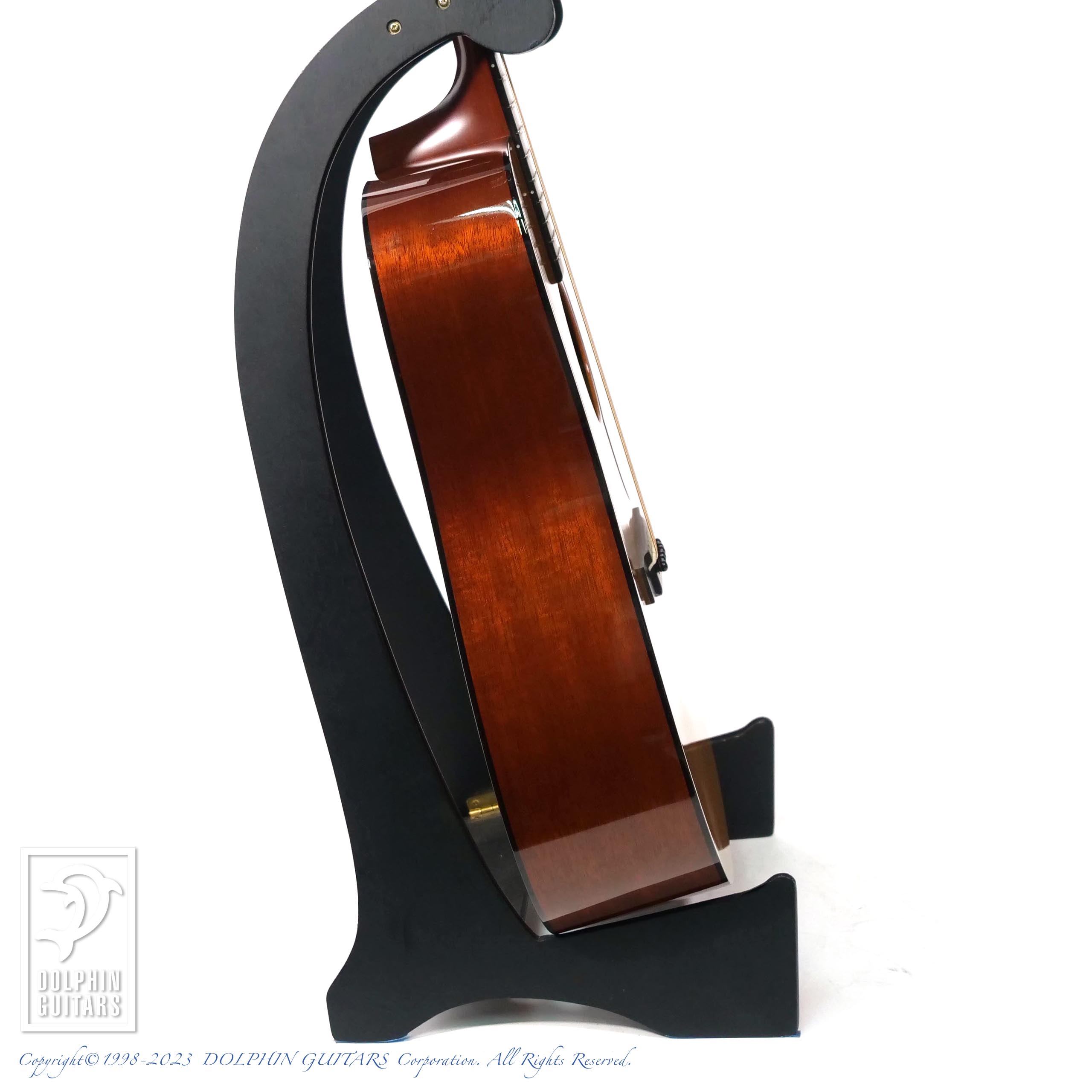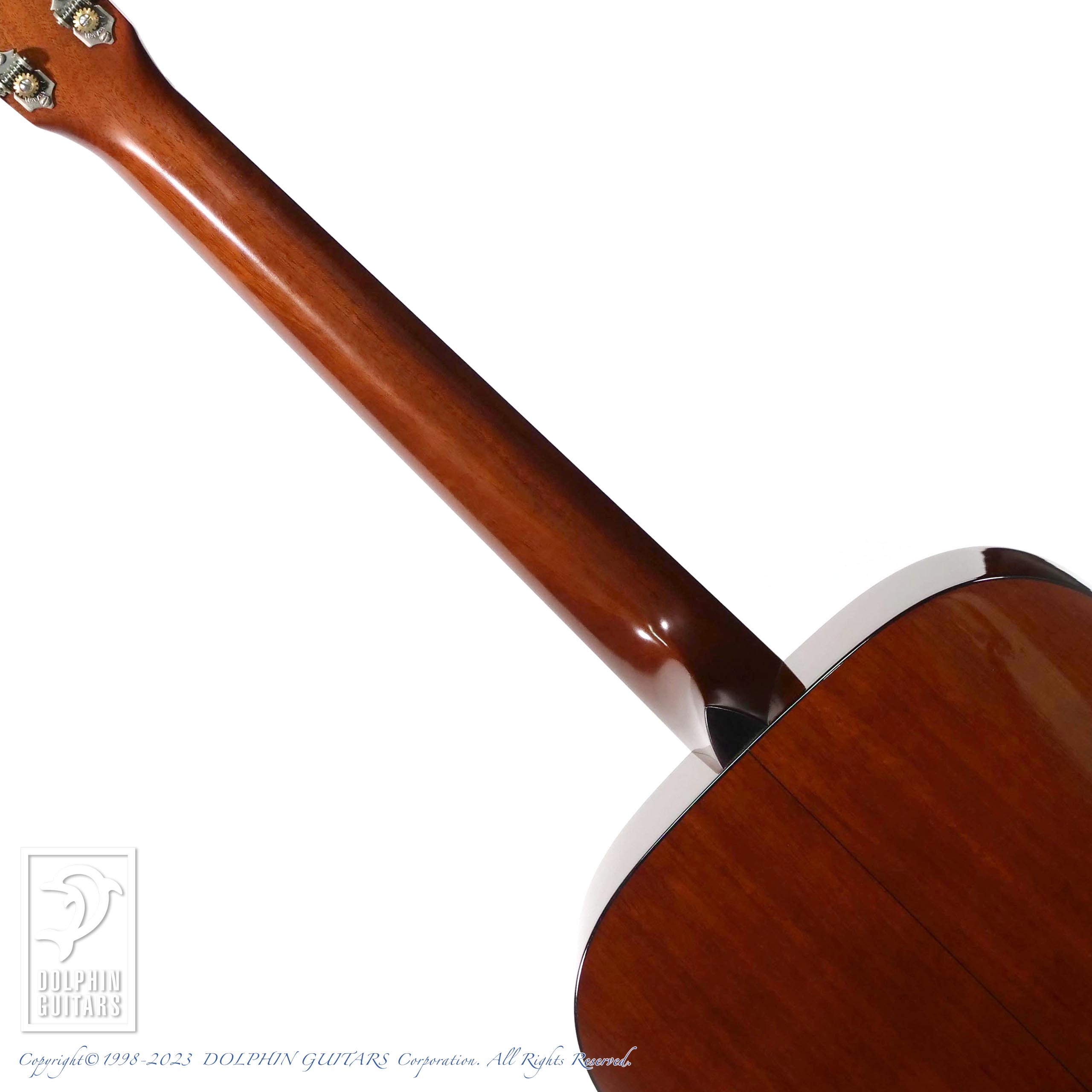 1938年のD-18がモチーフとなっており、トップは、アメリカンレッドスプルース、厳選されたマホガニーボディを持ち、ロングサドルやエイジングトナー入りのオールラッカーフィニッシュや白つまみのウェイバリーペグなど、拘りのヴィンテージスペックが満載な仕上がりです。ロゴのないヘッドプレートも非常にクラシカルです。