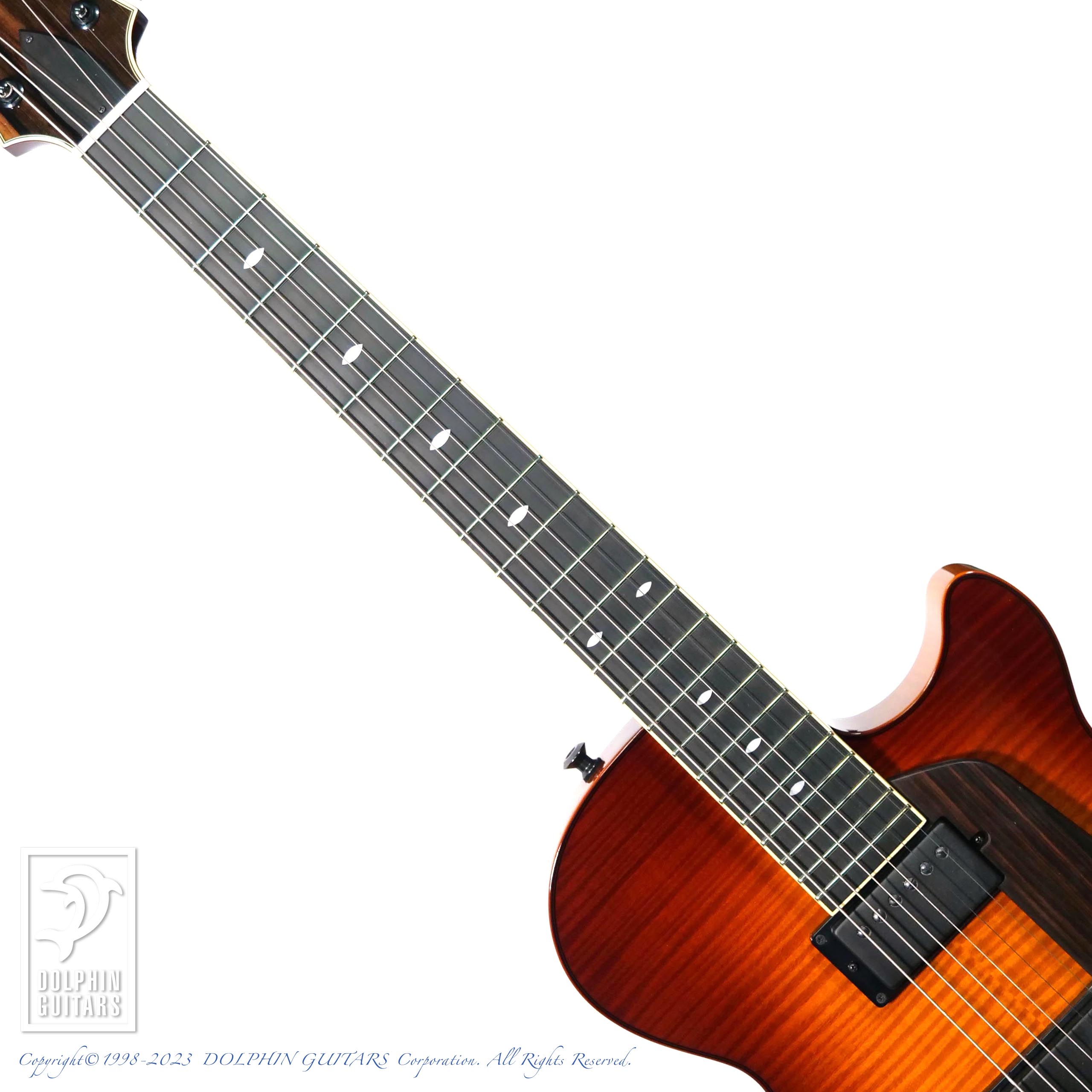 パーツ類は黒に統一されており、シンプルなキャッツ・アイ・インレイと相まってスタイリッシュな仕上がりです。