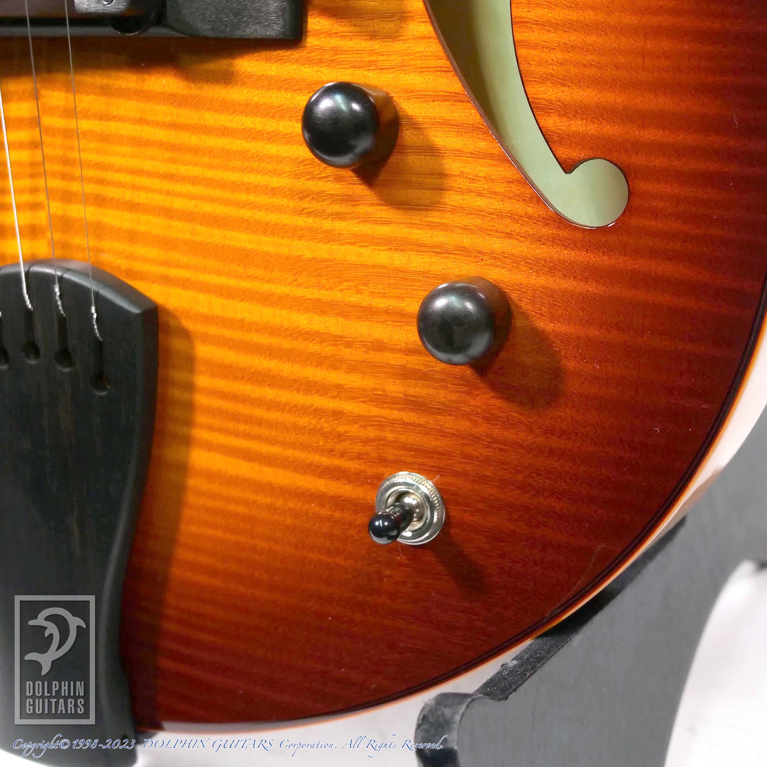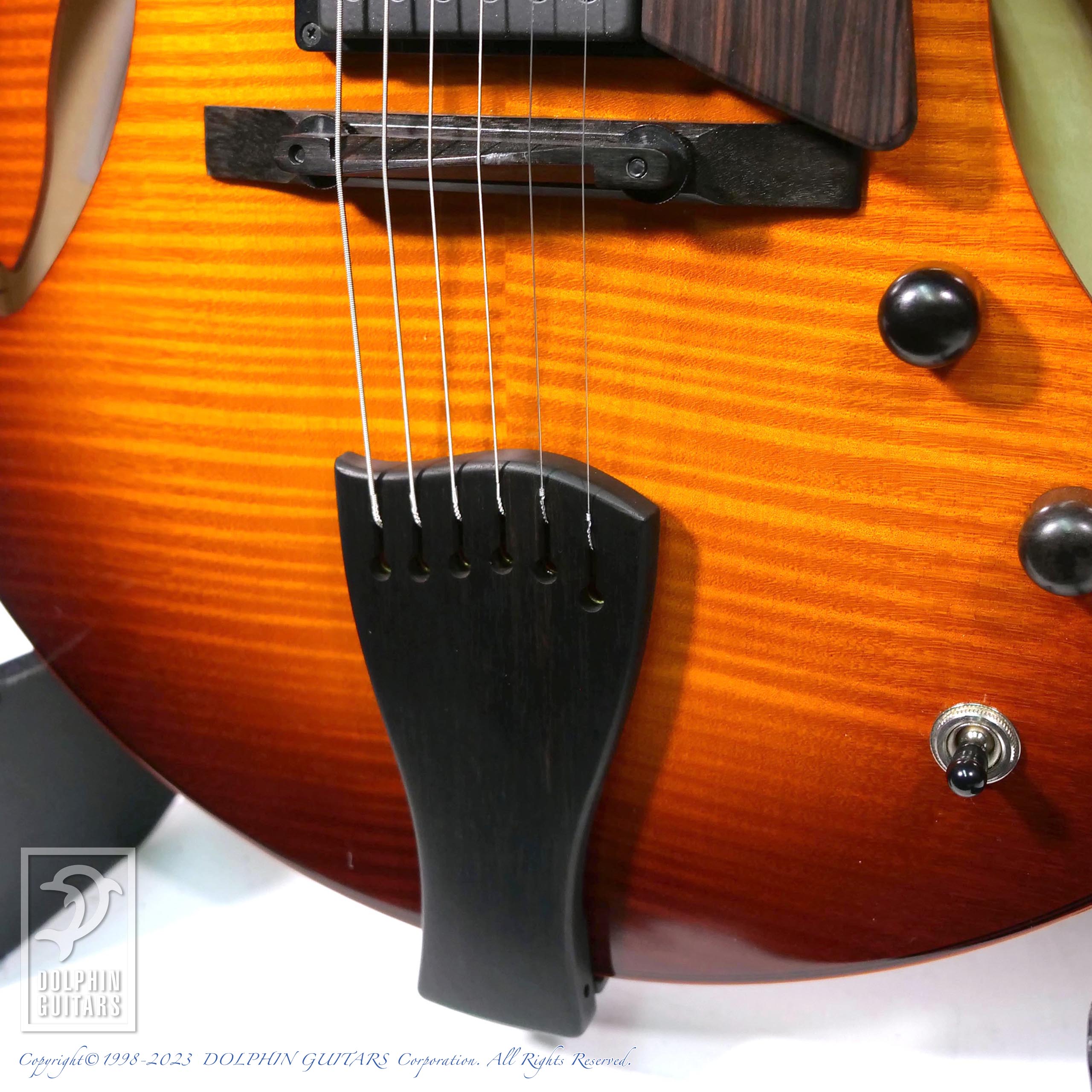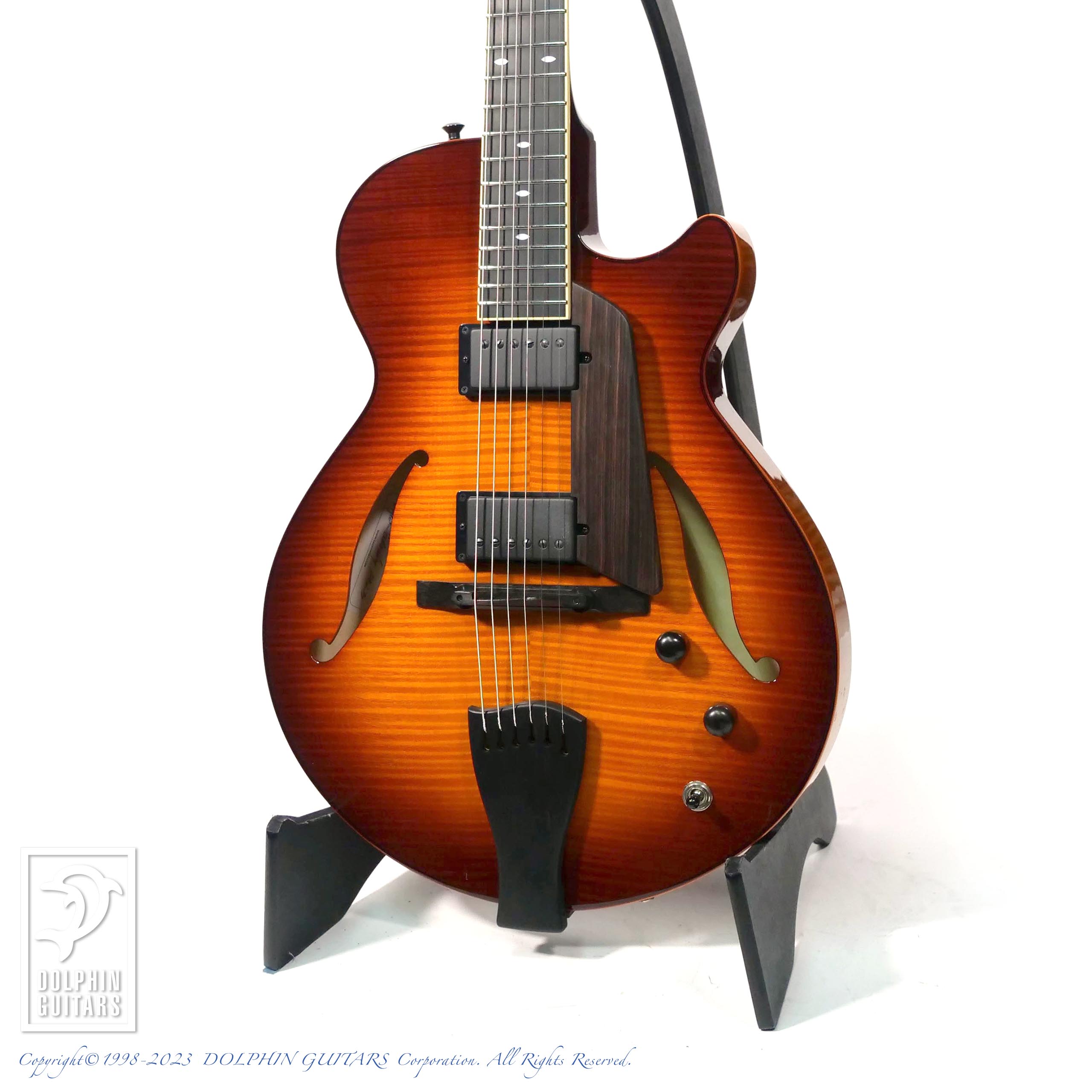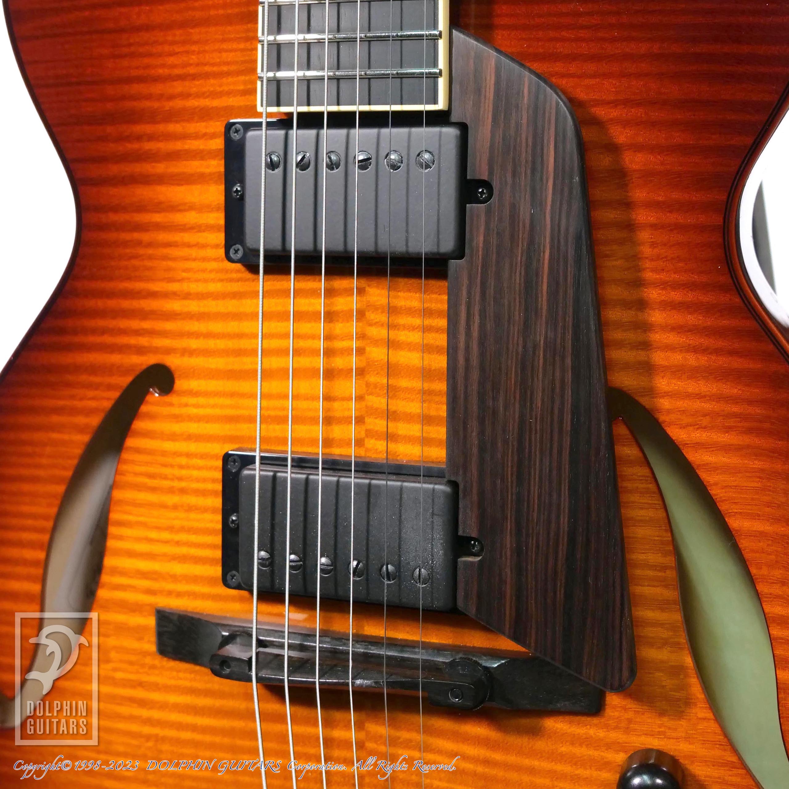 仕様は人気のSS-15モデルにリアピックアップが追加された2HBバージョンです。従来ジャズギターに於いてリアピックアップの存在は重要視されてきませんでしたが、このジャンルでも多様化が進み、新たなジャズサウンドのバリエーションとして現代では多く求められております。