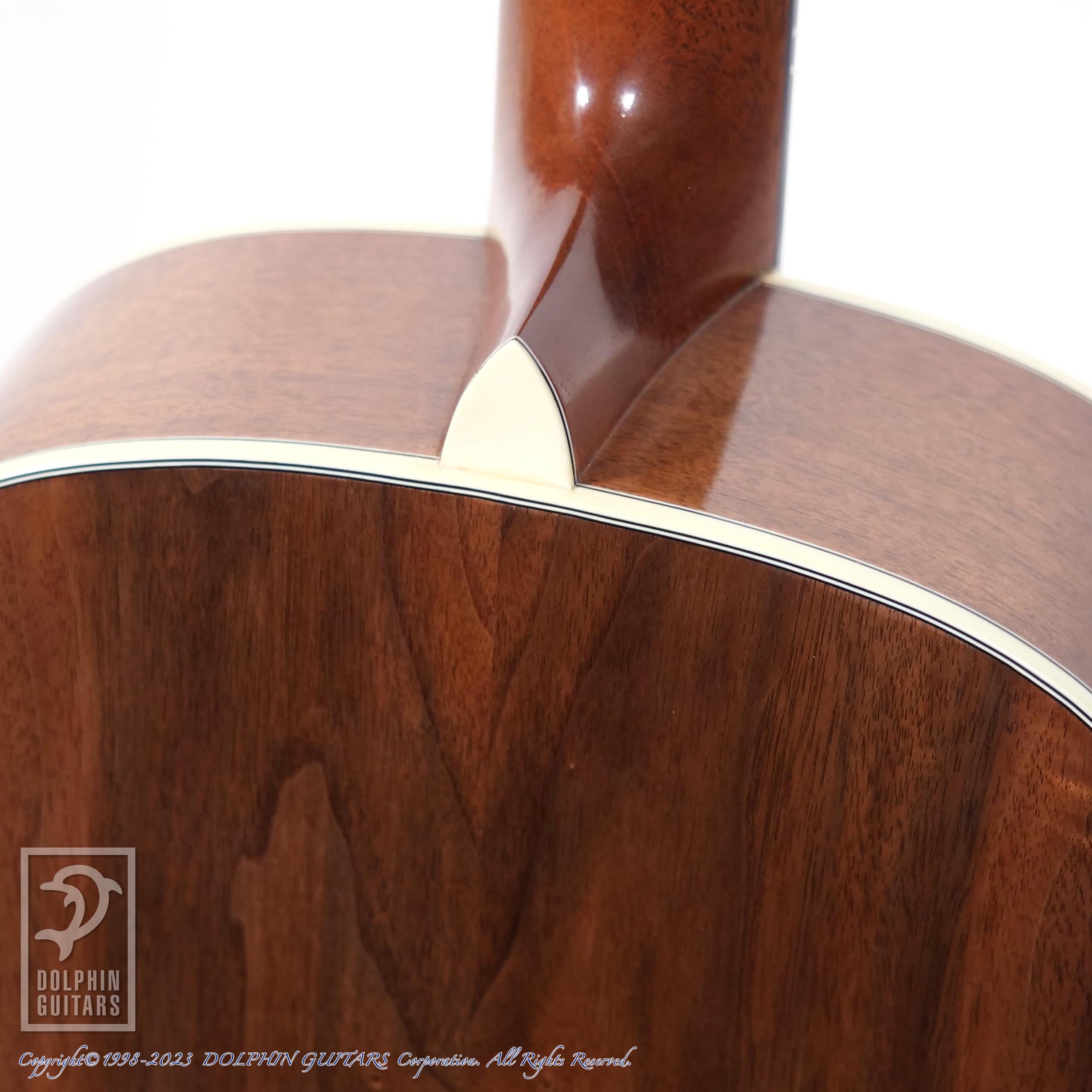 アンティークバーニッシュフィニッシュと名付けられたヴァイオリンニスで仕上げられた本モデル。古き良きギブソンをモチーフにしており、正にアンティーク楽器のような経年した佇まいを見事に再現しております。適度にエイジング加工を施した雰囲気も好印象。この仕上げはルックスだけではなく、サウンドにも大きく影響しております。ボディ全体が震え全方向に放たれるような厚みのある低音や、角が取れた自然な高音域はあらゆるアコースティックミュージックにマッチするでしょう。
