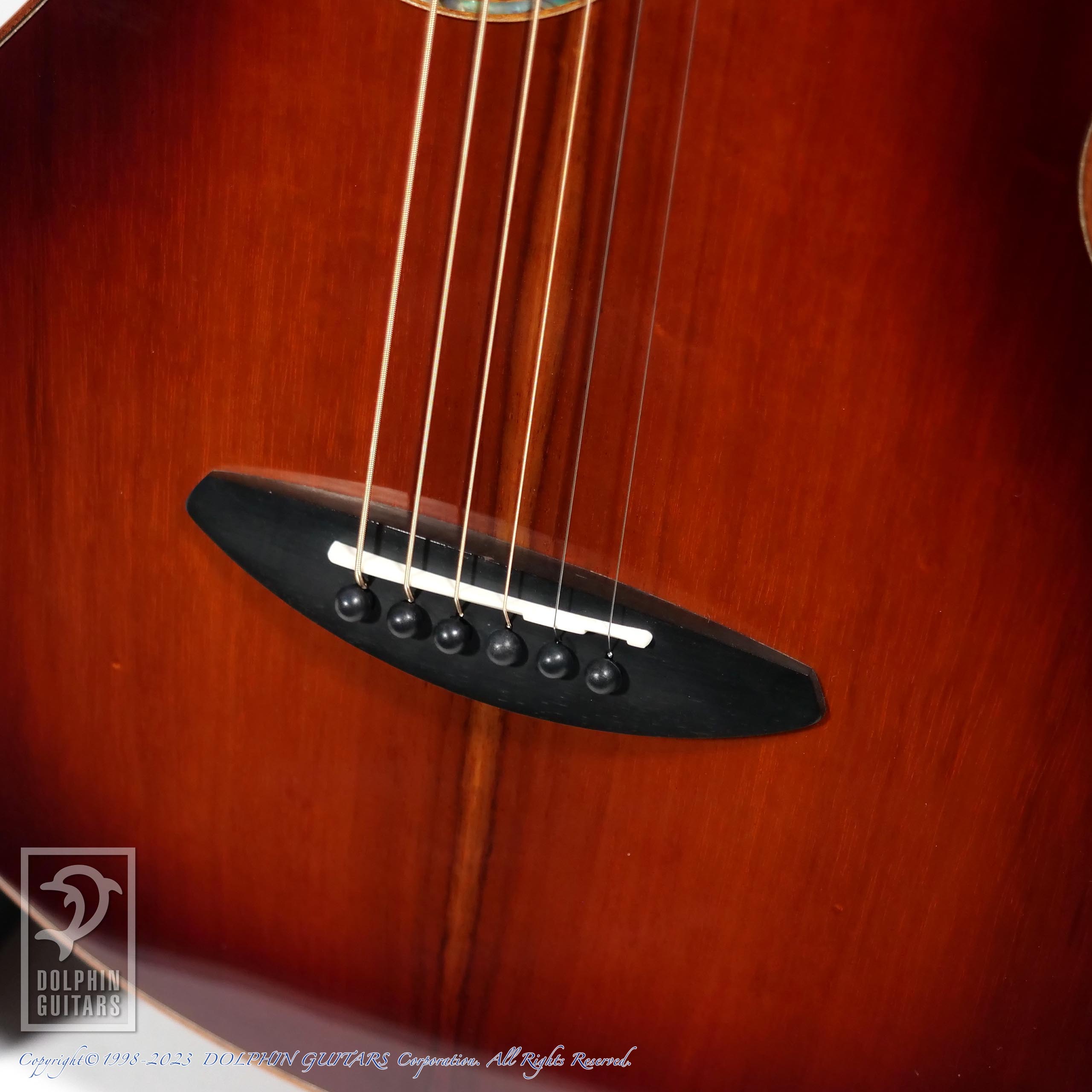 トップにはハワイアンコアを採用、サイドバックは台湾アカシアコアを贅沢に使用したモデル。アイスティーをイメージしたバースト塗装は眺める角度により明暗の表情を変え、深みのある大人びた印象を感じさせます。