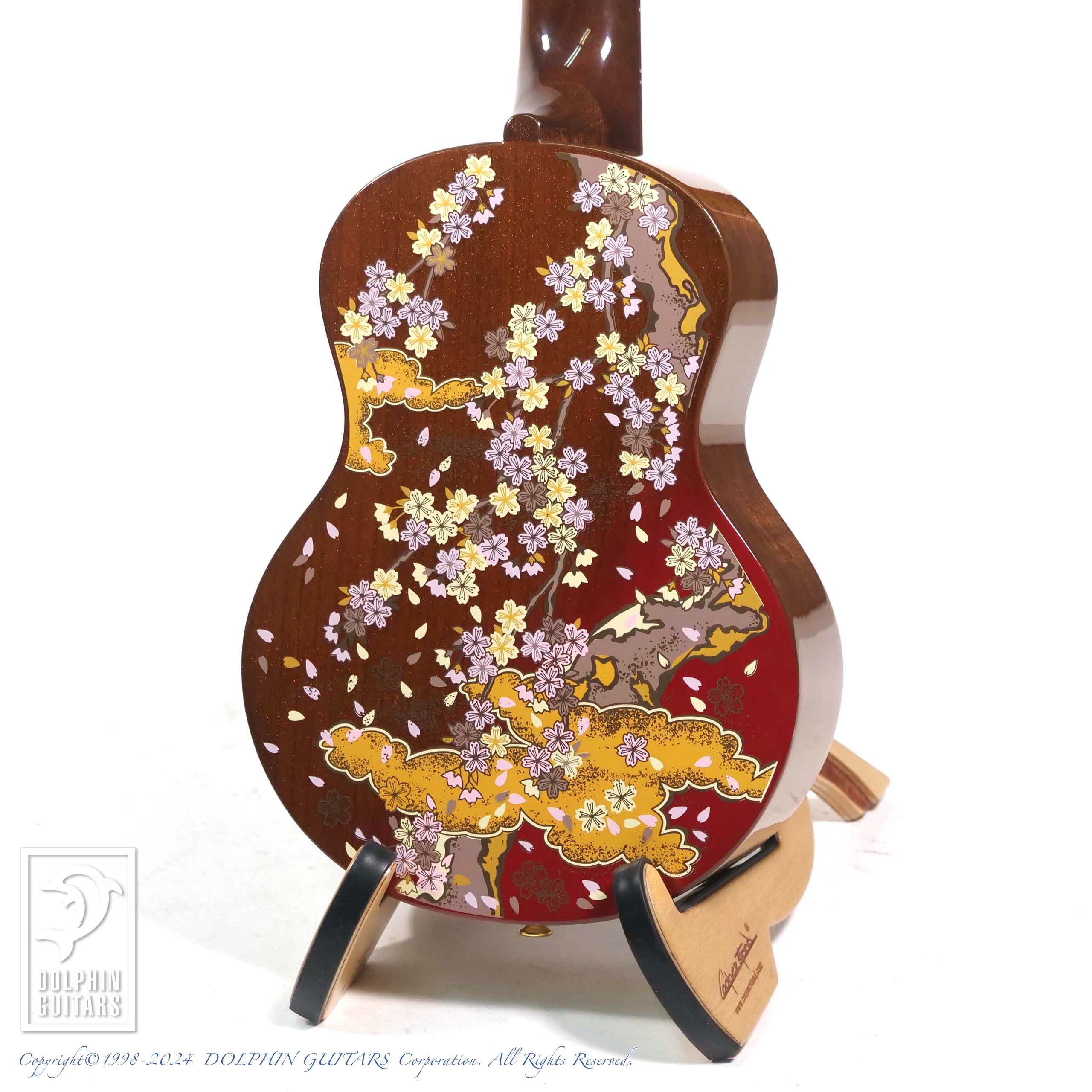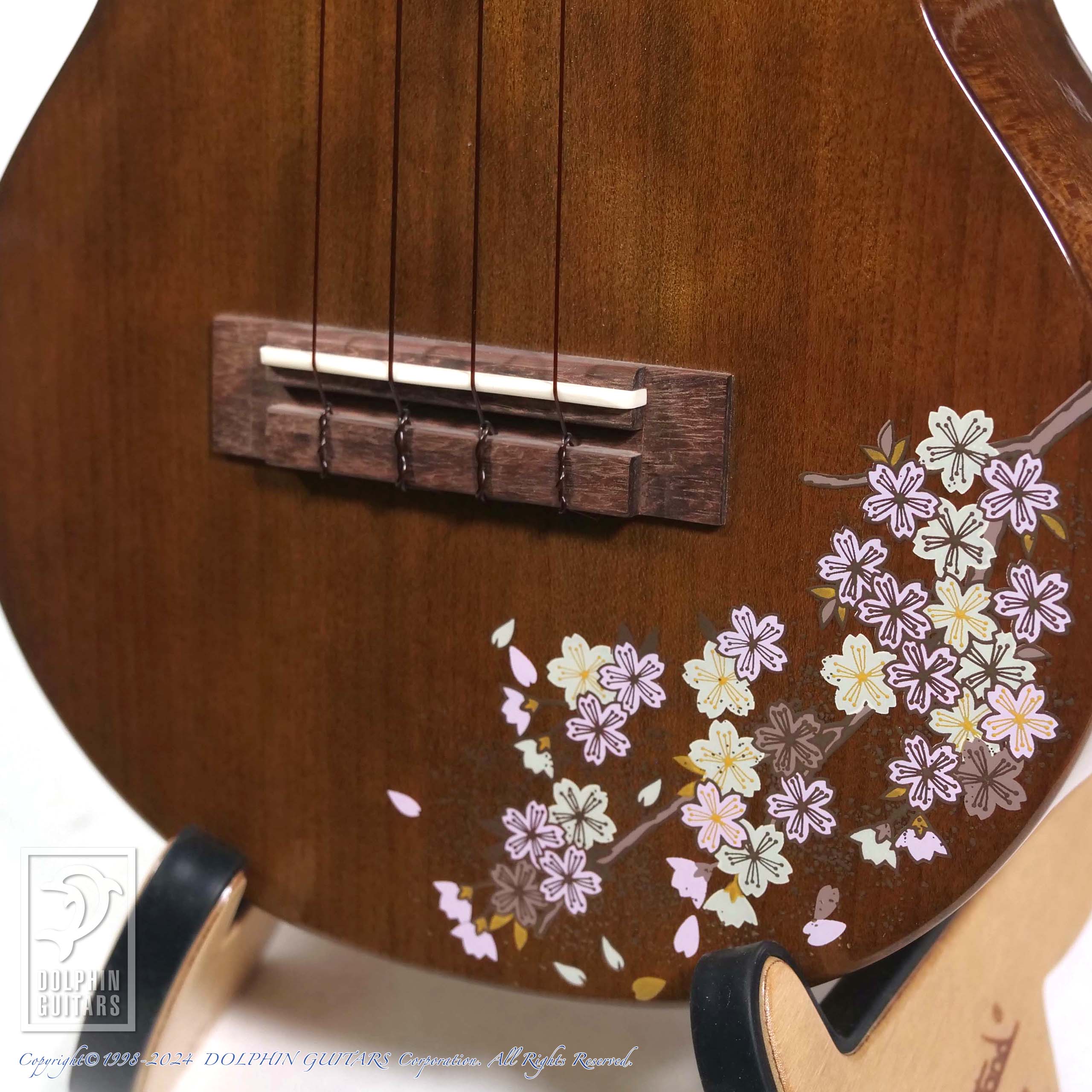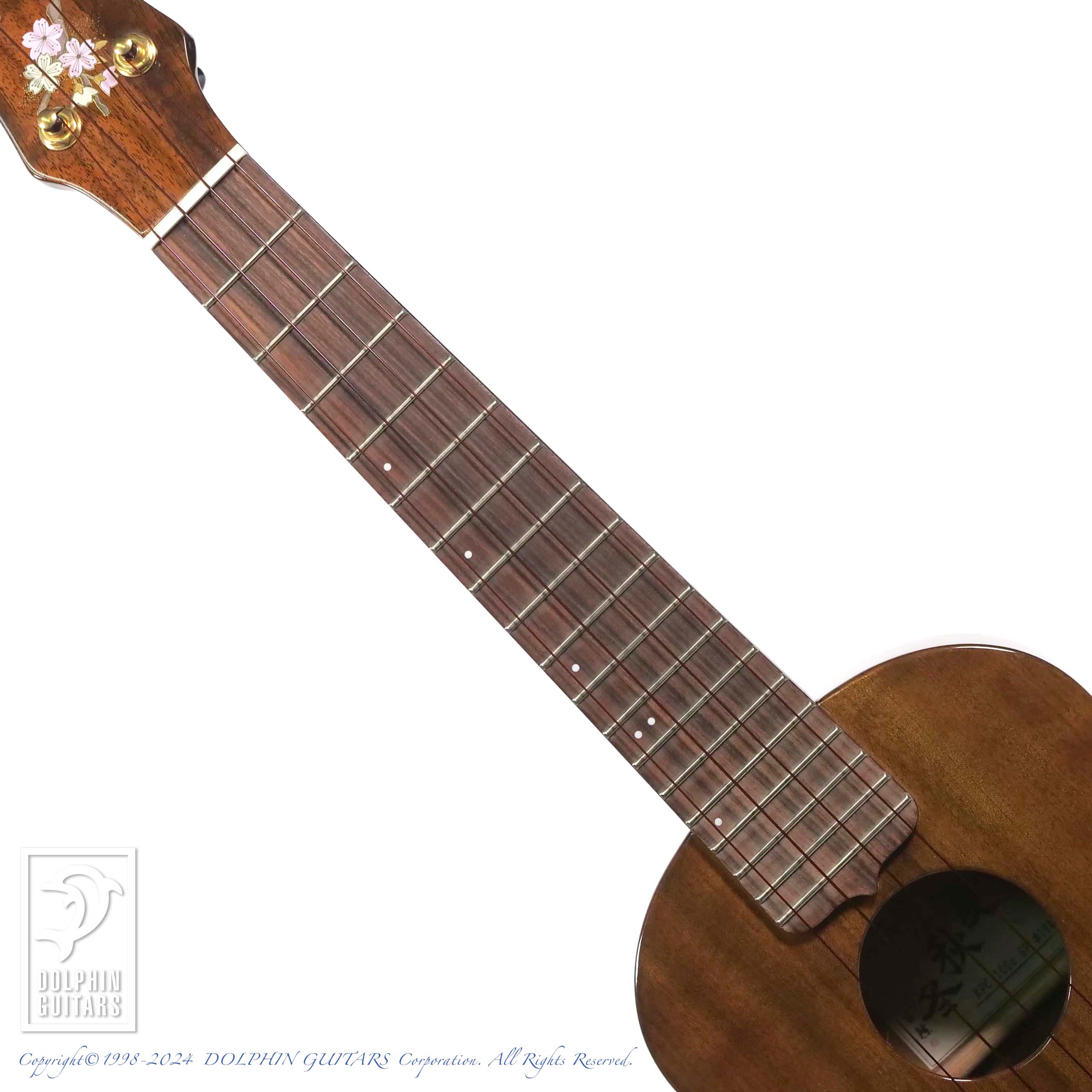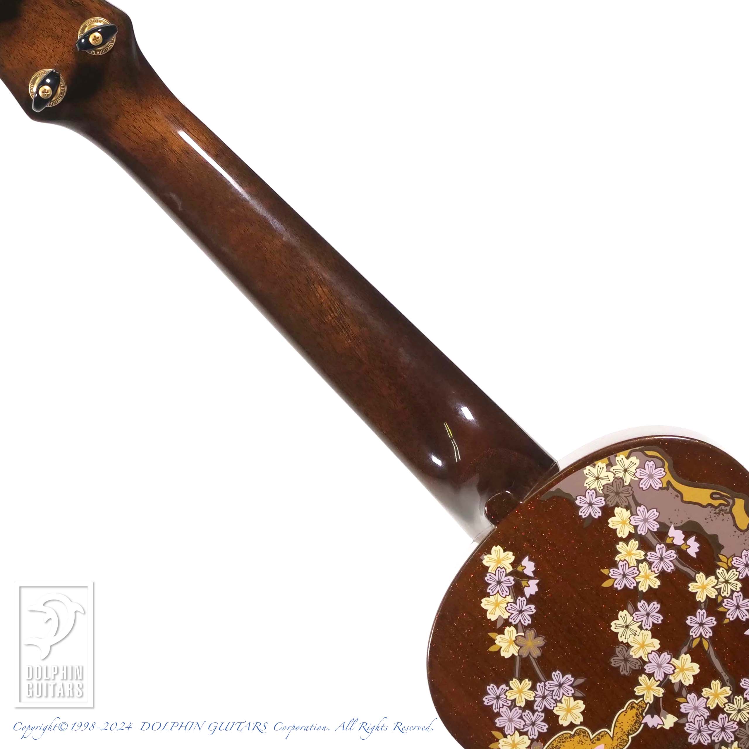 ボディ材には20年シーズニングしたチェリーを使用、そして、日本の伝統文化”漆・蒔絵”のデザインとなっております。日本の職人さんが丁寧に一本ずつ漆で仕上げており、日本とハワイの文化が融合したウクレレとも言えるでしょう。