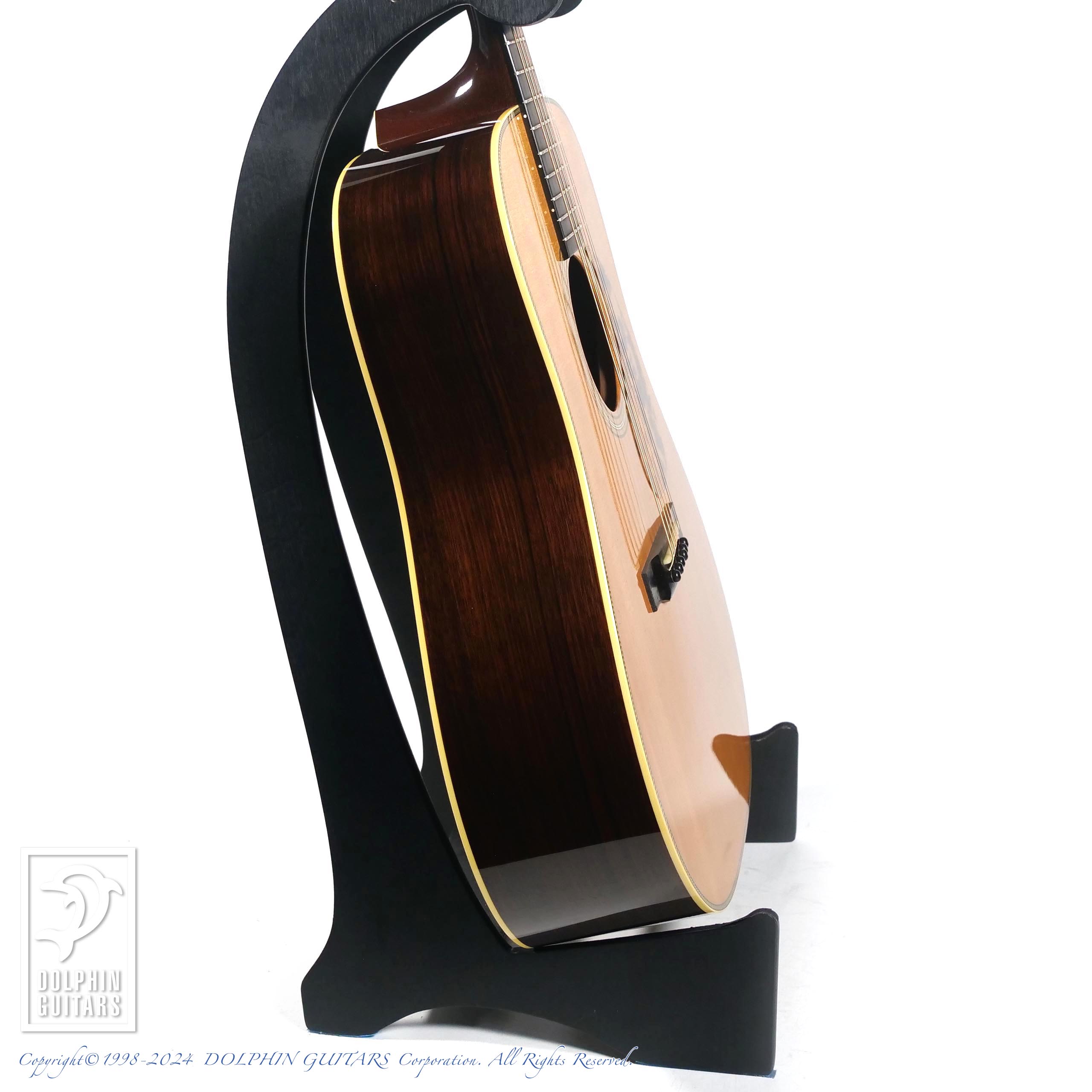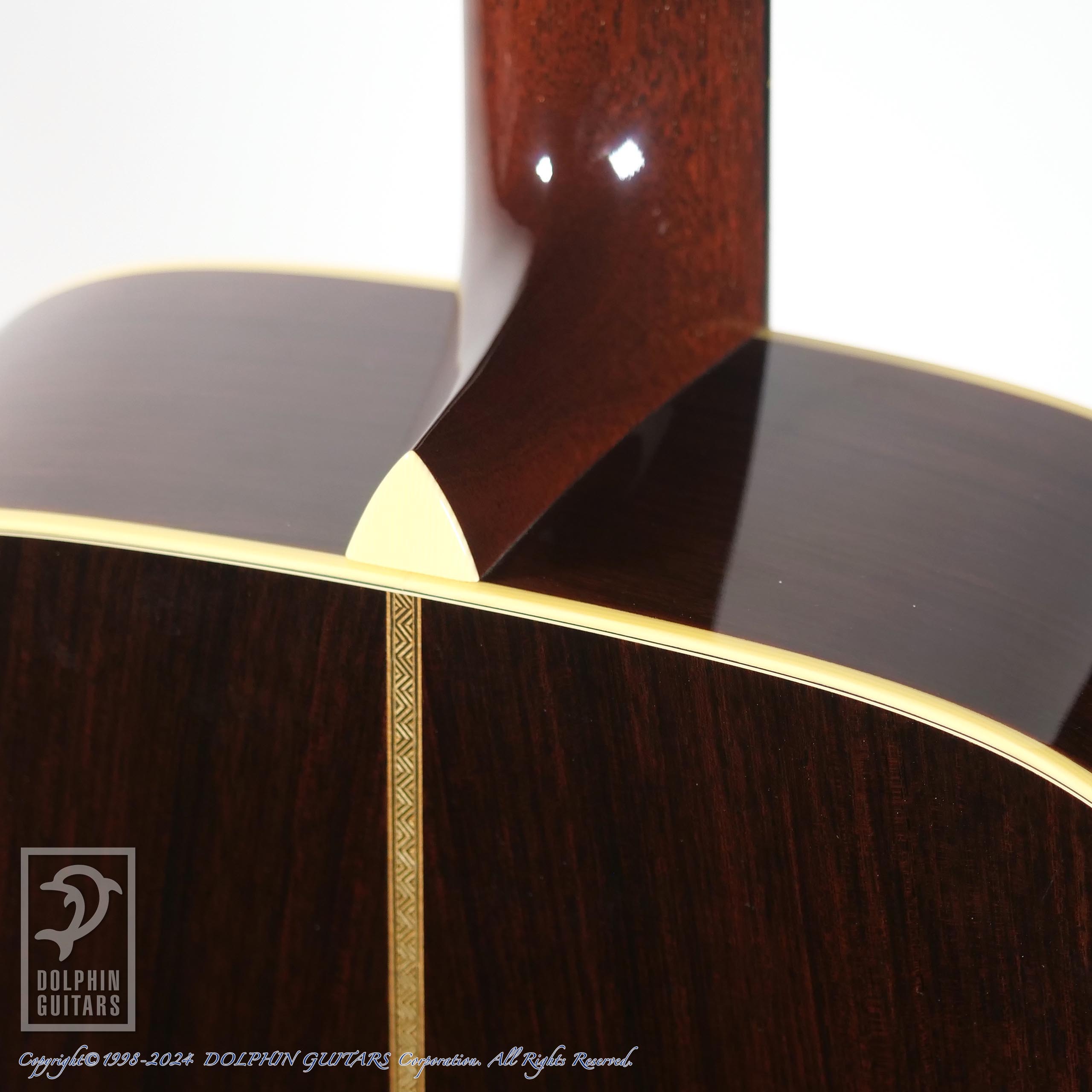通常のフィニッシュとは比較にならないほど手間と時間がかかるバーニッシュ・フィニッシュ(天然成分によるニス仕上げ)。1800年代の楽器のようなとても深い質感で、楽器の本質であるサウンドに大きく貢献し、ドレッドノートでしか味わえない迫力がありながらも、どこか素朴で奥ゆかしさのあるサウンドです。