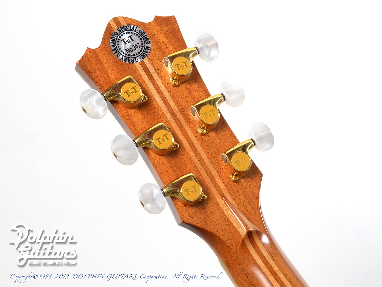 最高級スプルース・トップ、フレイム・メイプル・サイド&バック、ホンジュラス・マホガニー・ネック、エボニー指板&駒、アバロン・ボディ・トリム&ロゼッタ、クリアピックガード、Gotoh糸巻き。