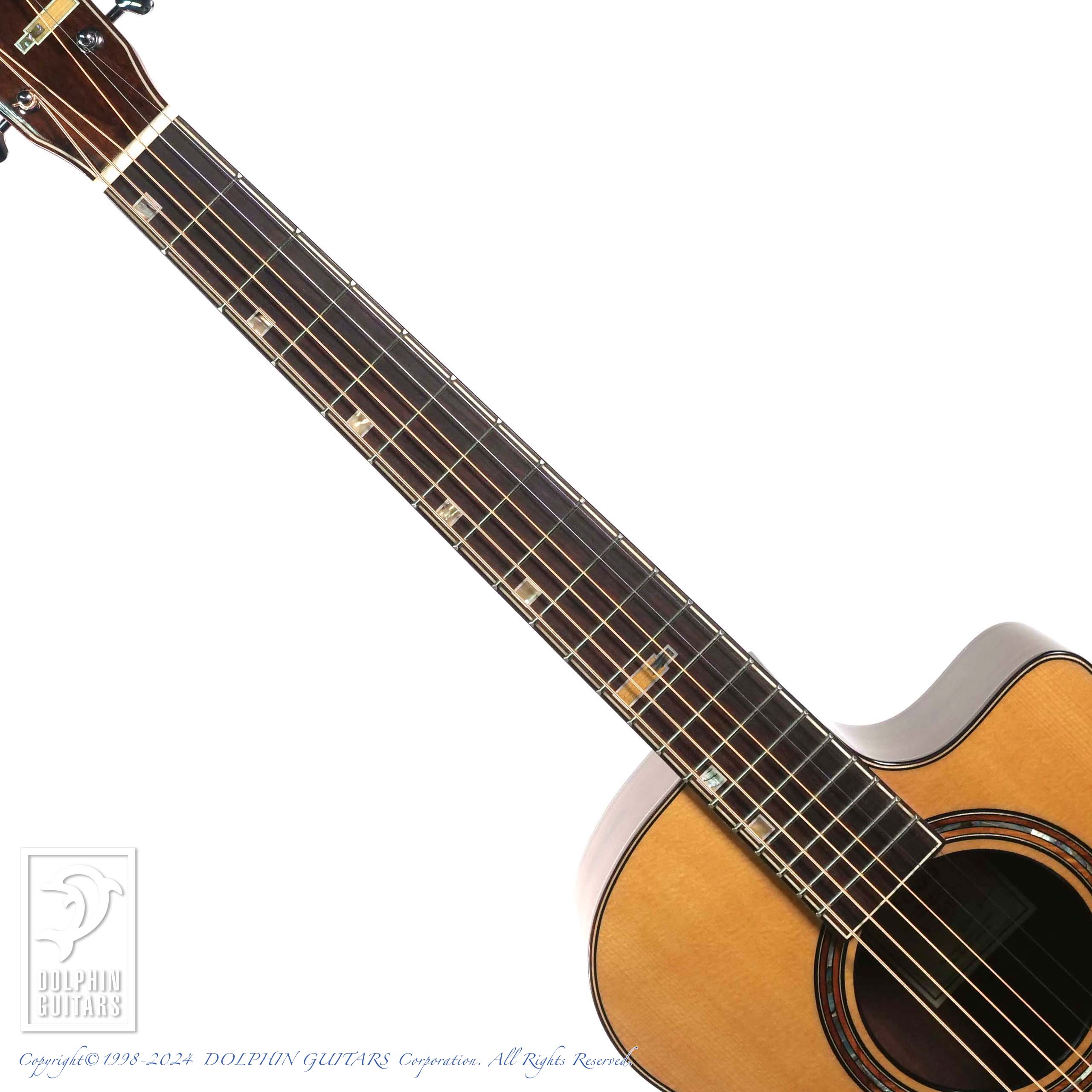 その他:ヴェネチアンカッタウェイ、アバロン&ウッドインレイ、サントスローズウッド&アバロンロゼッタ、43mmナット幅、600mmスケール。