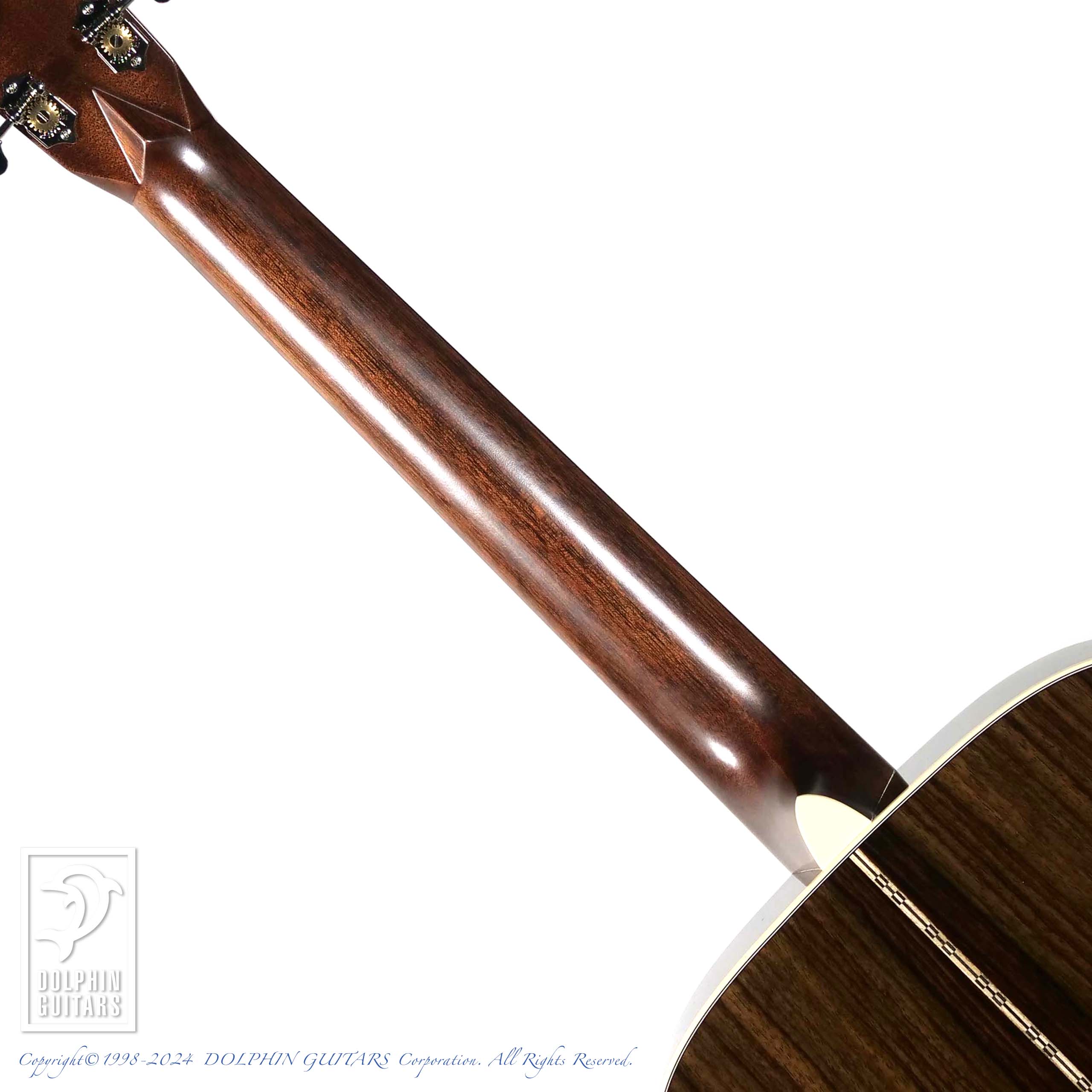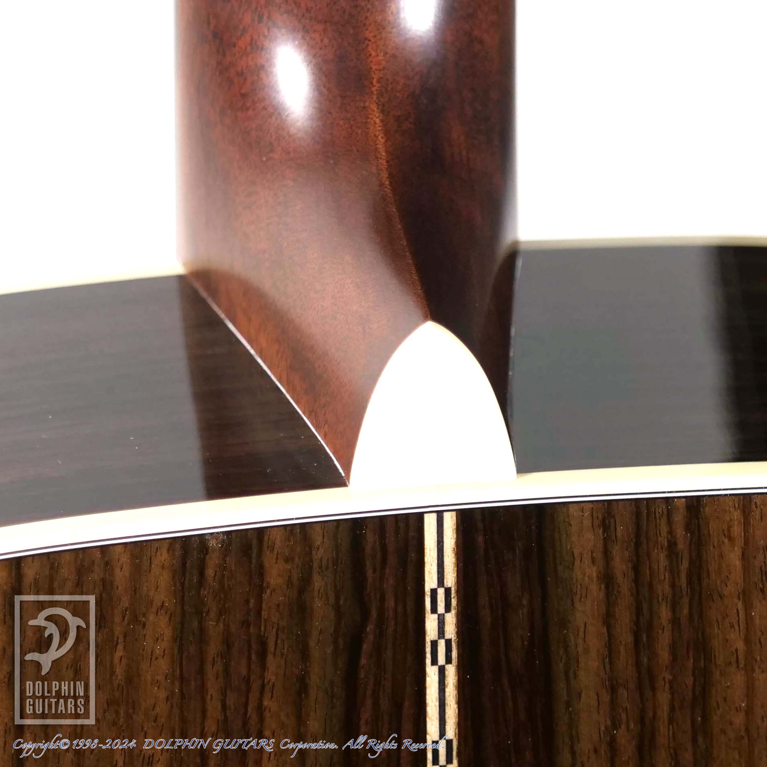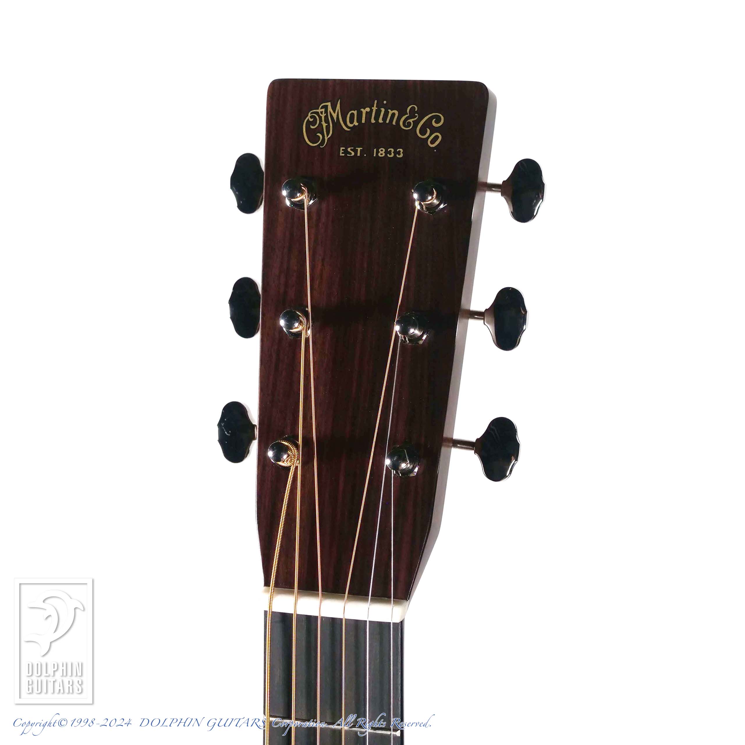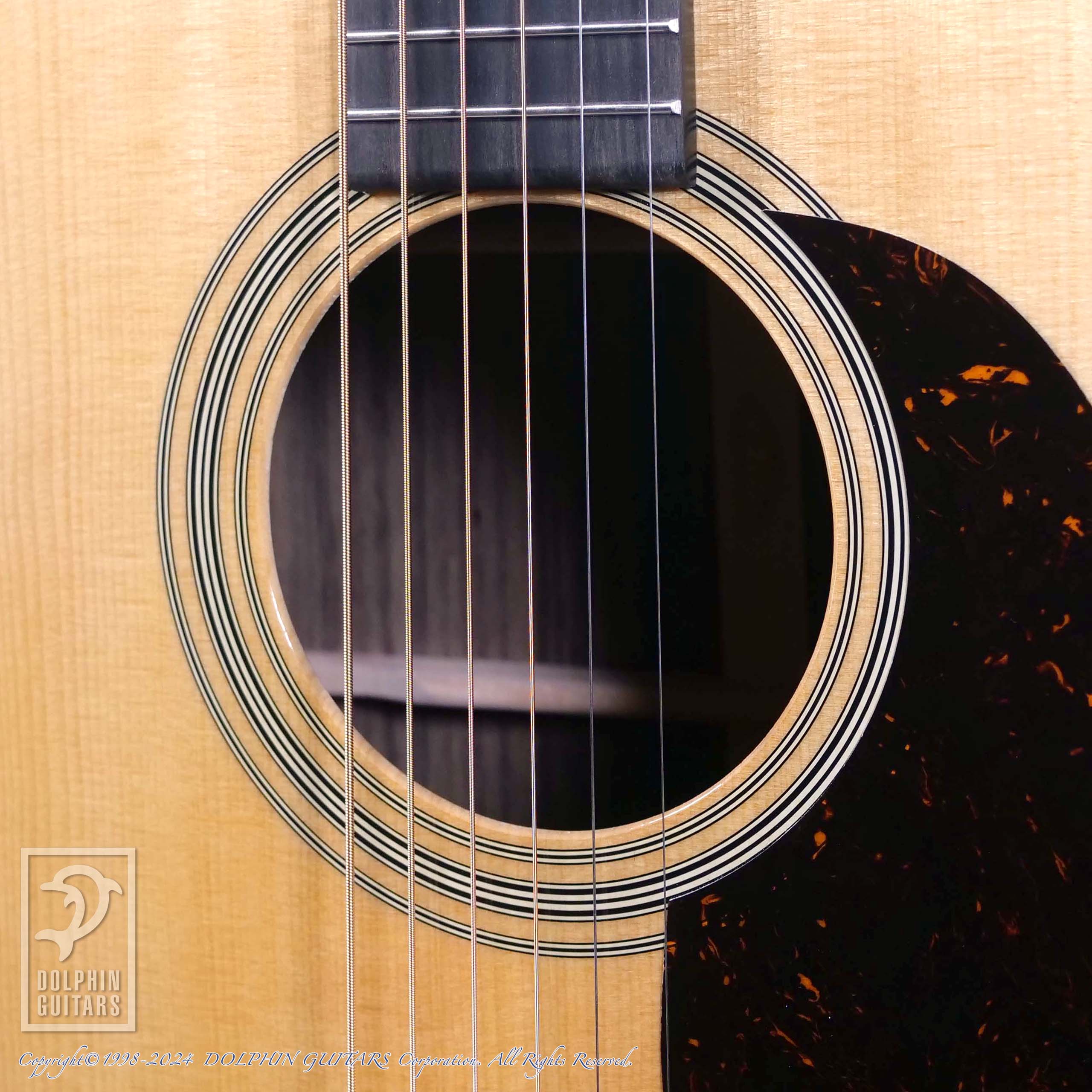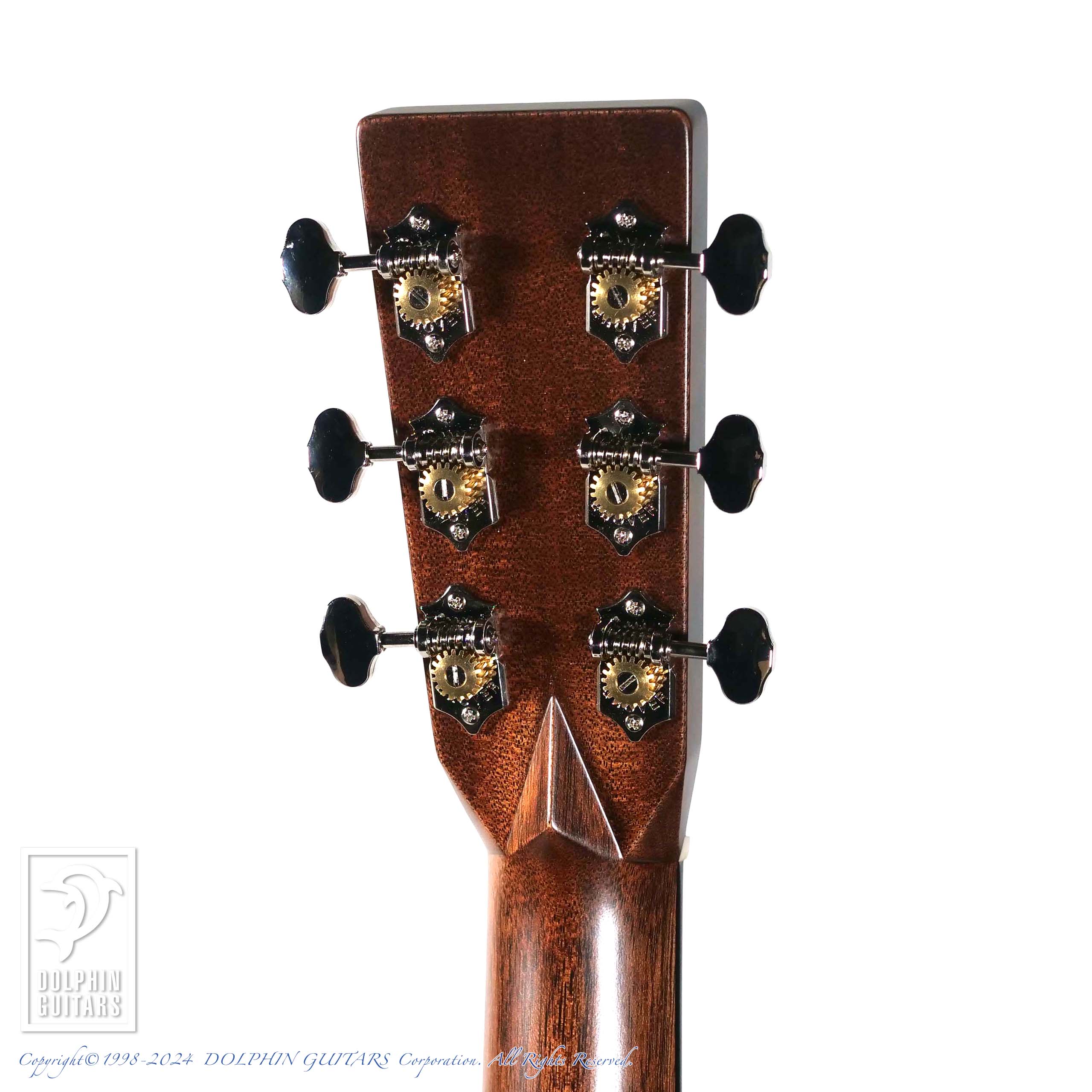 トラディショナルな外観に現代的な操作性を与えられ、マーティンファンには嬉しい進化となりました。ヘリングボーントリム、ダイヤモンドインレイ、オープンギアチューナー、エイジングトナー・フィニッシュ、べっ甲柄のピックガード、デカールロゴなどのビンテージディテール、44.5mm幅のネックはローポジションからハイポジションにかけてテーパーが少ない、スリムなロープロファイルネックを採用、フィンガーピッキングに最適な形状とも言えます。