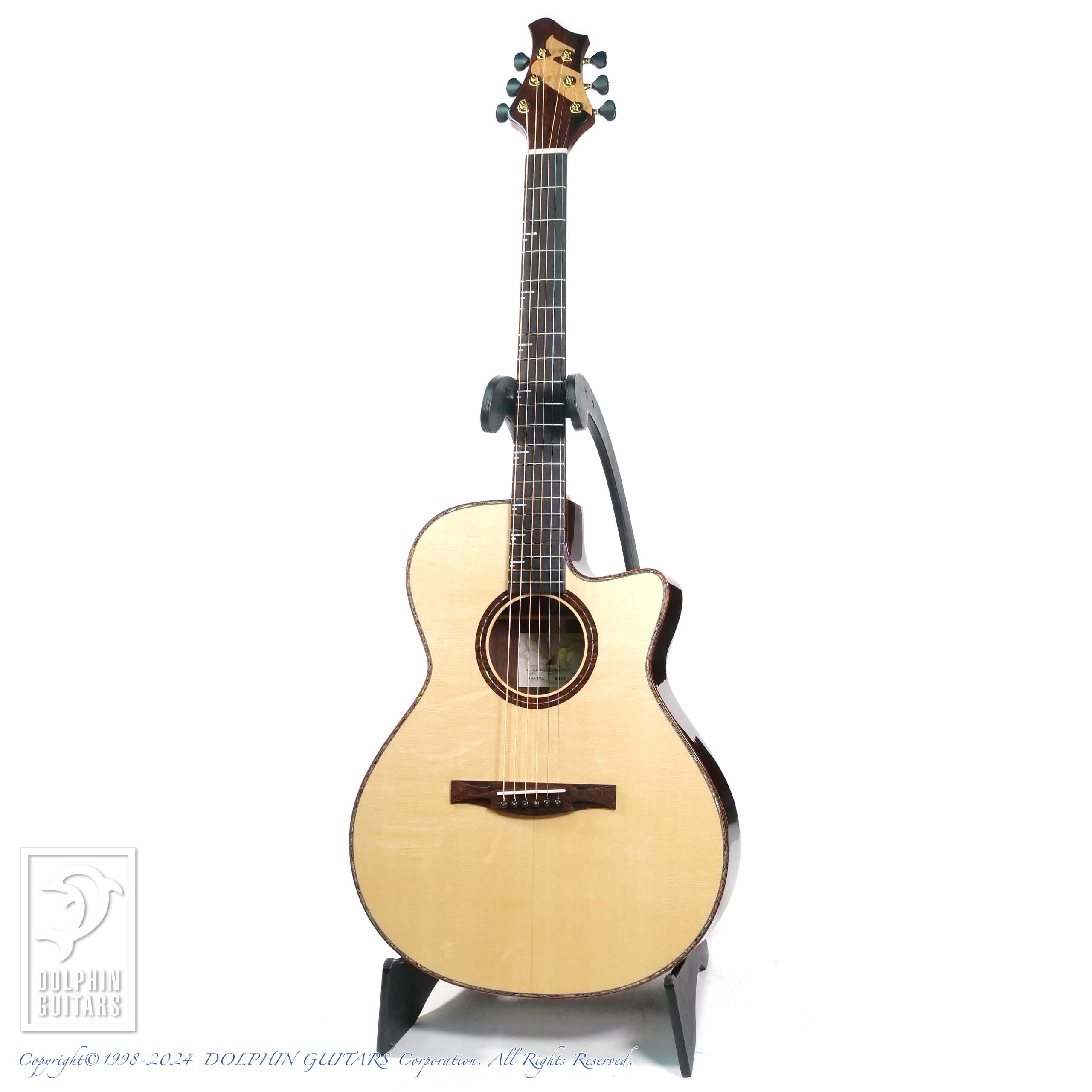 その証拠にずば抜けたレスポンスの良さはサラッと弾いただけでもお分かりいただけるでしょう。ジャーマン・スプルースとマダガスカル・ローズウッドの組み合わせから生み出される、煌びやかでありながら深みのあるまろやかで上質な響きは、是非フィンガーピッキングで奏でて頂きたいサウンド。
