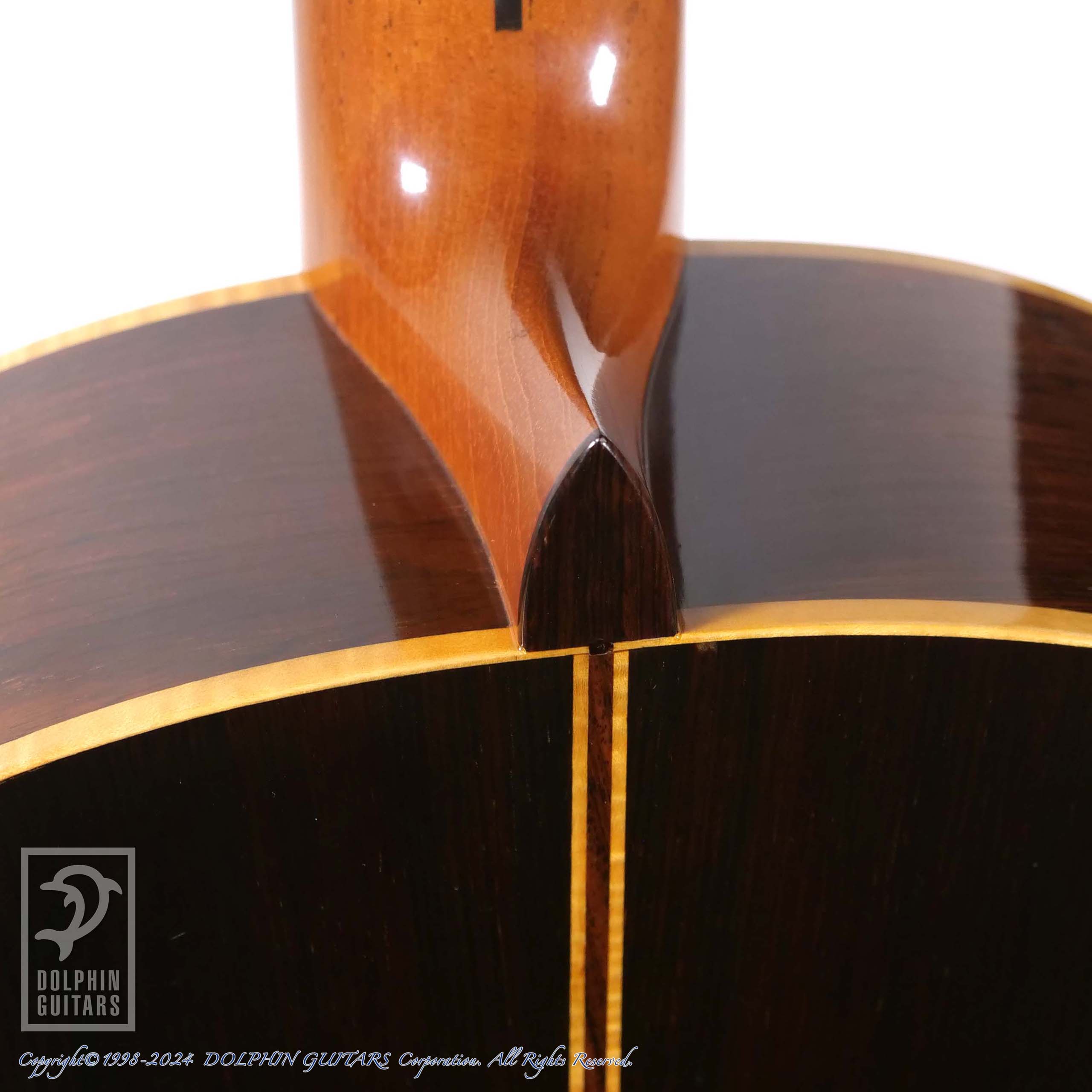 トップには最上級グレードのジャーマンスプルース、サイド&バックには綺麗な杢目のハカランダを使用、しっとりとした上品な質感のカシュー塗装仕上げなど、最上位機種ならではの拘りが感じられます。
