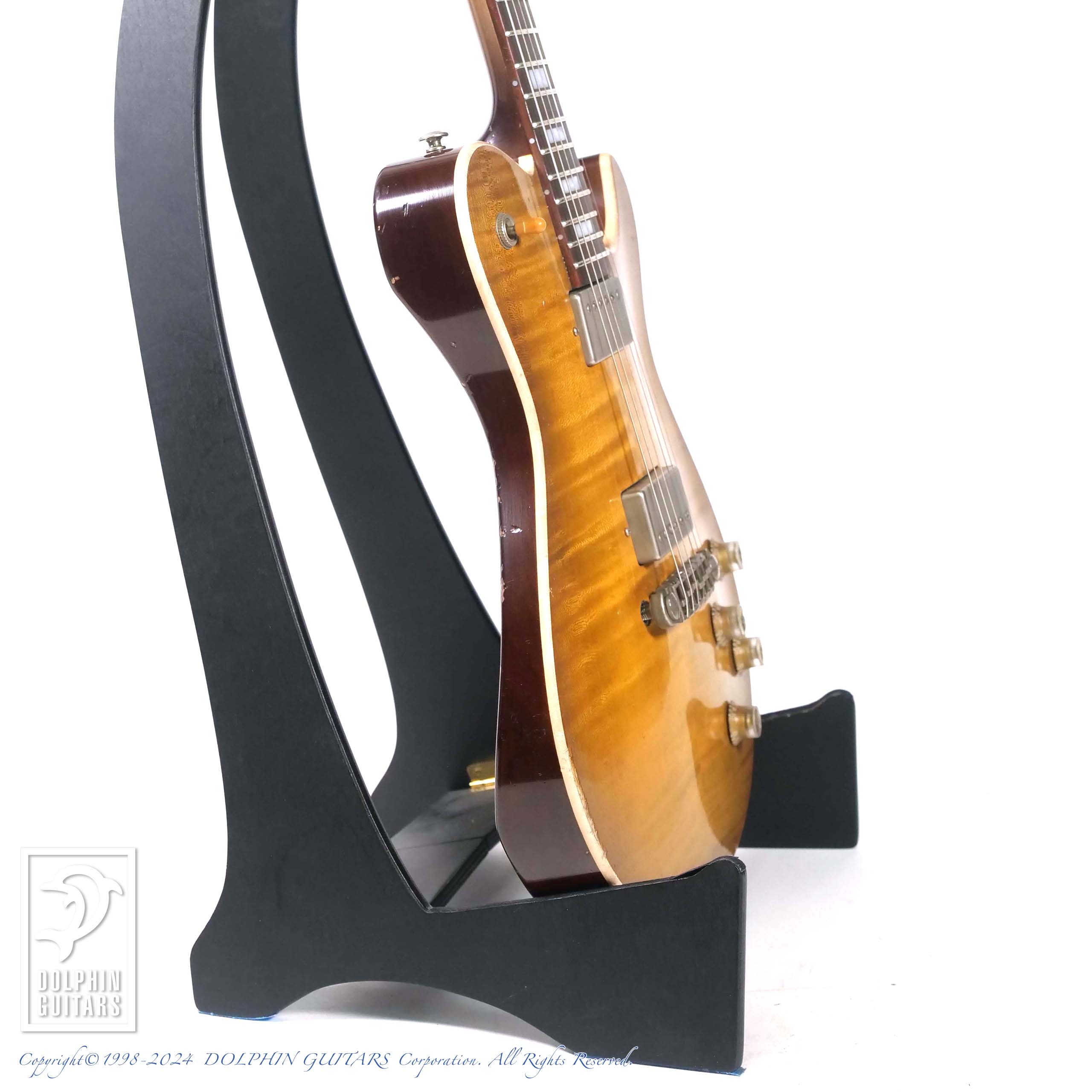 ギター愛好家なら一目見てその作り、質感の良さをお分かりいただけるでしょう。美しいフィギャード杢のメイプルをトップに据えたチェリーバーストフィニッシュの佇まいは、オリジナルモデルでありながら、かねてより存在していていたかのような自然な印象を受ける美しいデザインです。ライナー氏は"24.75 inch scaleとそれを代表するギターのサウンドを愛する人のため"と表現しておりますが、レスポールへのオマージュモデルであることは明らかです。