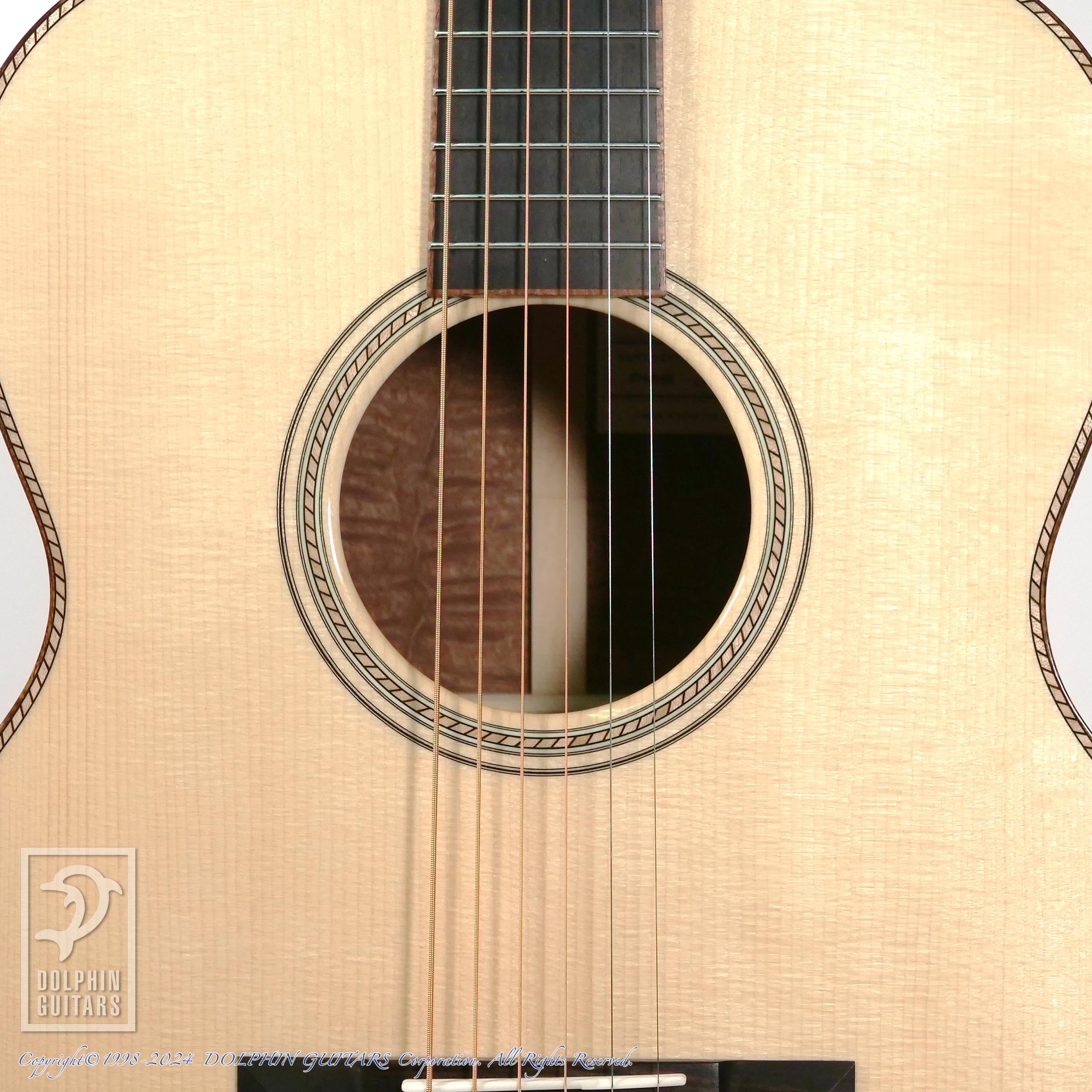 美しいアディロンダックスプルースと当店スタッフが現地で選定した極上のキルテッドサペリから生み出されるサウンドは、まさに極上。ボディシェイプも相まって、従来のOMサイズにはない重低音感や唸りを感じさせます。高音域もサンタクルーズならではの煌びやかな質感が、ローポジション〜ハイポジションまで力強く響きます。
