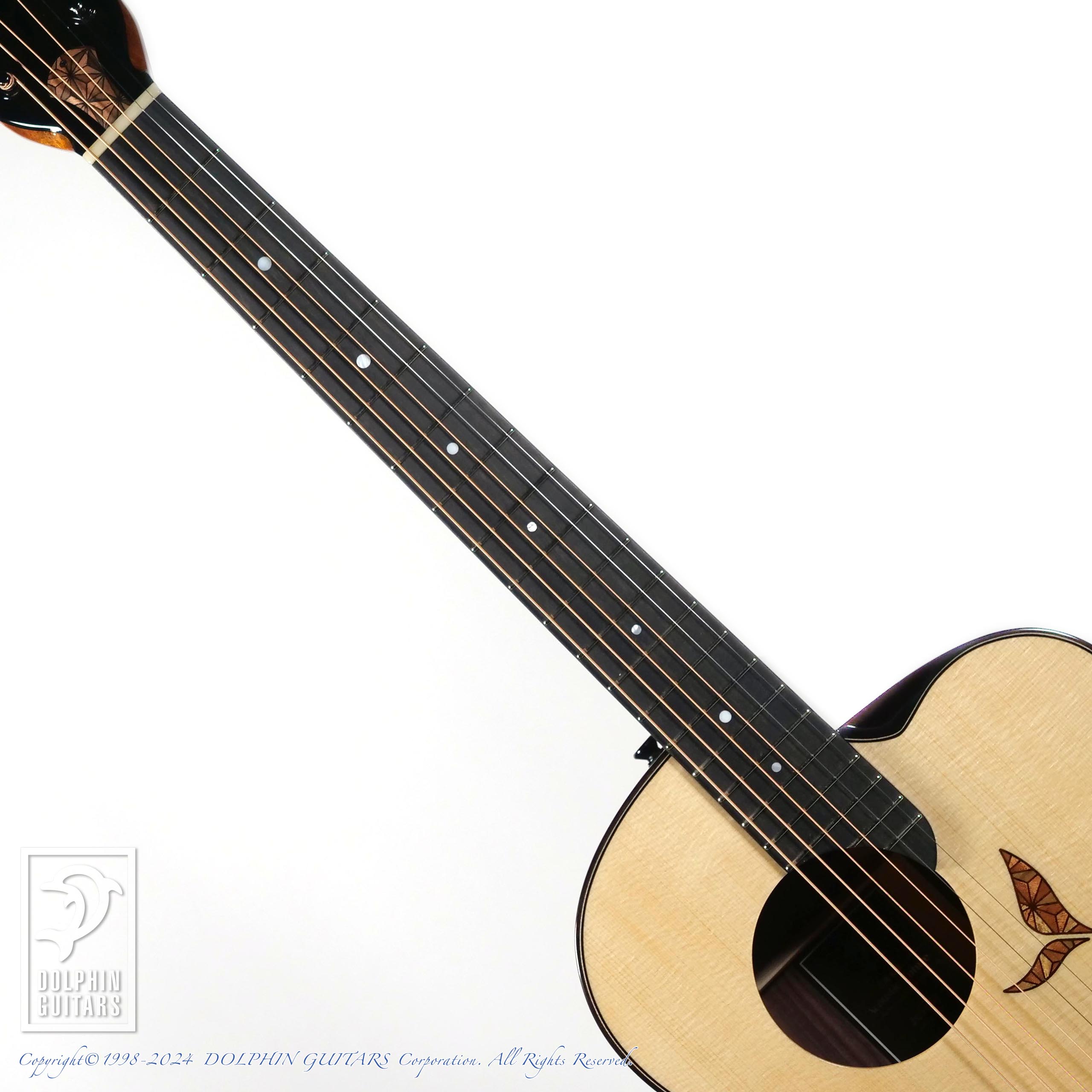 ボディは小ぶりなレギュラーサイズ、640mmスケールの程よいテンション感が弾きやすく、多くの方に馴染むバランスに仕上がっております。
