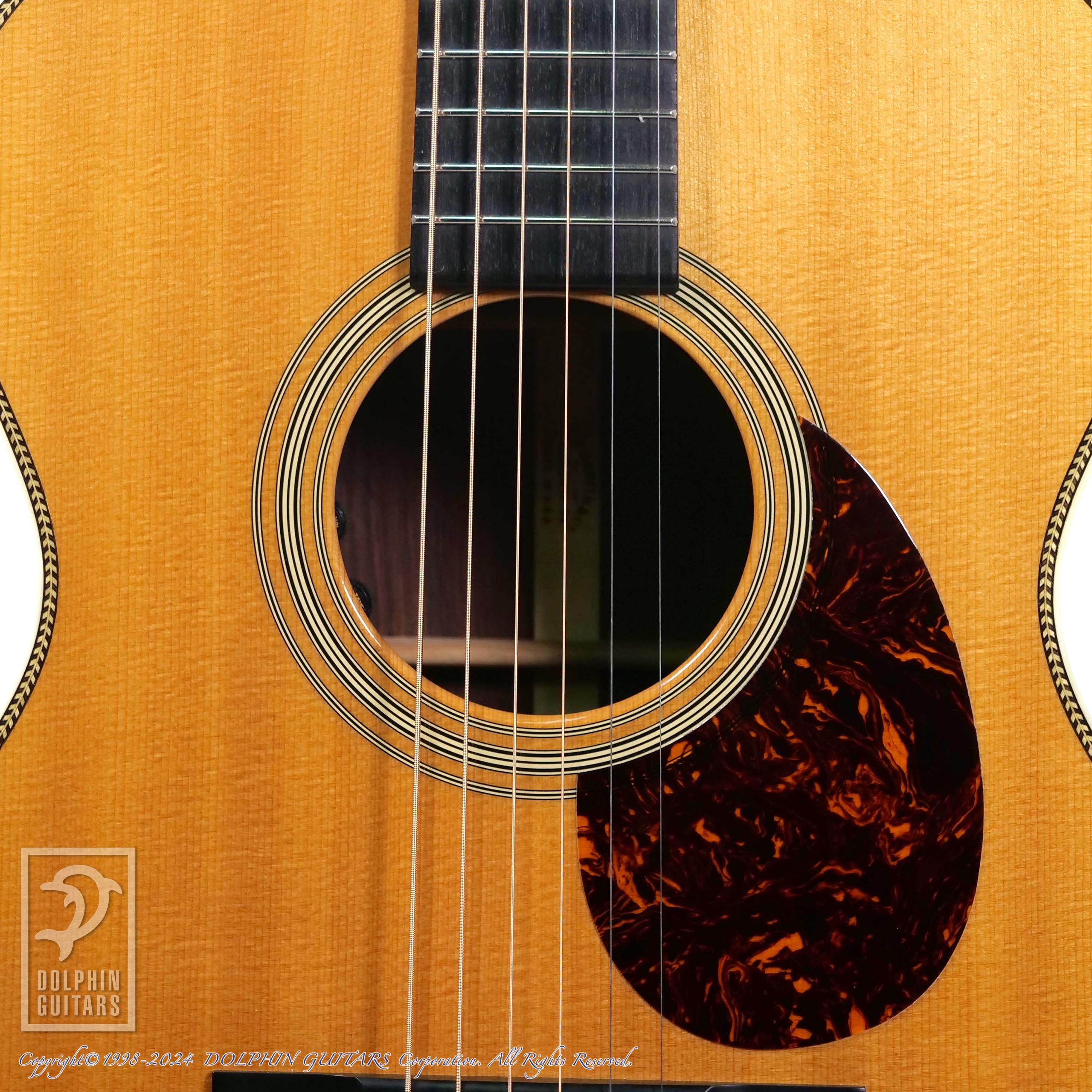 1929年、バンジョープレイヤーのペリー・ベクテルの提案から誕生したOM-28。それまでのスタンダードだった12フレットジョイントから14フレットに変更したことにより、ハイポジションの演奏性を向上させるとともに新たなデザインを確立し、その後のギターの手本となりました。それは現在に至るまで長年愛されてきたマーティンを代表するモデルの一つです。