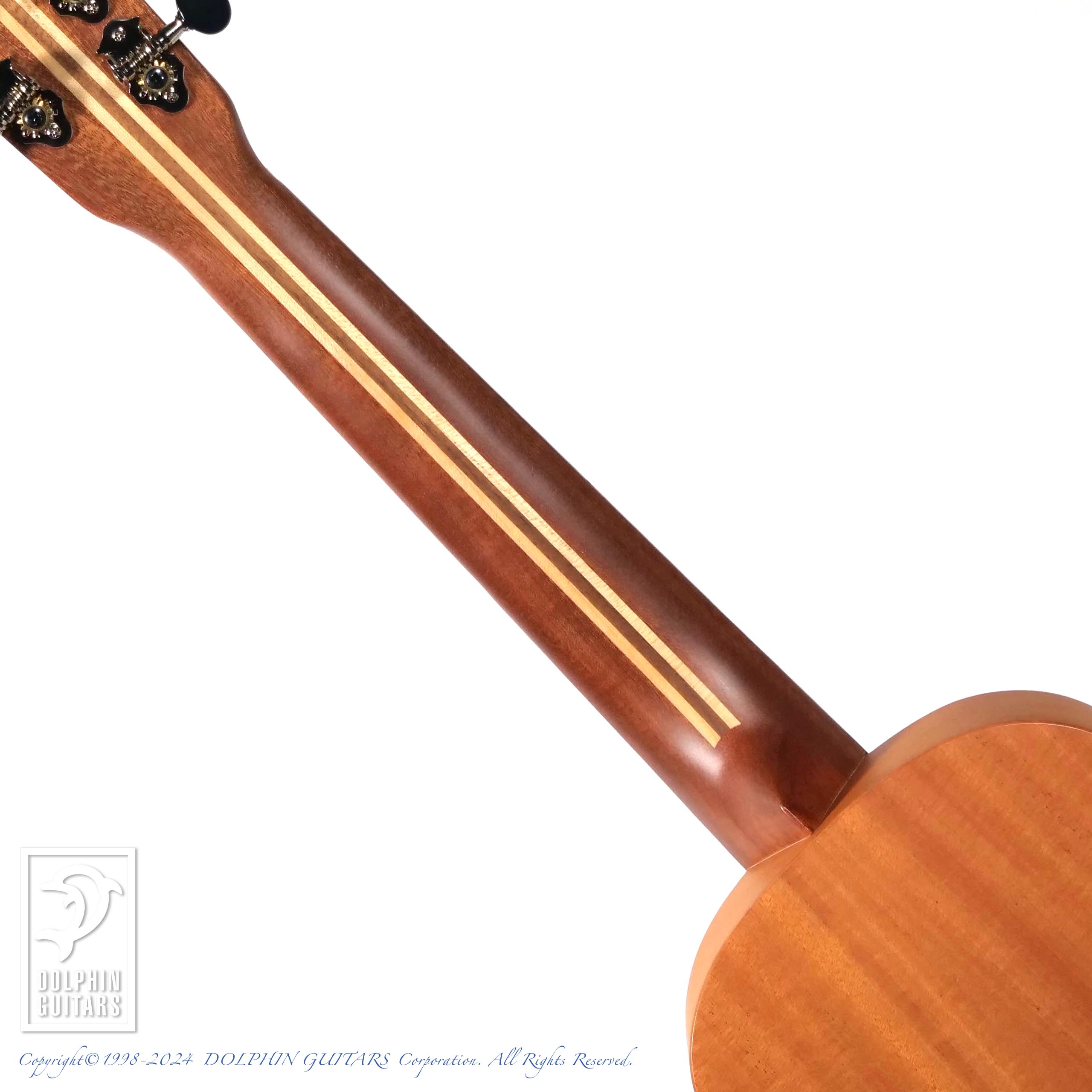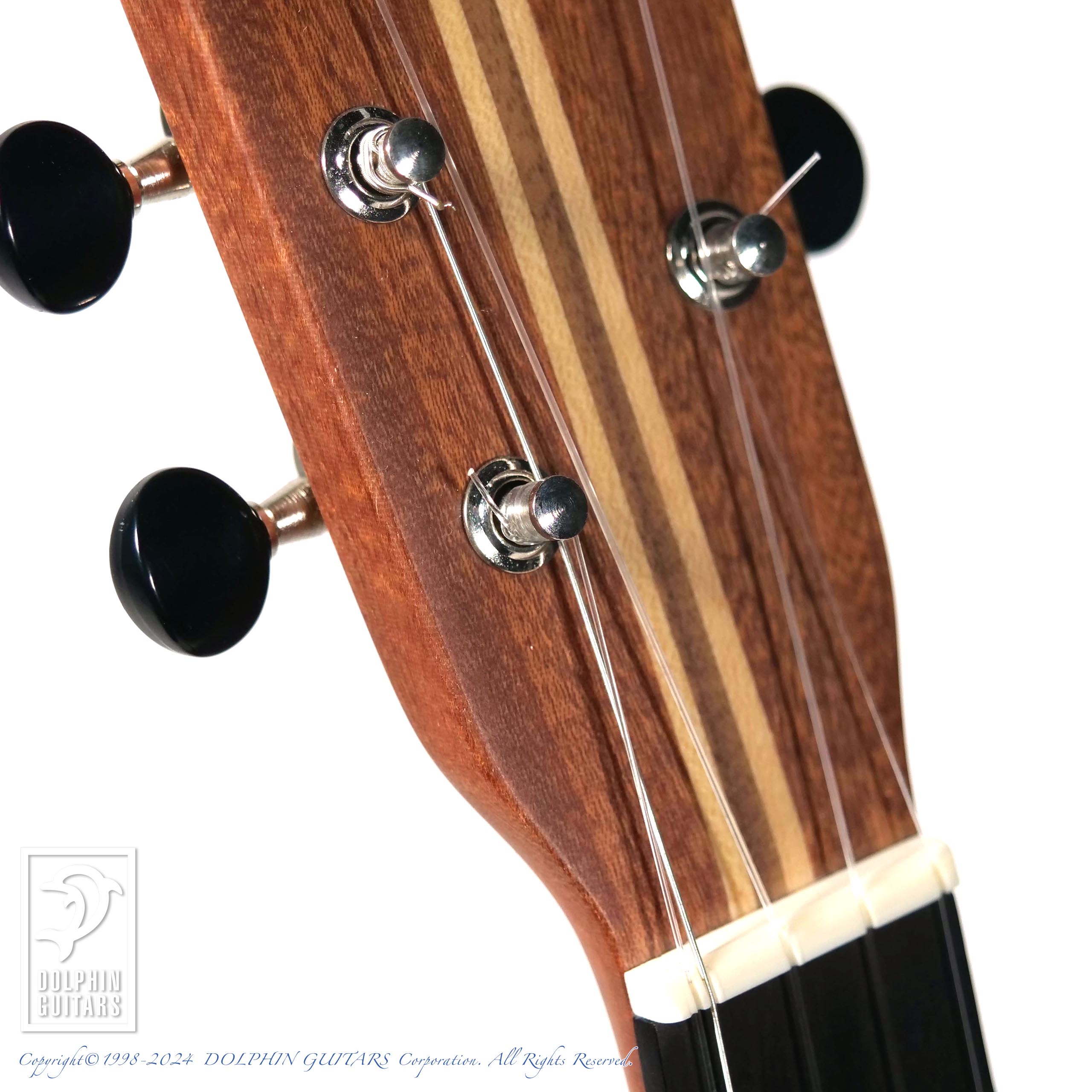 4弦部分にLow GとHigi Gが横並びに配置されており、オクターバーのような不思議なサウンドが楽しめます。伴奏、ソロに使い方はプレイヤー次第でしょう。容量のあるマホガニーボディから生み出されるボリューミーで甘いトーンは、弾いていてとても気持ち良いです。