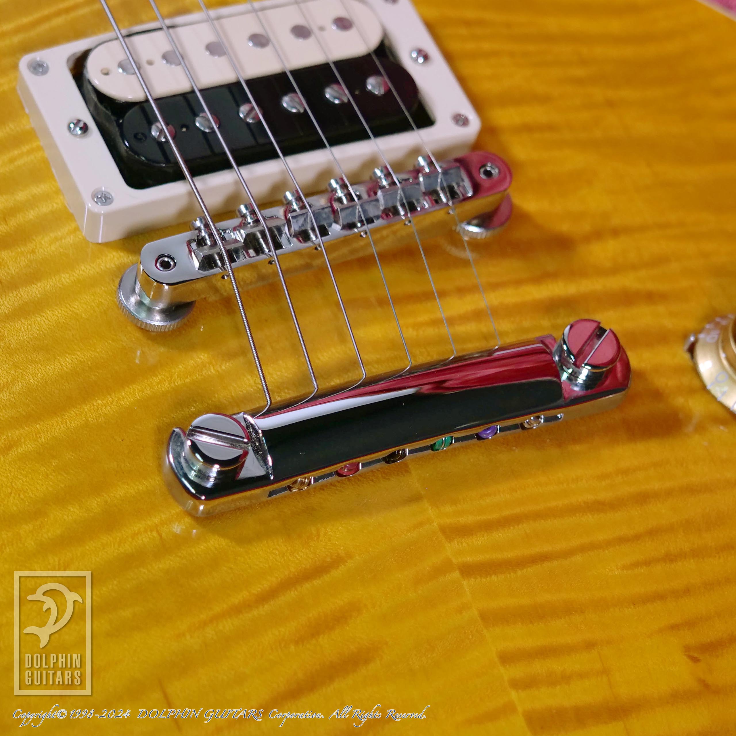 AAAグレードのフレイムメイプルがトップ材に選ばれており、立体的かつ鋭い杢が美しい個体です。