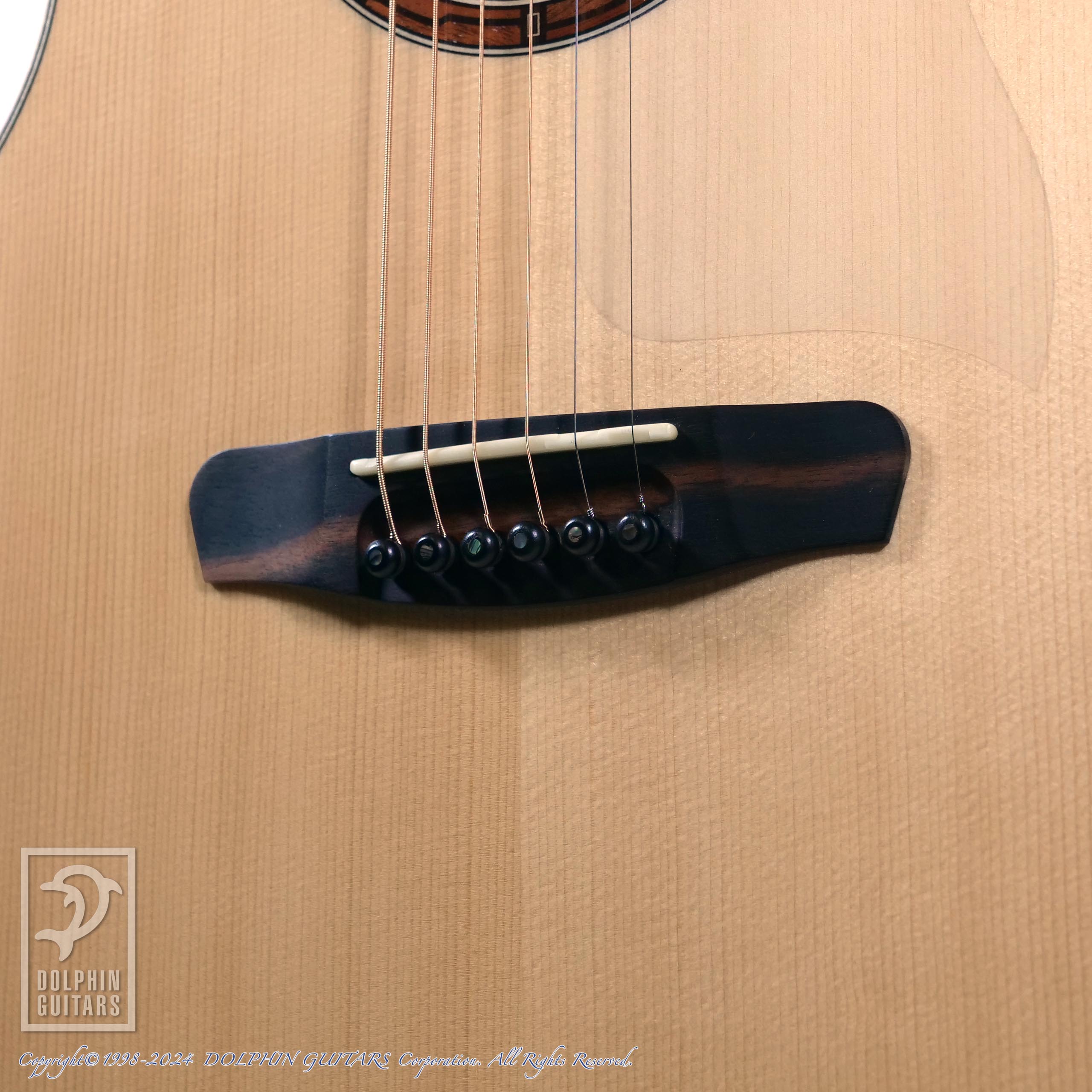 そのボディに組み合わせるトップ材には、ドウィナお得意のドロミテ・スプルース。イタリア北東部にある山地で、東アルプス山脈の一部であるドロミテ地方で産出したスプルースがこう呼ばれます。古くからストラディバリなど名のあるヴァイオリンなどに使われるスプルースのみがこう呼ばれます。バイオリン製作がキャリアのルーツにあり、ストラディバリを研究していたDowina主宰のStan氏らしいこだわりの選択です。