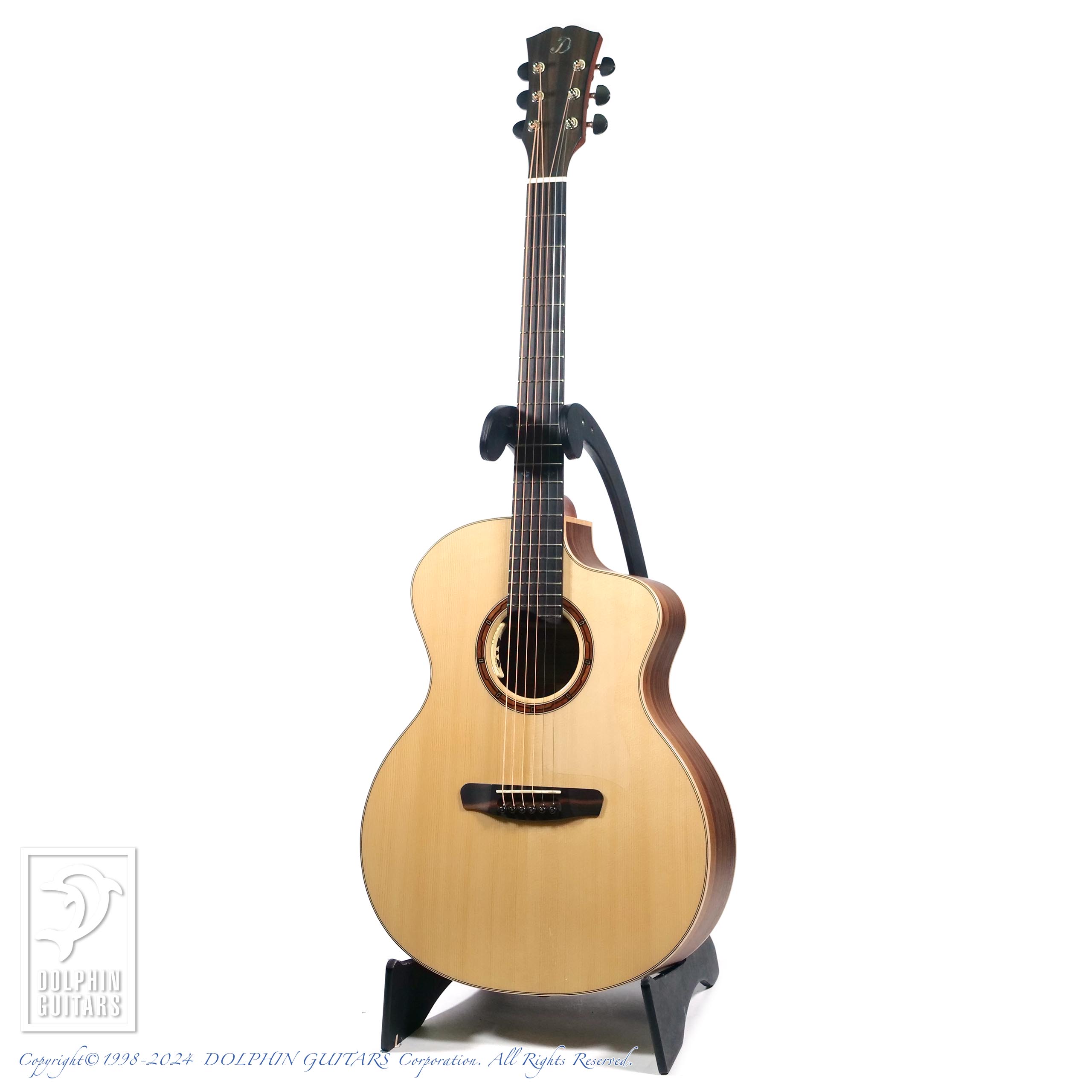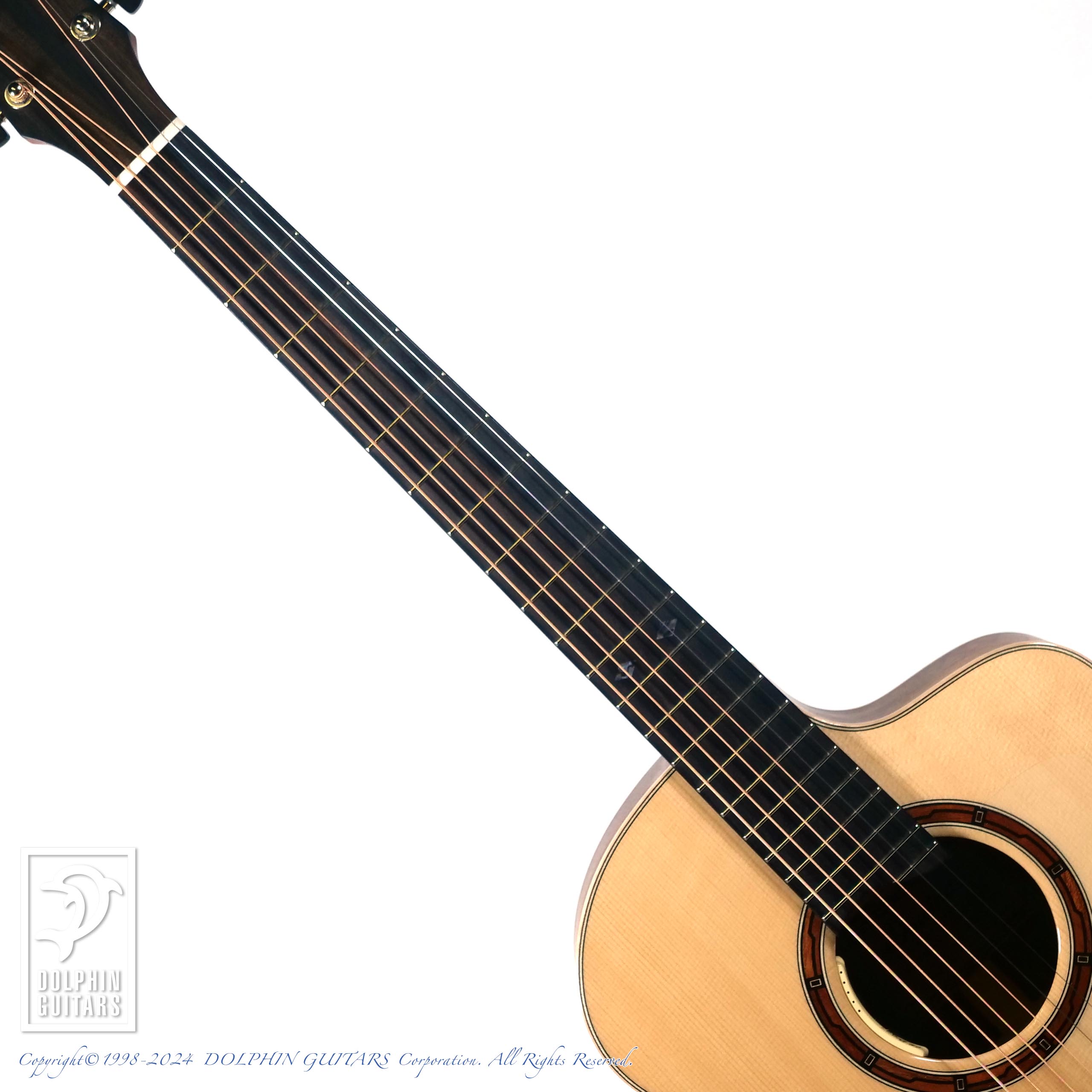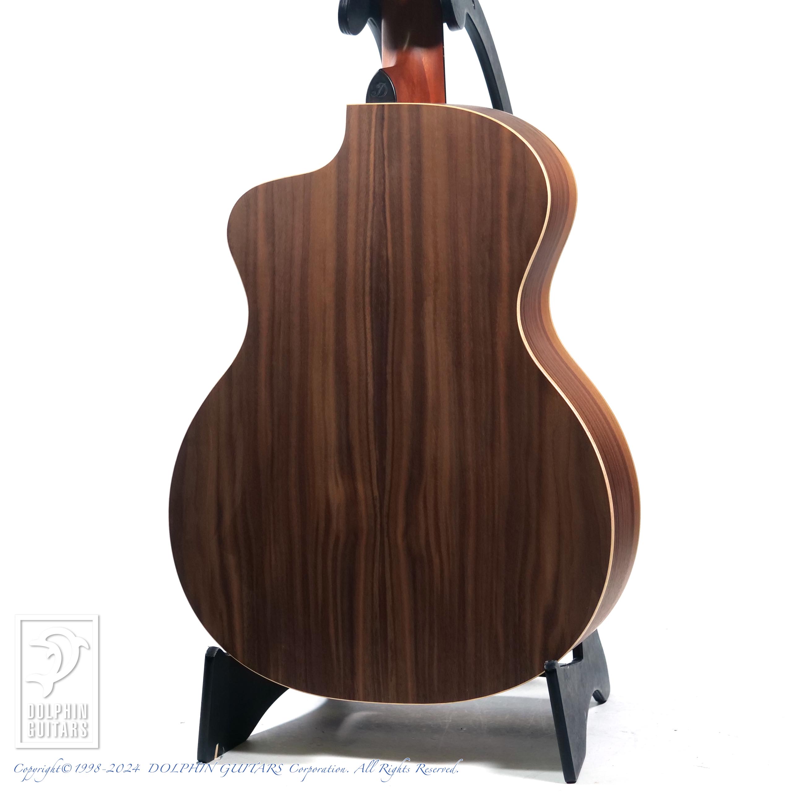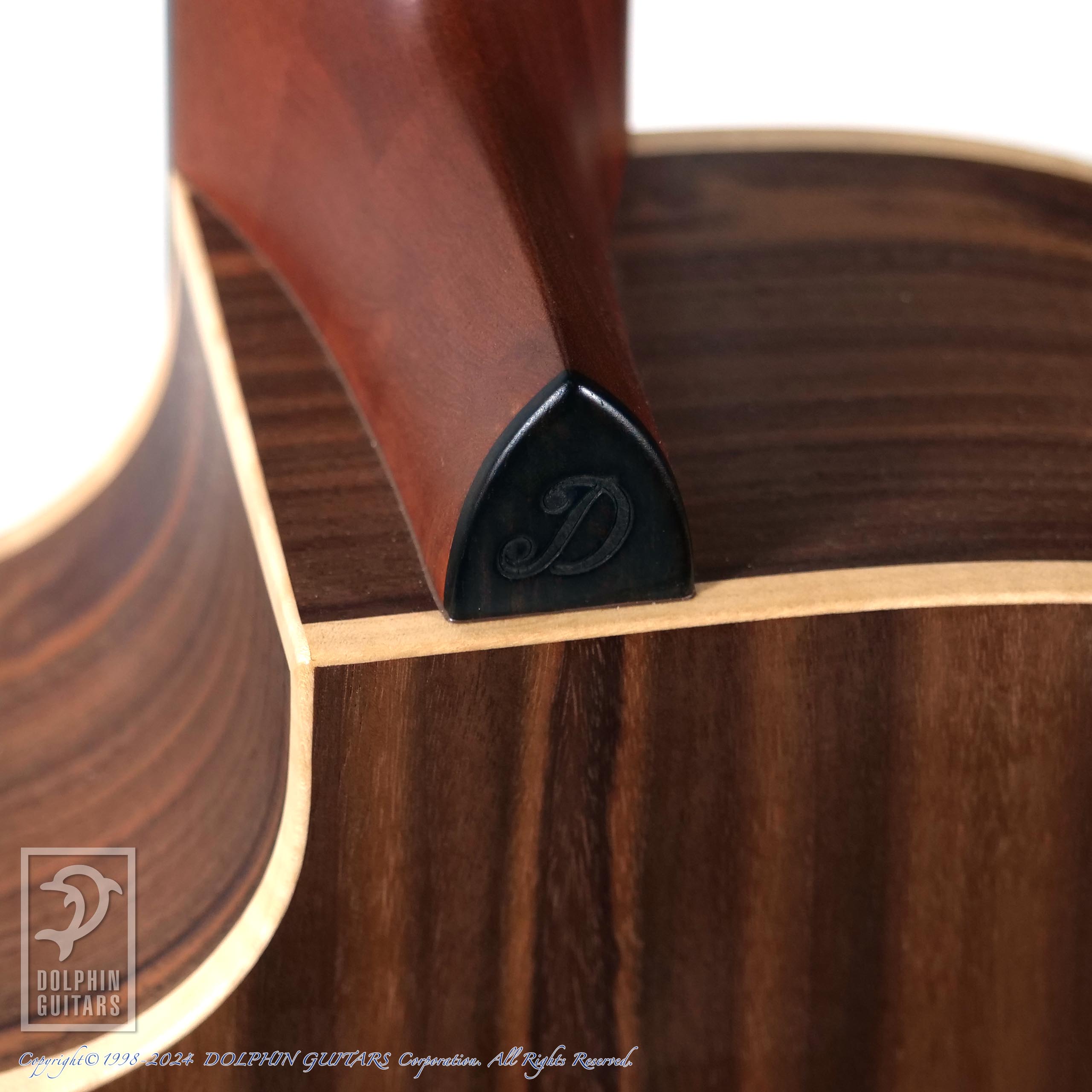 サイド&バックは北米産のウォルナットを採用。ウォルナットはマホガニーと似た気乾比重で狂いが少ない木質なうえに優美な木目が表れることから、古来より高級工芸用材として重用され楽器にも盛んに用いられてきた材料です。