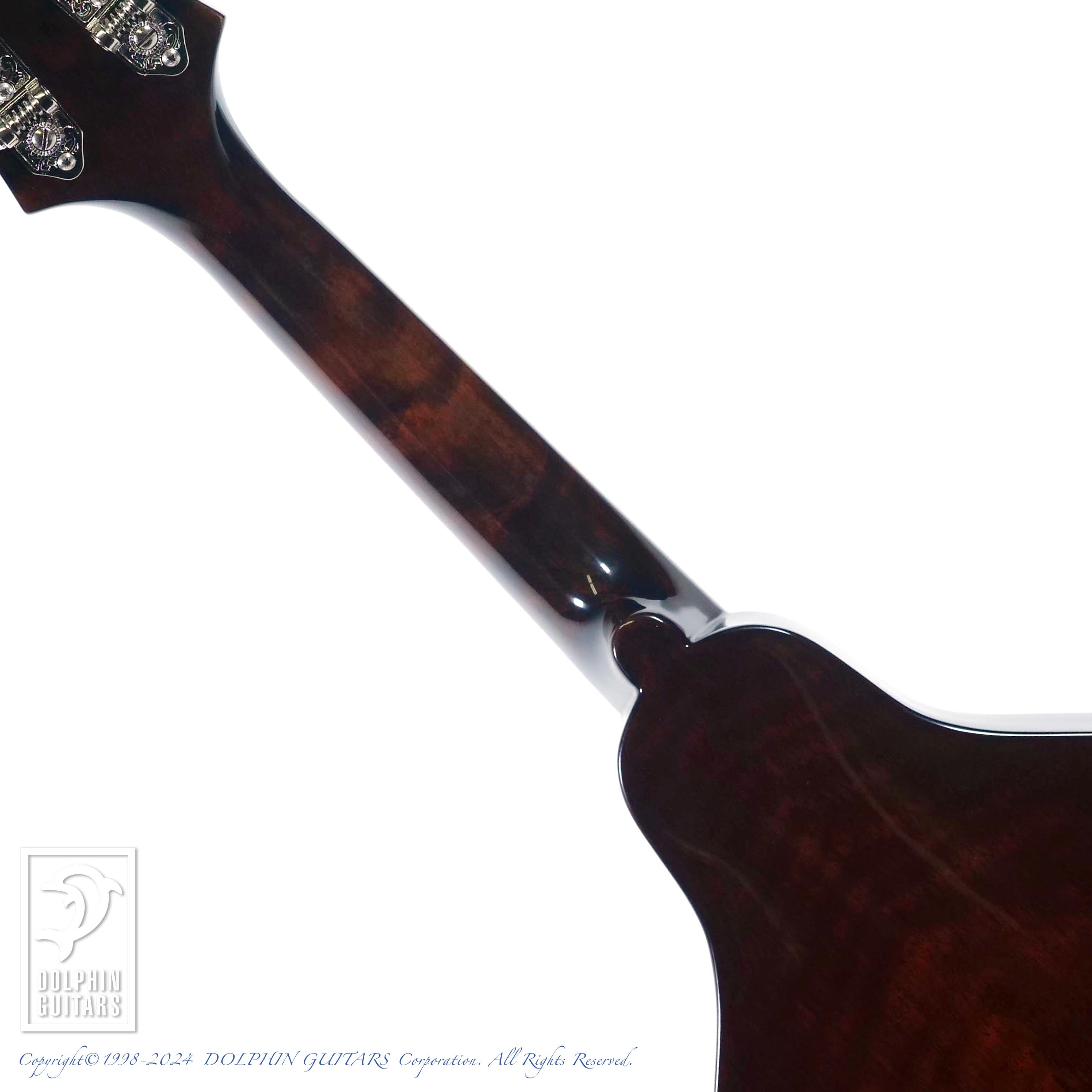 入荷後に店内工房にて、ナット・サドル調整、さらに演奏性を高めるためにエクストラライトゲージ(0.09〜)へ弦交換致しました。とても弾き易くセッティングされており、”これからマンドリンでも始めてみようかな”という方にもオススメの一本です!