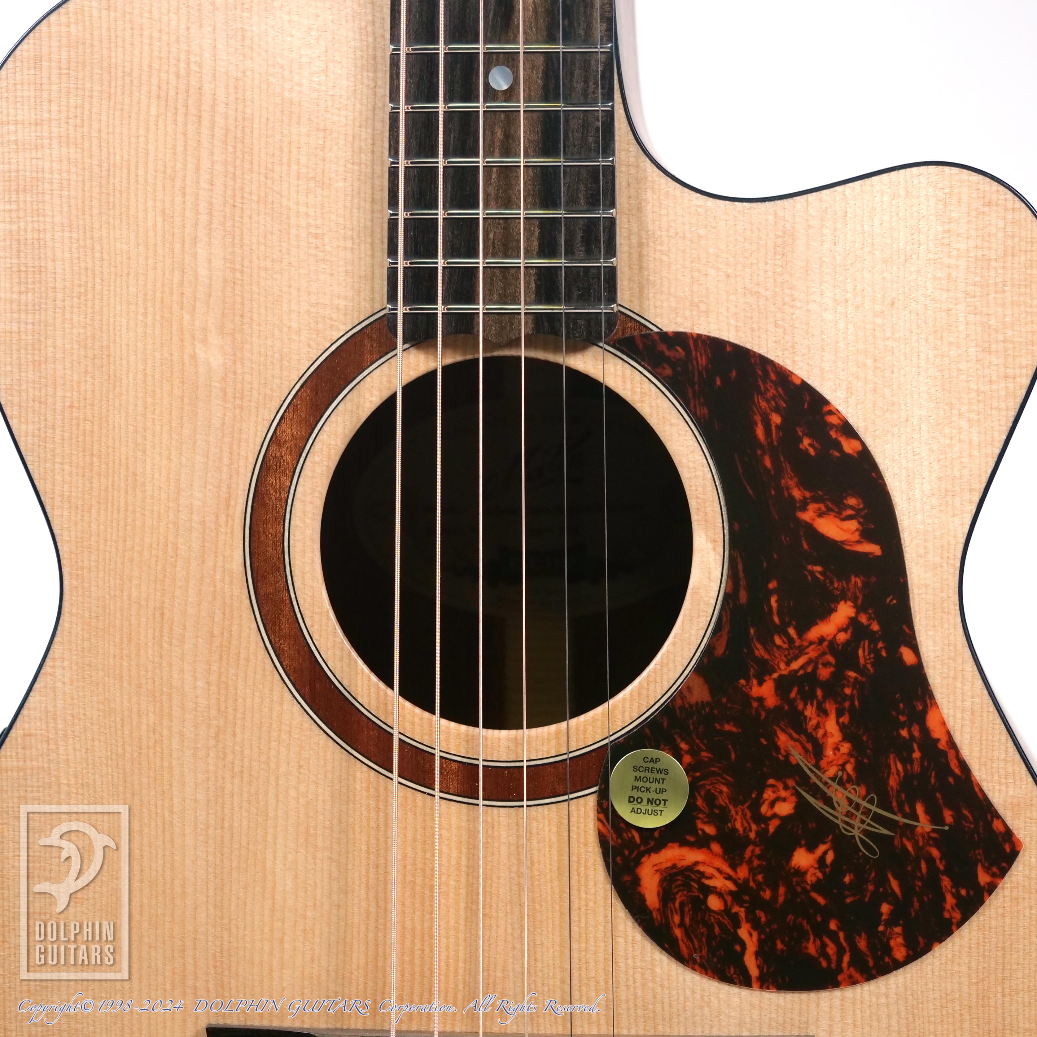 従来のシダーからスプルースに変更されたトップ材とメイトン独自のスキャロップ ブレーシング構造との組み合わせによりサウンドに切れ味と明瞭なトーン、そして素晴らしいレスポンスの早さを生み出すため、ピッキングの強弱にもそのまま反応し、細かいニュアンスも思いのままです。