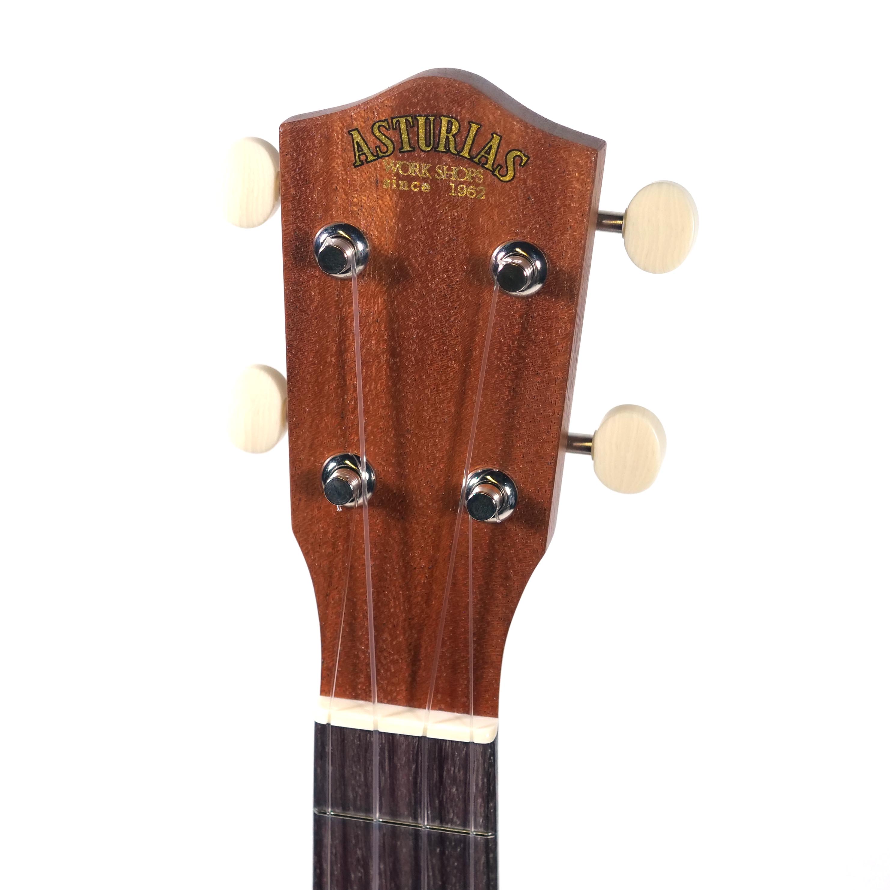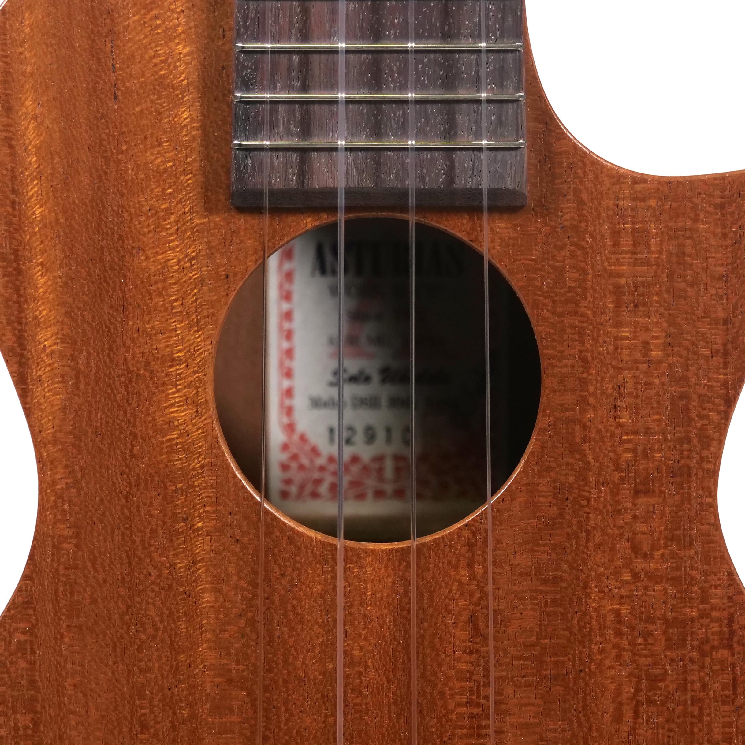 アストリアスウクレレ発売初期のデカールロゴがクラシカルで可愛らしい表情です。サイドホールによる音の広がりや、サテンフィニッシュのあたたかい風合いもグッド。
