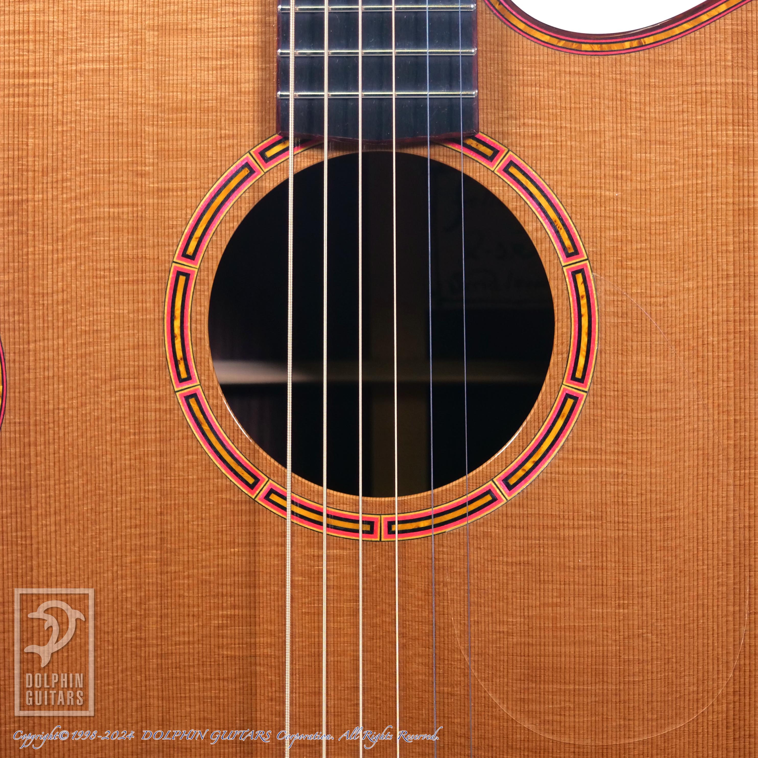 ゆったりとした低域、きらびやかで反応の良く響くサウンドは、シダートップならではで、フィンガーピッキングに威力を発揮するでしょう。特にハイポジションの伸び伸びとしたトーンは、手工ギターの楽しさを体感していただけると思います。