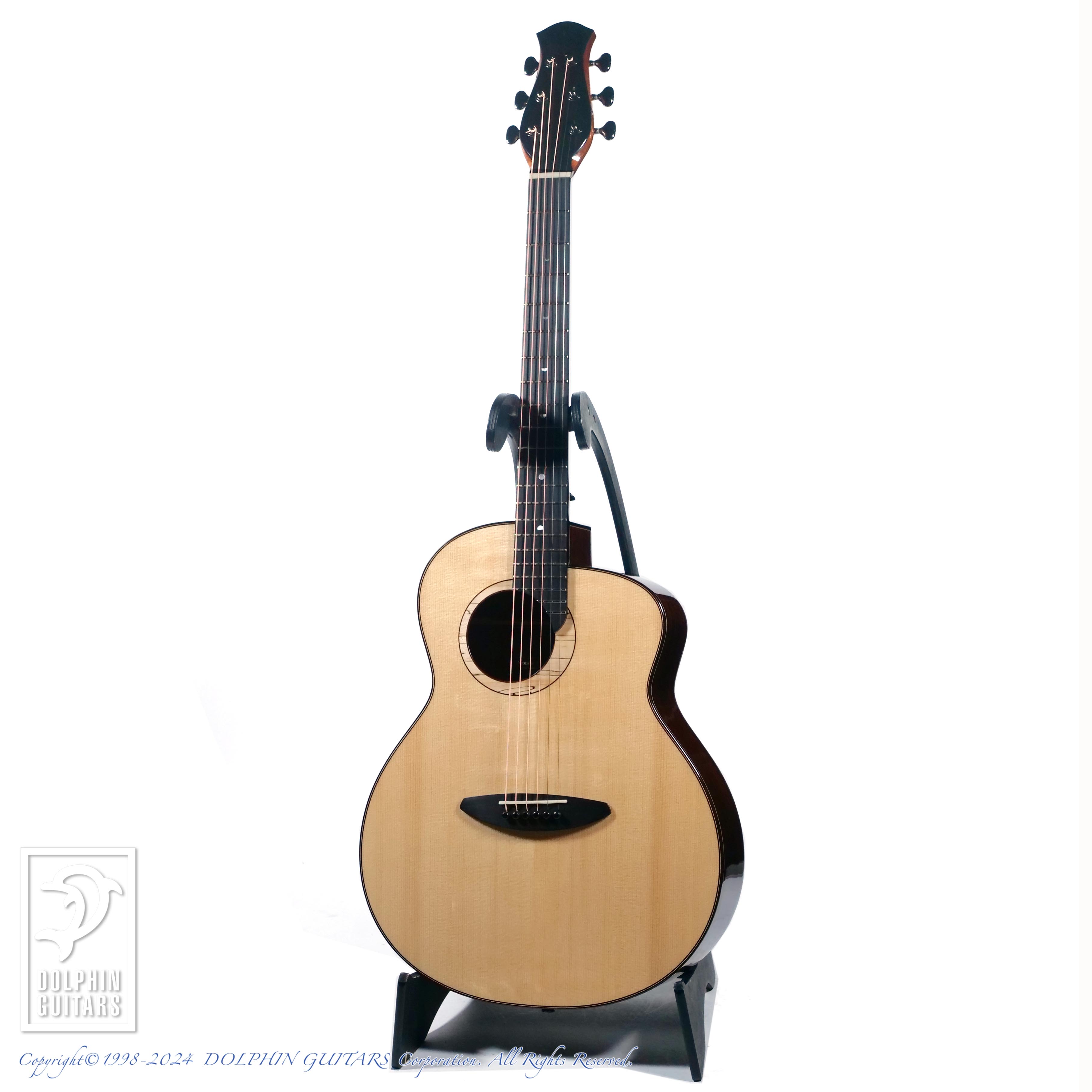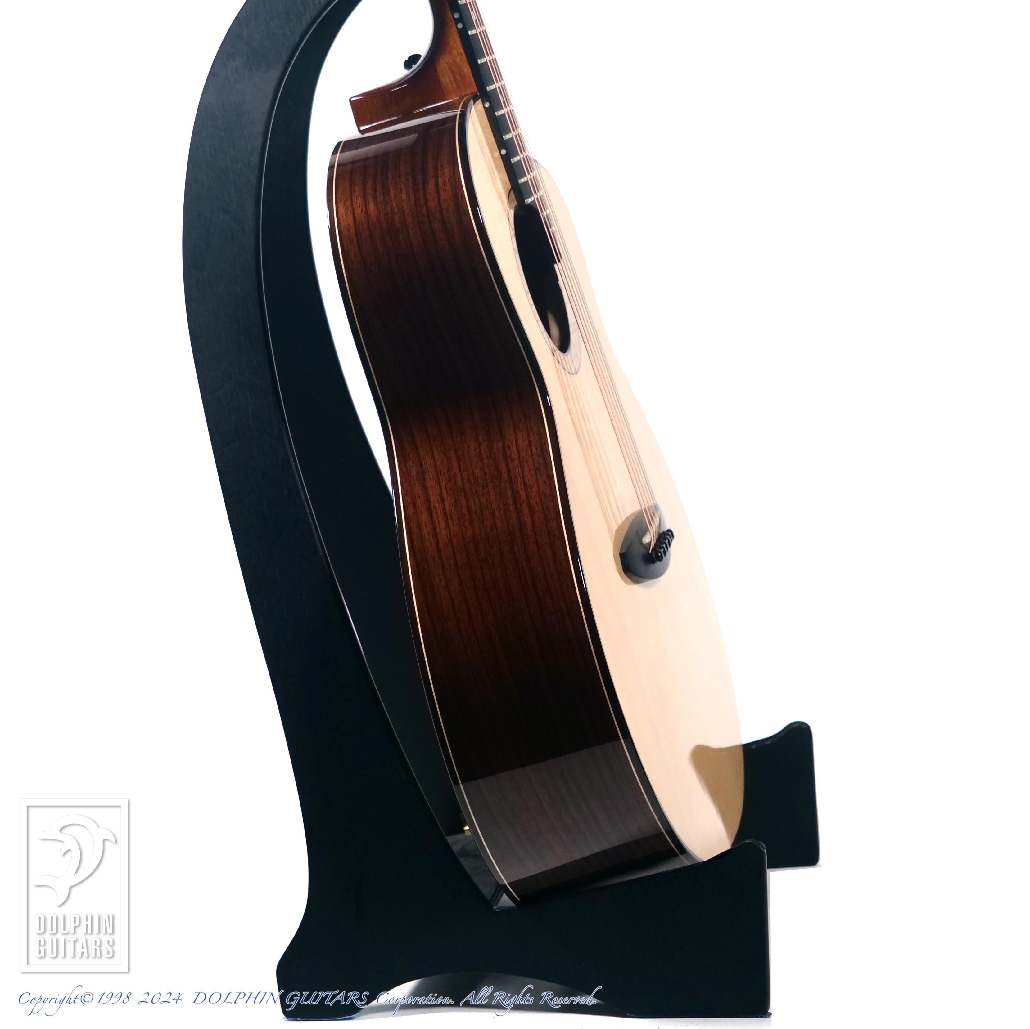 LSシリーズのサイズは一般的なOMに近く、現代では最も多くの方が好むサイズと言えるでしょう。OMサイズにして迫力ある低音や音圧など、素晴らしいサウンドクオリティであります。それもそのはず、杉田健司氏が直に現地を訪問し、デザインや設計を指導し、ブレイシングパターンやトップ・サイド・バックの厚みなどのバランスなど、サウンドに影響する重要な箇所を杉田健司デザインで製作。