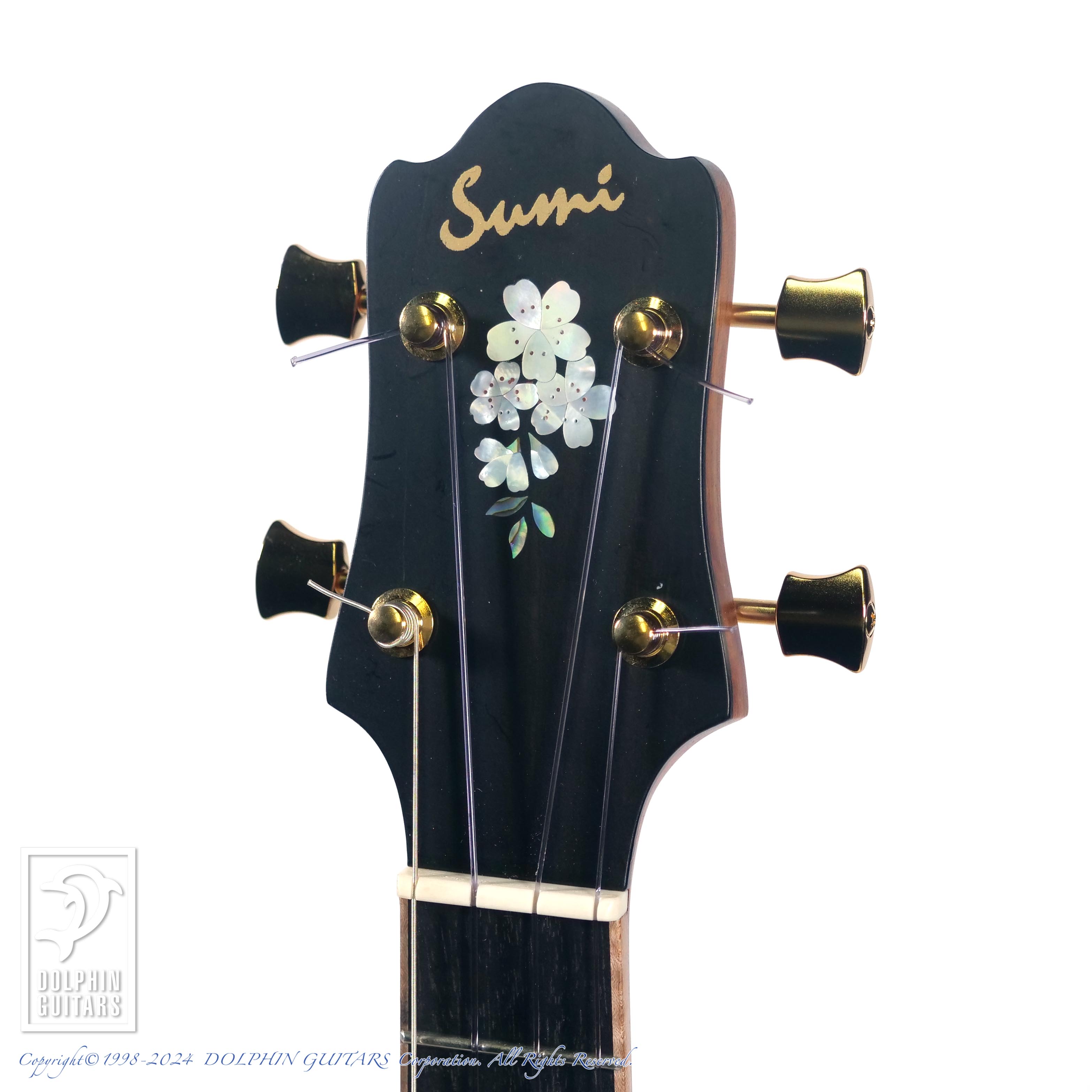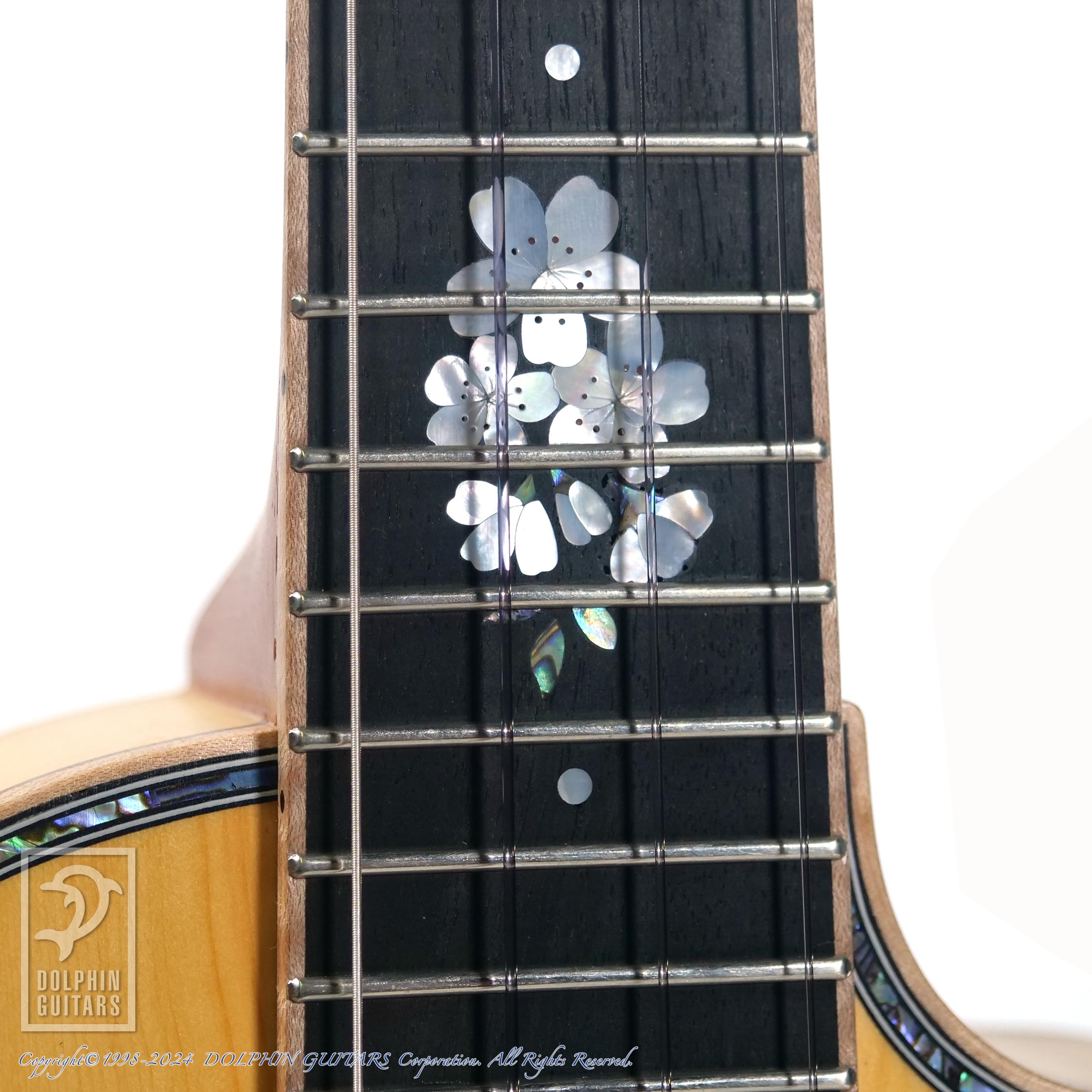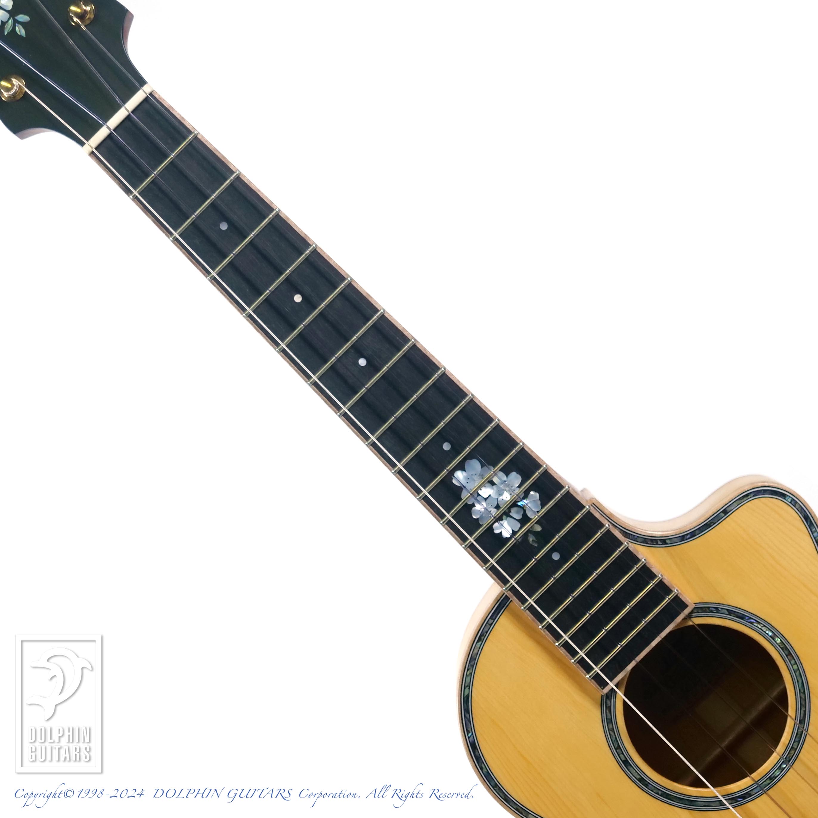 ウクレレ材としては珍しいカヤの木をボディに採用、そしてSUMI工房の御家芸とも言えるサクラのインレイがヘッドと12フレットに美しく入れられており、見る角度で様々に光り輝く様は、まるで本物が咲いているかのようです。