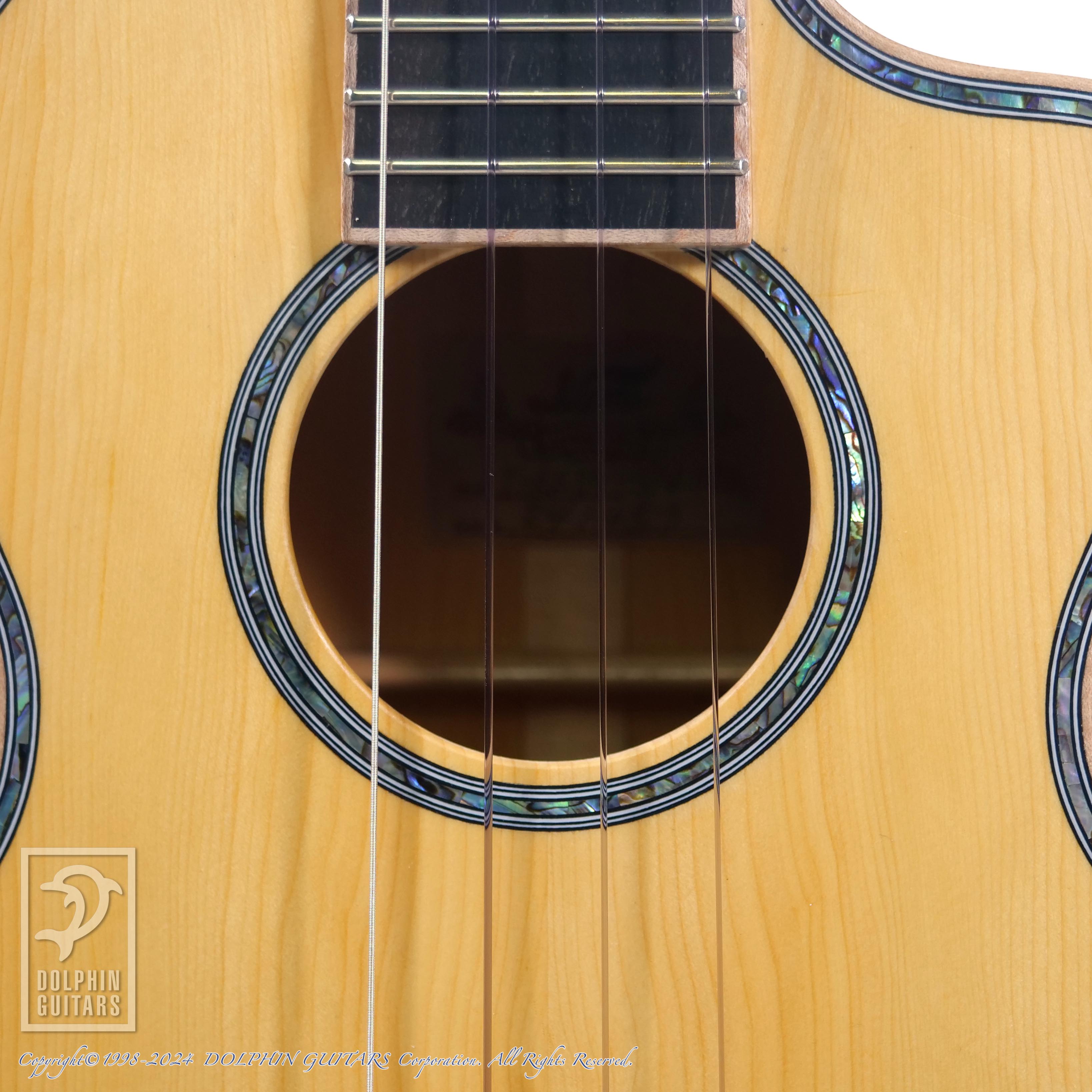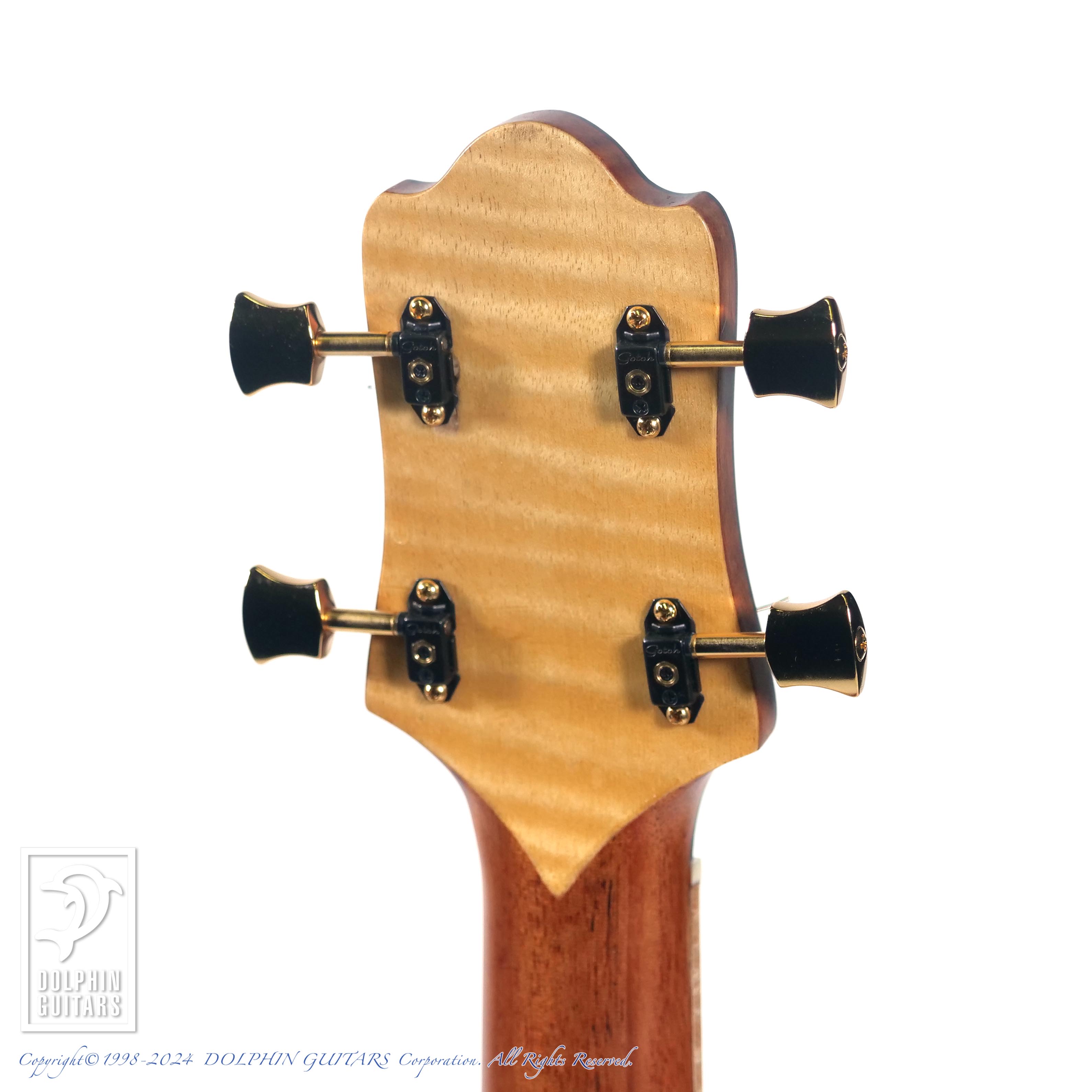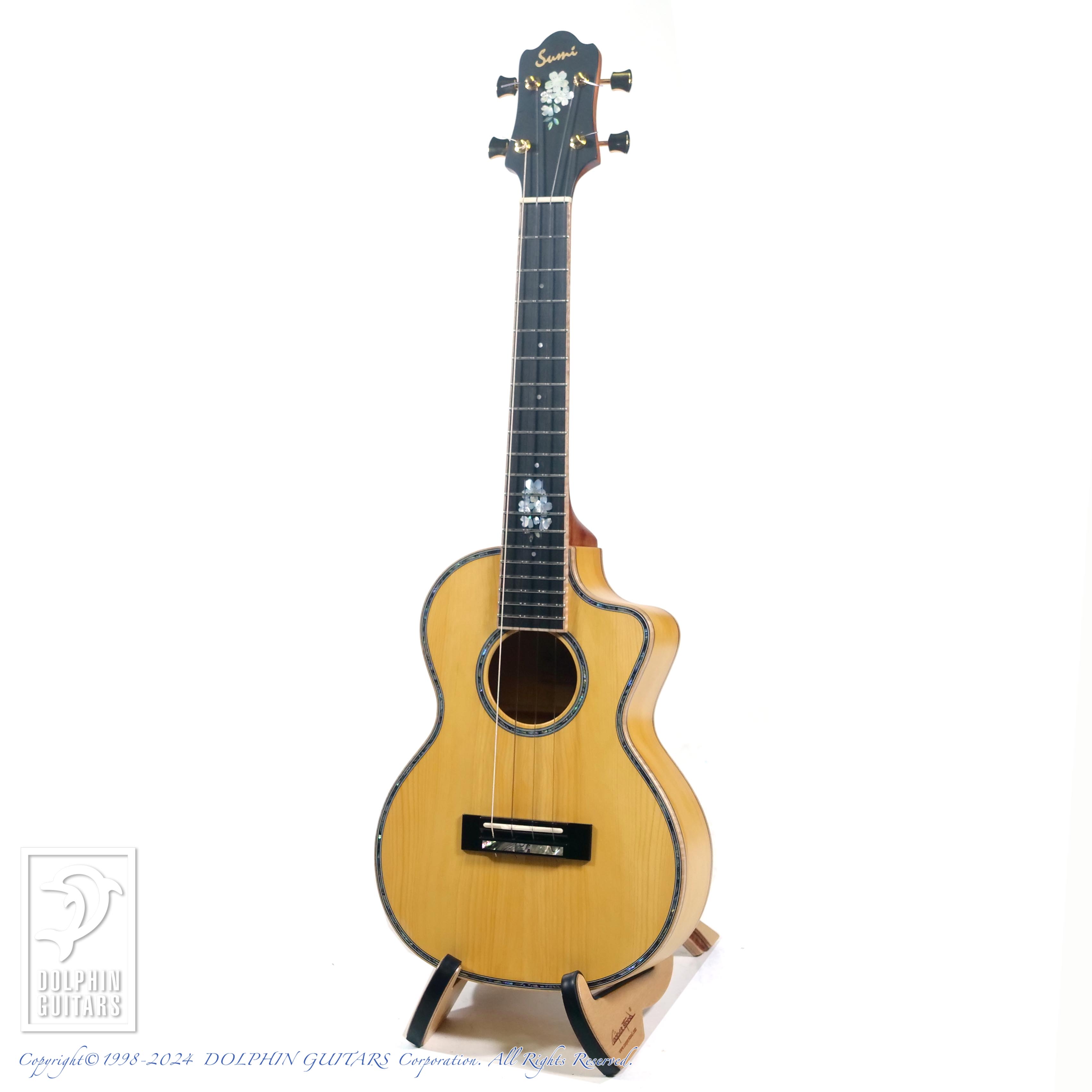 ウクレレ材としては珍しいカヤの木をボディに採用、そしてSUMI工房の御家芸とも言えるサクラのインレイがヘッドと12フレットに美しく入れられており、見る角度で様々に光り輝く様は、まるで本物が咲いているかのようです。
