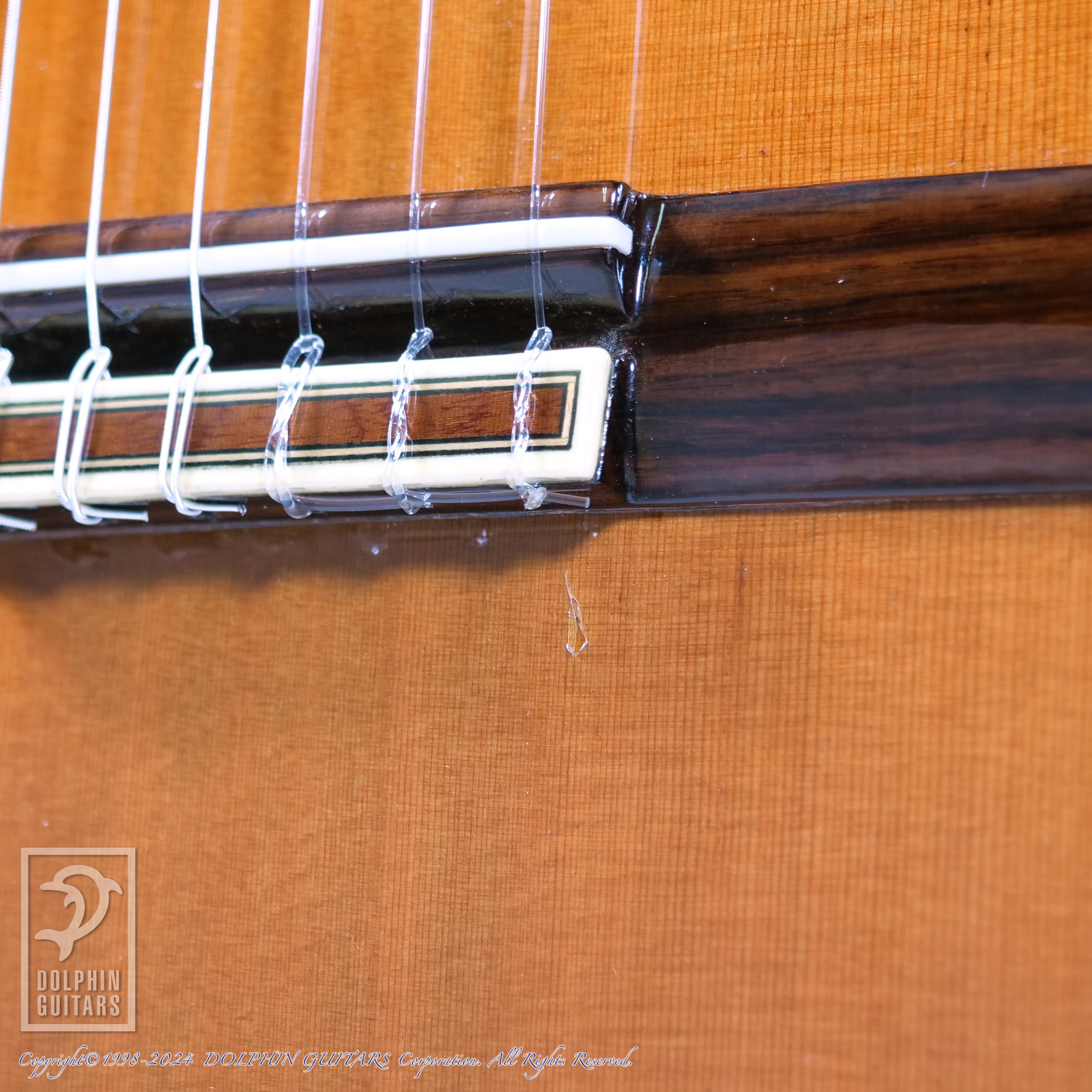 1弦駒下に弦とび痕や他にも年式なりの使用感は見られますが、クラックなどのダメージの大きい箇所はなく、このまま安心してお使いいただけます。