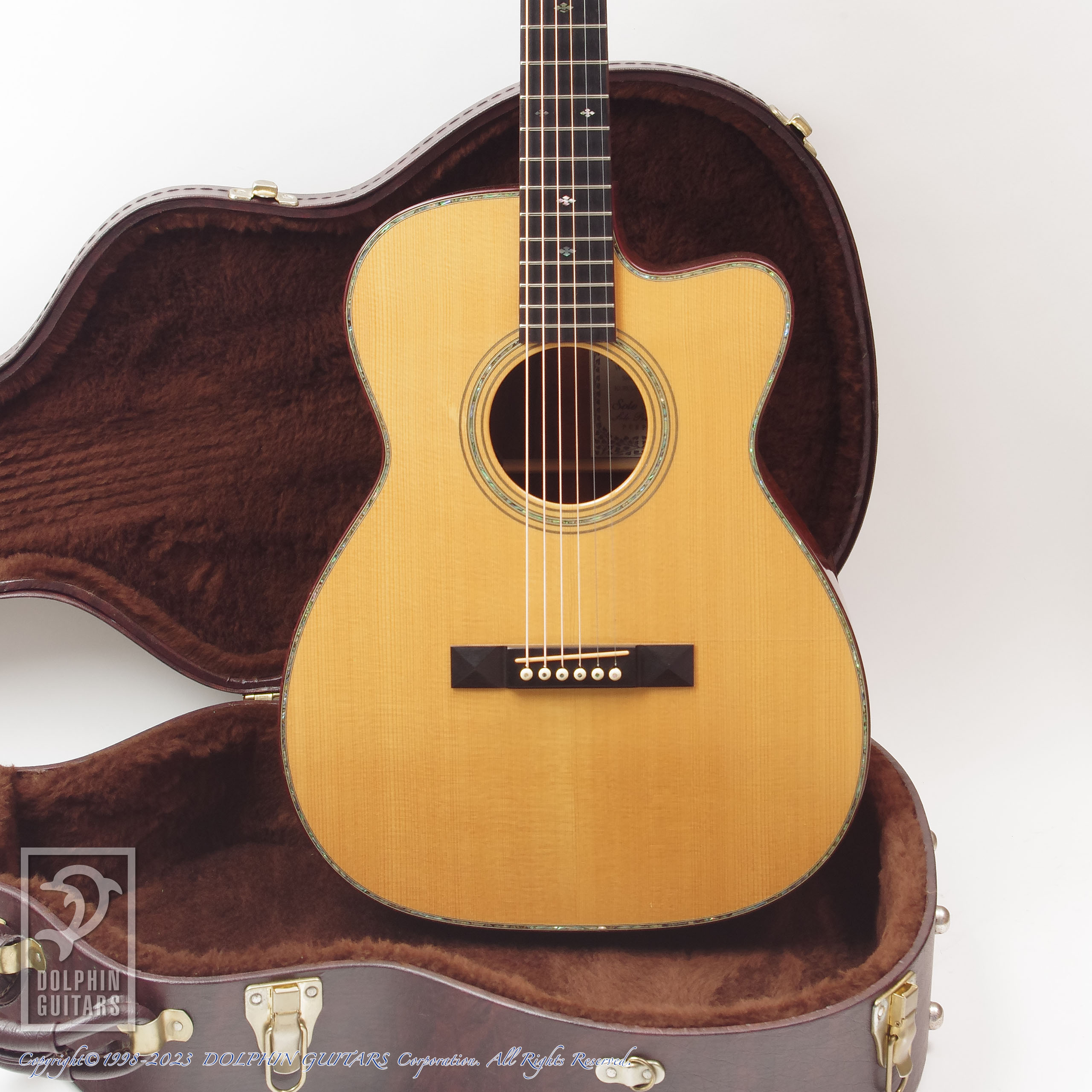 当時 当店スタッフが工房まで足を運び、選定したジャーマンスプルースとマダガスカルローズウッドを使用して製作されたショップオーダーモデルです。