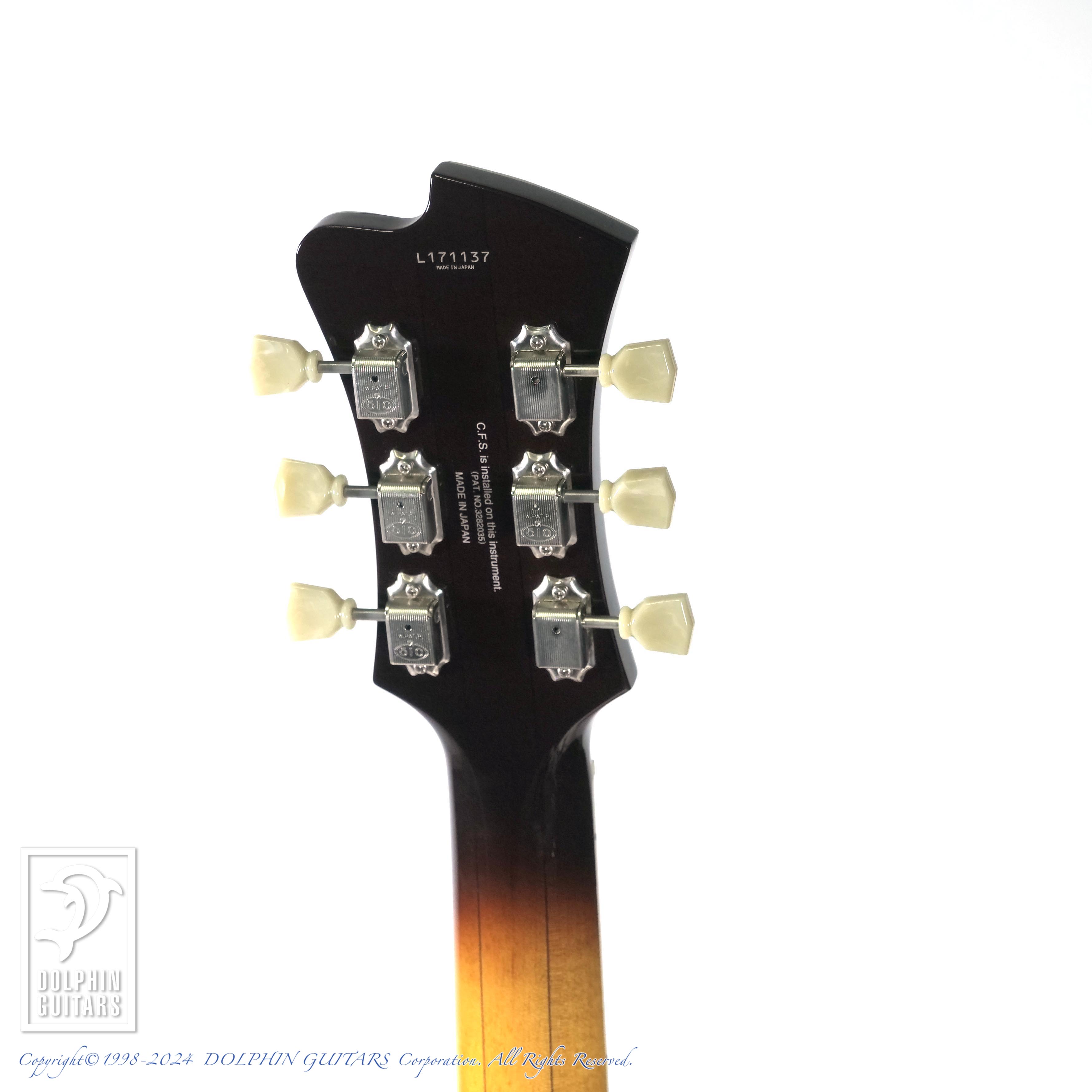 スプルーストップ・カーリーメイプルサイドバックボディ、ローズウッド指板、ジャズバーストカラーの組み合わせ。ピックアップ配列がHHで、幅広いジャンルに対応可能な王道オールラウンドモデルです。