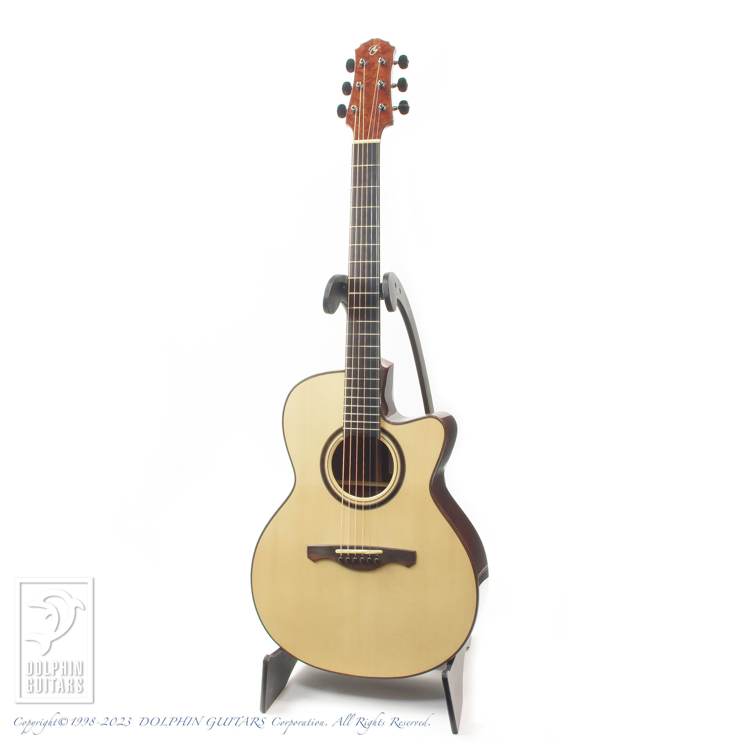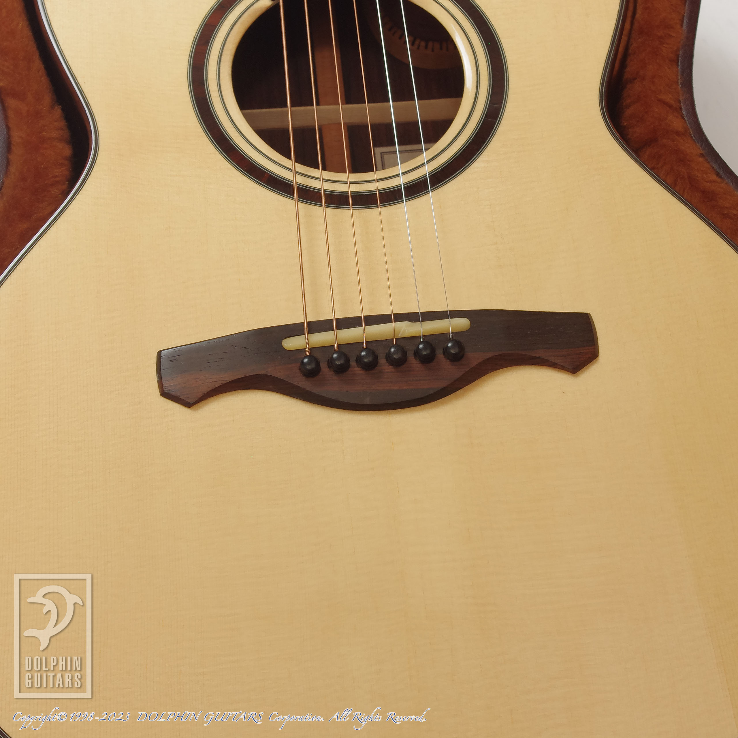 様々な産地のスプルースがある中でレスポンスの早さや柔らかいトーンが特徴のイングルマンスプルースに、ローズウッドの属性の中でも重厚さや音の太さが強調される音響特性を持つココボロ。これらの特性がしっかりと引き出したこちらのモデル。
