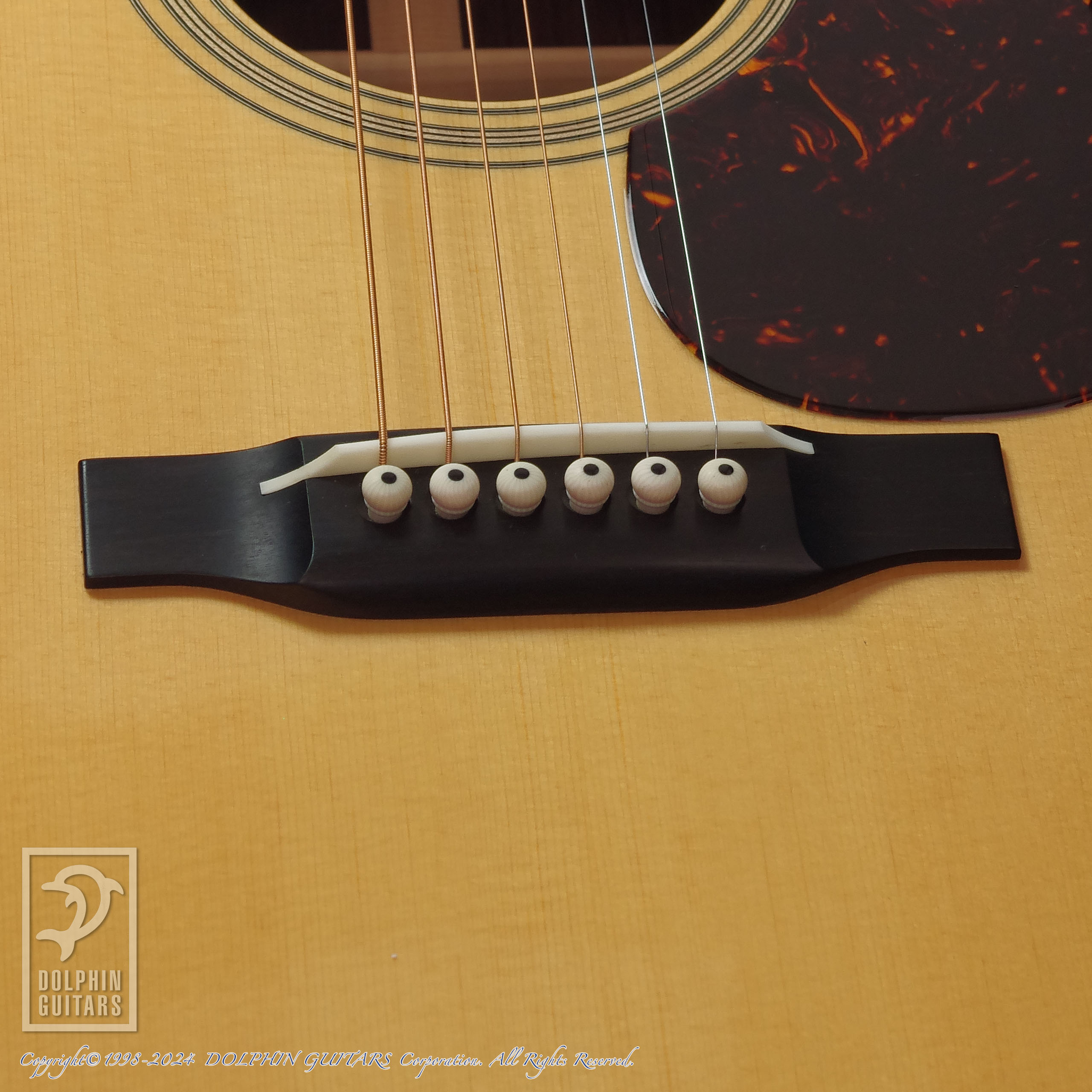 その他:牛骨ナット&サドル(ロングサドル)、43mmナット幅、645mmスケール、リアシフト・ノンスキャロップド・Xブレーシング、ヘリンボーントリム、塗り込みピックガード。