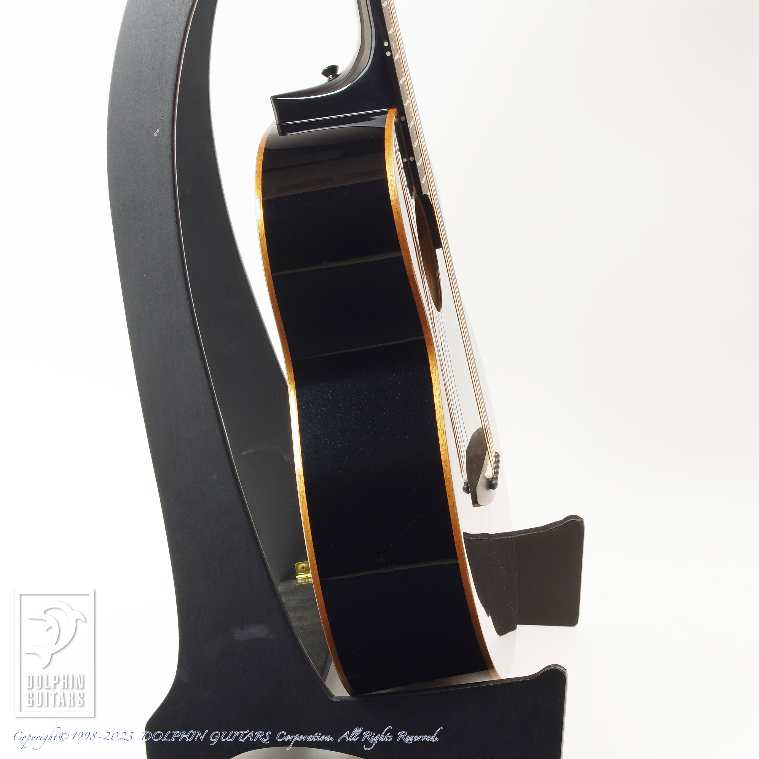 メイプルをシダー材の表面に配した美しいギター。シースルーブラック塗装により、杢目が浮かび上がるような幻想的な印象を与えます。サイド&バックはほのかにラメが輝く凝った仕様です。コンパクトな見た目とは裏腹にディープなトーンが楽しめます。
