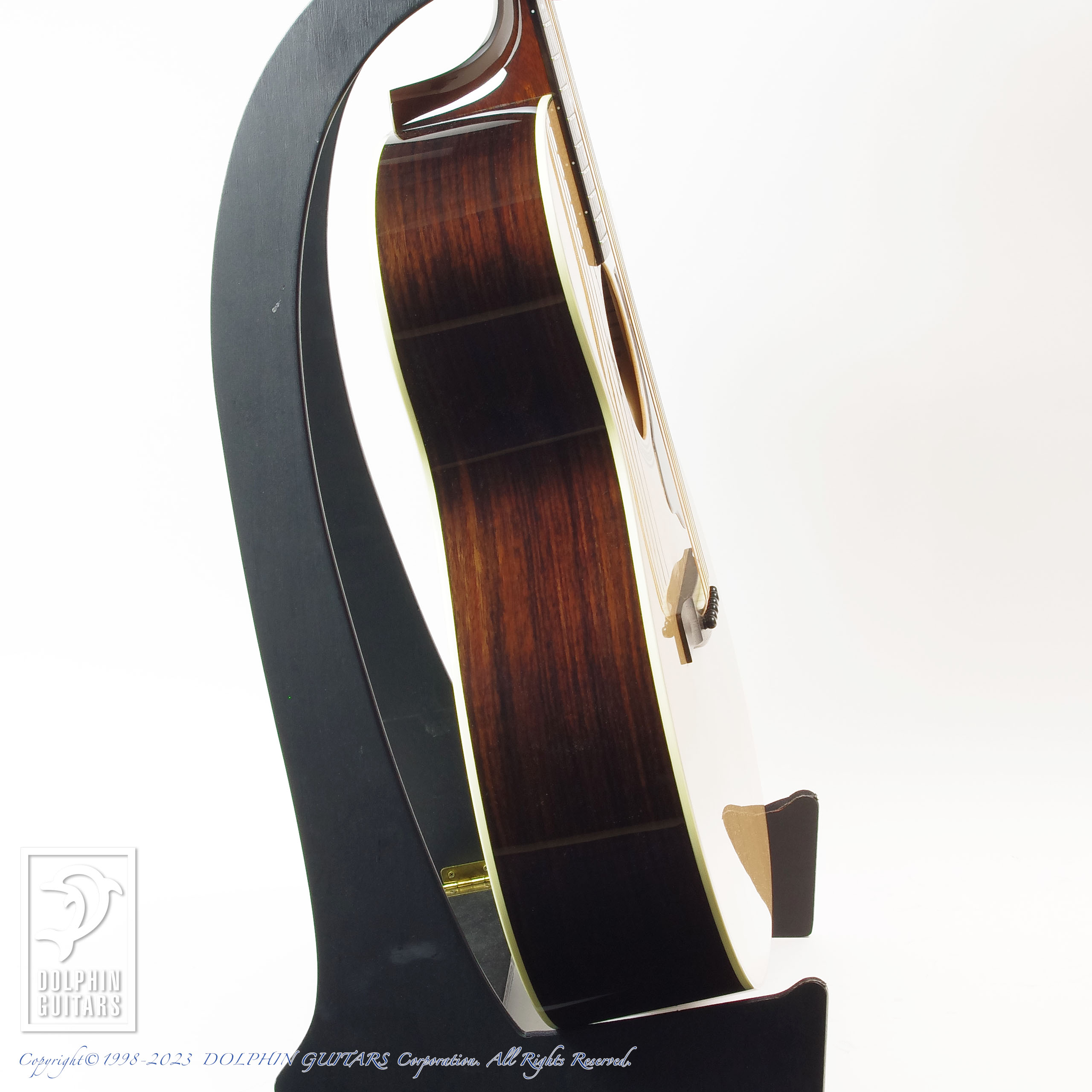 ローアクションのセッティングかつ、ソフトタッチでも十分な音圧を得られるように設計されており、抜群の操作性能を誇ります。全体的にやや甘いトーンが心地よく、その中にキラリと感じるスプルースの高音特性、インディアンローズの持つ低域の重量感もバランス良く混ざり合います。