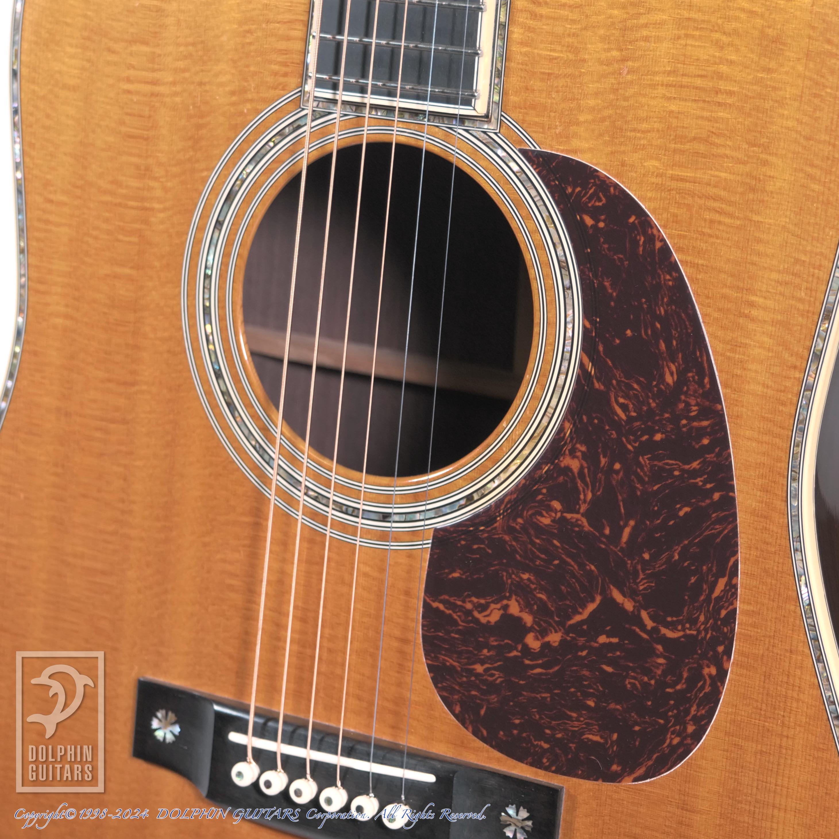 マーティンのスタイル42は1800年代から存在する由緒正しいモデル。0-42や000-42といったヴィンテージギターも有名ですが、ドレッドノートのスタイル42 D-42の歴史は浅く、誕生は1995年。スタイル42の装飾類に、スキャロップドXブレイスのサウンドメイクがすぐに人気となり、今もなお多くのファンを魅了するモデルです。