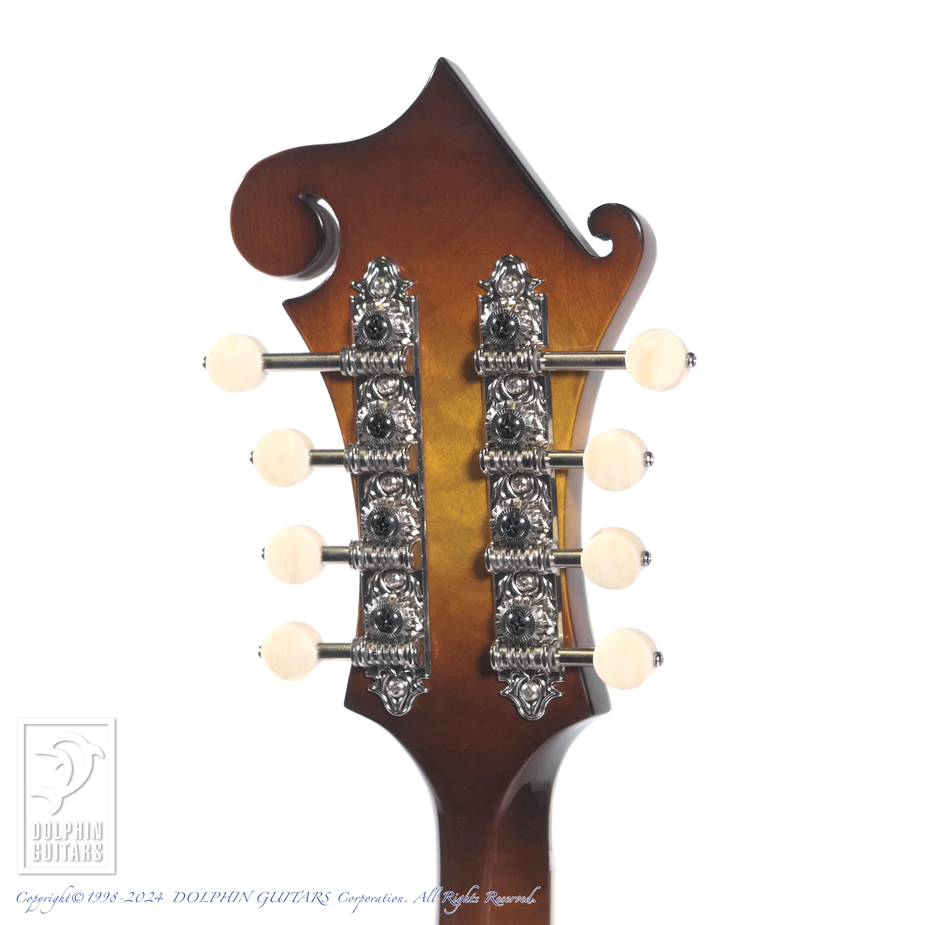 1930年代のF-5を彷彿とさせるブロックポジションマークと透明度の高いブラウン系のサンバースト、そしてスリムなウッドピックガードが美しい仕上がりとなっており、工芸品のようなオーラを放ちます。所有欲を満たしてくれるマンドリンを言えます。
