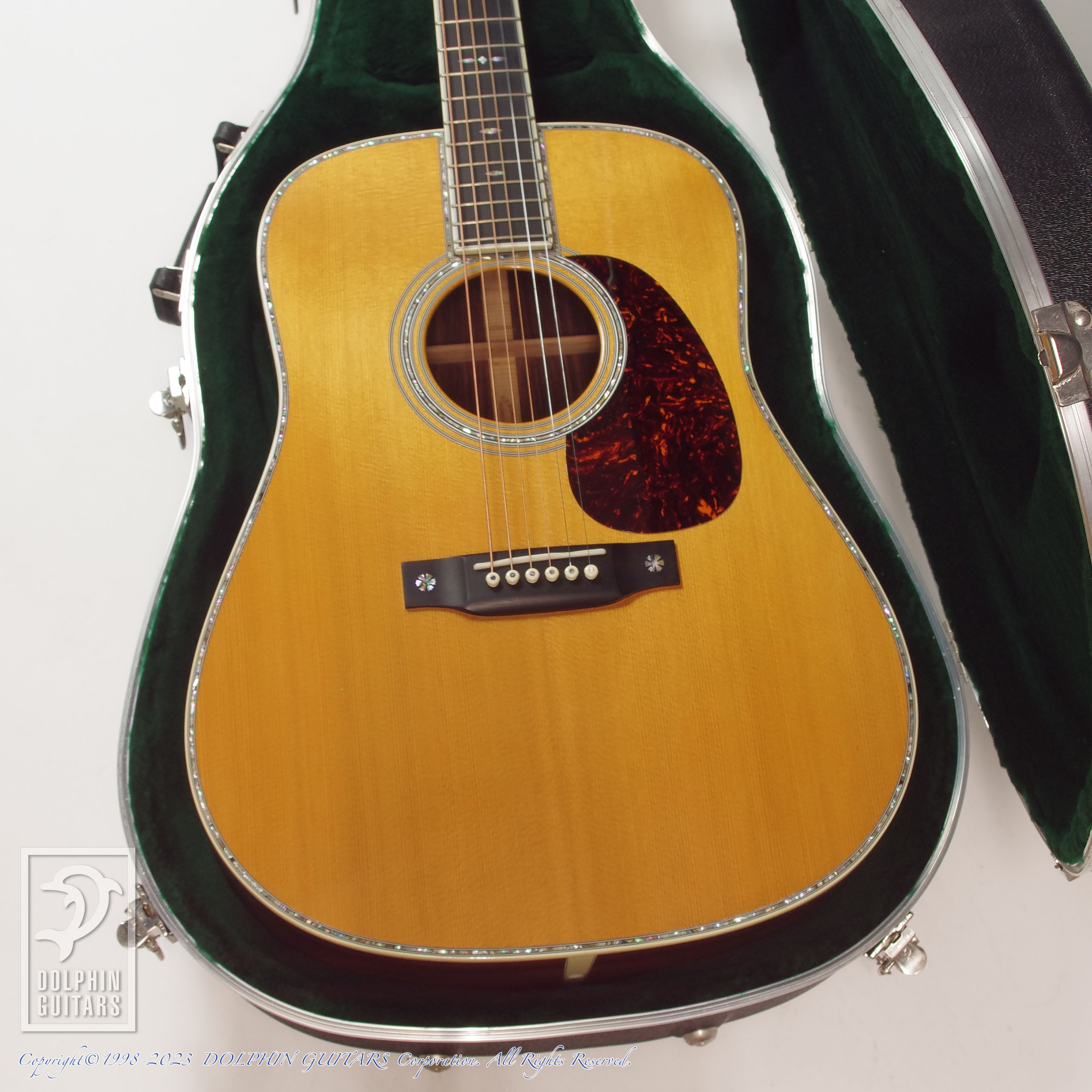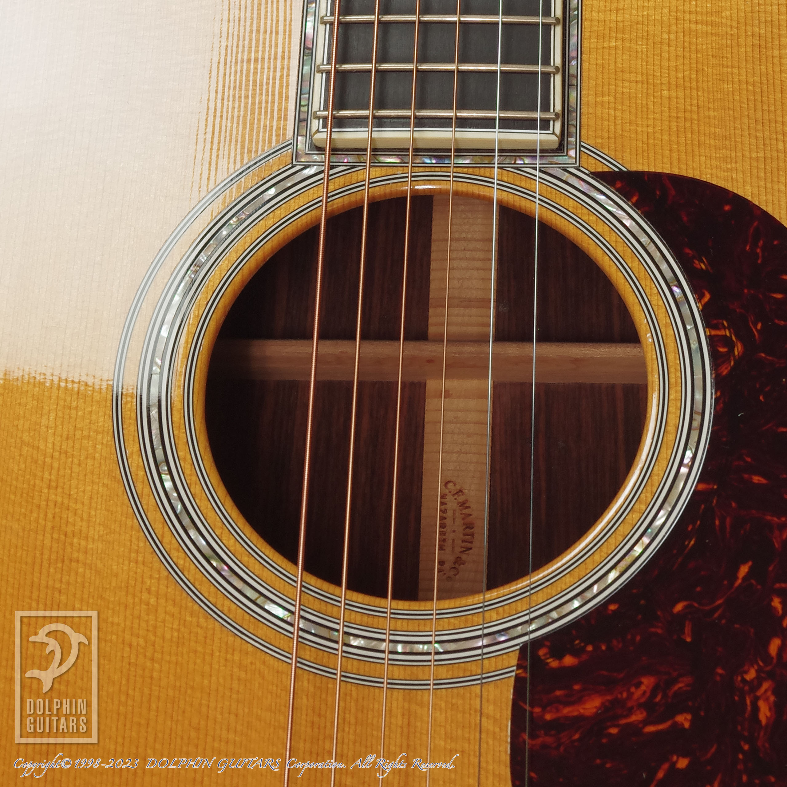 マーティンのスタイル42は1800年代から存在する由緒正しいモデル。0-42や000-42といったヴィンテージギターも有名ですが、ドレッドノートのスタイル42 D-42の歴史は浅く、誕生は1995年。スタイル42の装飾類に、スキャロップドXブレイスのサウンドメイクがすぐに人気となり、今もなお多くのファンを魅了するモデルです。