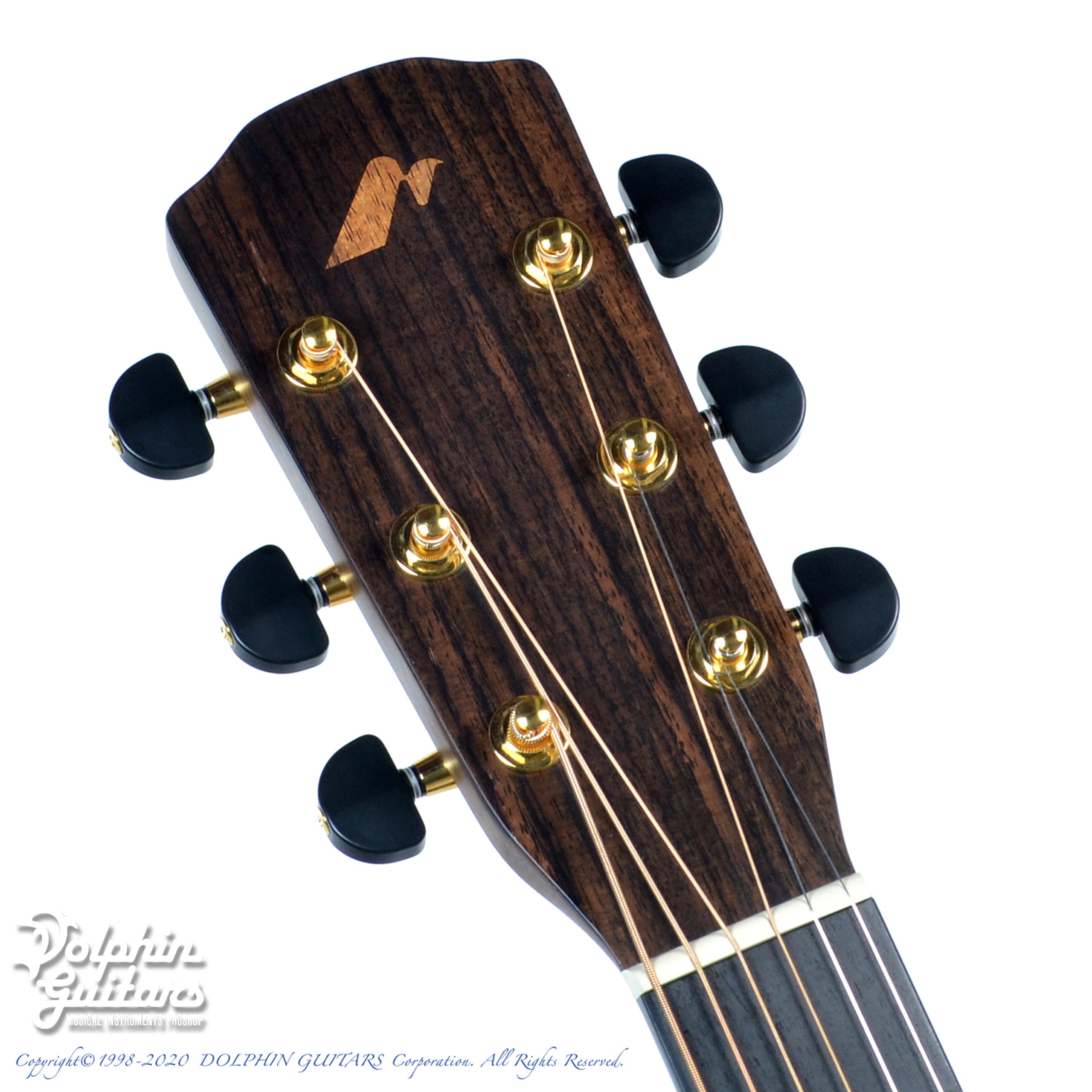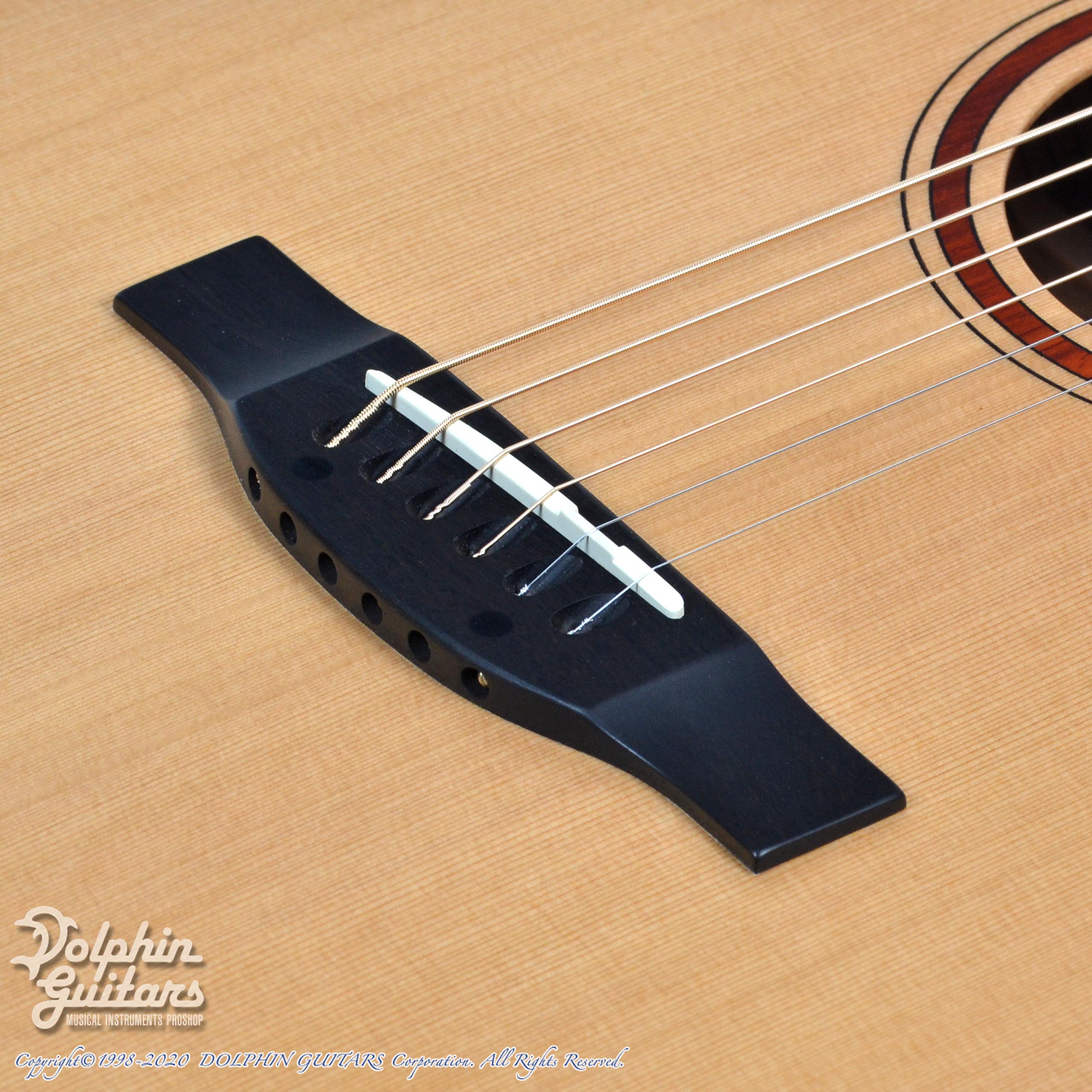 シダー・トップ、マホガニーサイド&バック、マホガニーネック、エボニー指板&ブリッジ、ピンレス・スルーブリッジ、ゴトー糸巻き仕様。