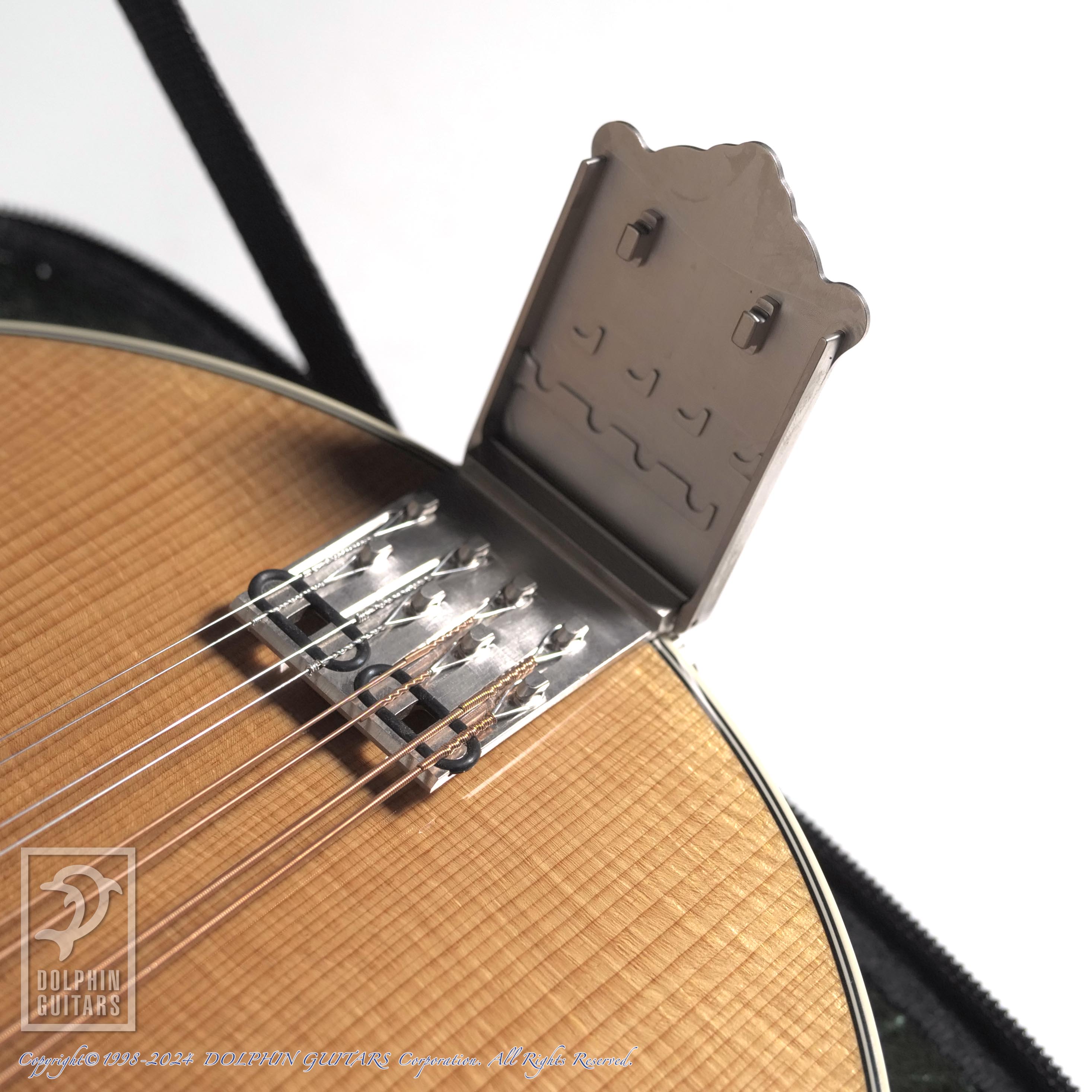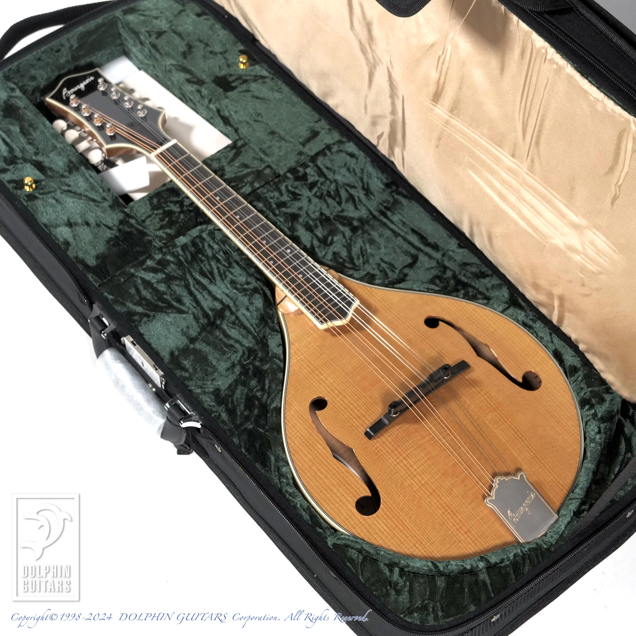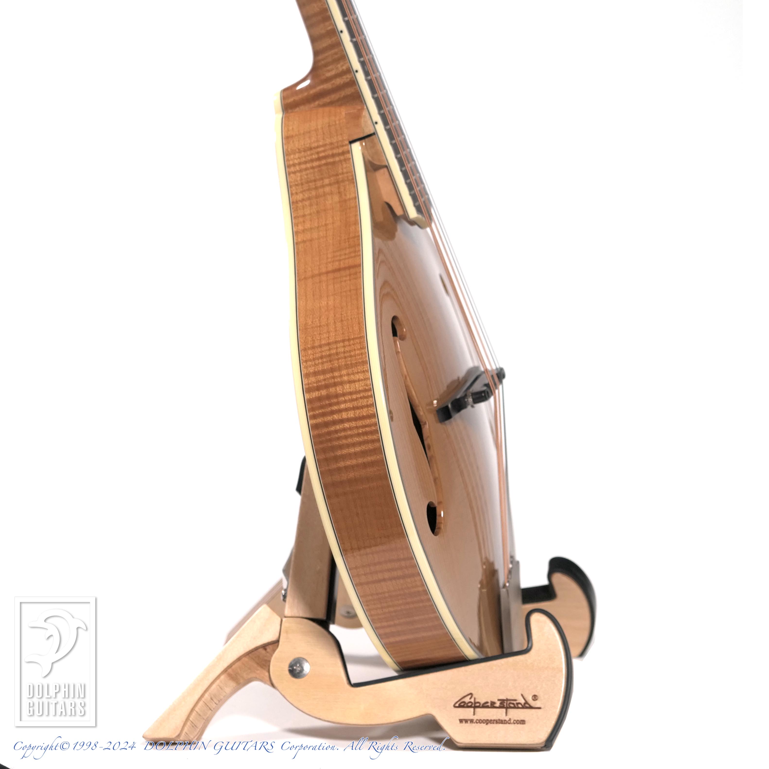 ダナ・ボジョアーが設計し、本人が最高グレードの素材(トリファイド)をハンドセレクト。現在、世界で大人気の弦楽器ブランド”イーストマン”のワークショップにて丁寧に製作されており、随所に拘りが感じられるプロダクトとなっております。エイジドトーンの飴色のカラーリングが、大変美しく、所有欲を満たしてくれるマンドリンと言えるでしょう。またテイルピースは”ビルジェームス”デザインによる、カバーを蝶番で留めている画期的なパーツを採用しております。よって、カバーをつけ忘れる・カバーを落としてしまうなどのトラブルが無くなり、温故知新とはこのことでしょう。