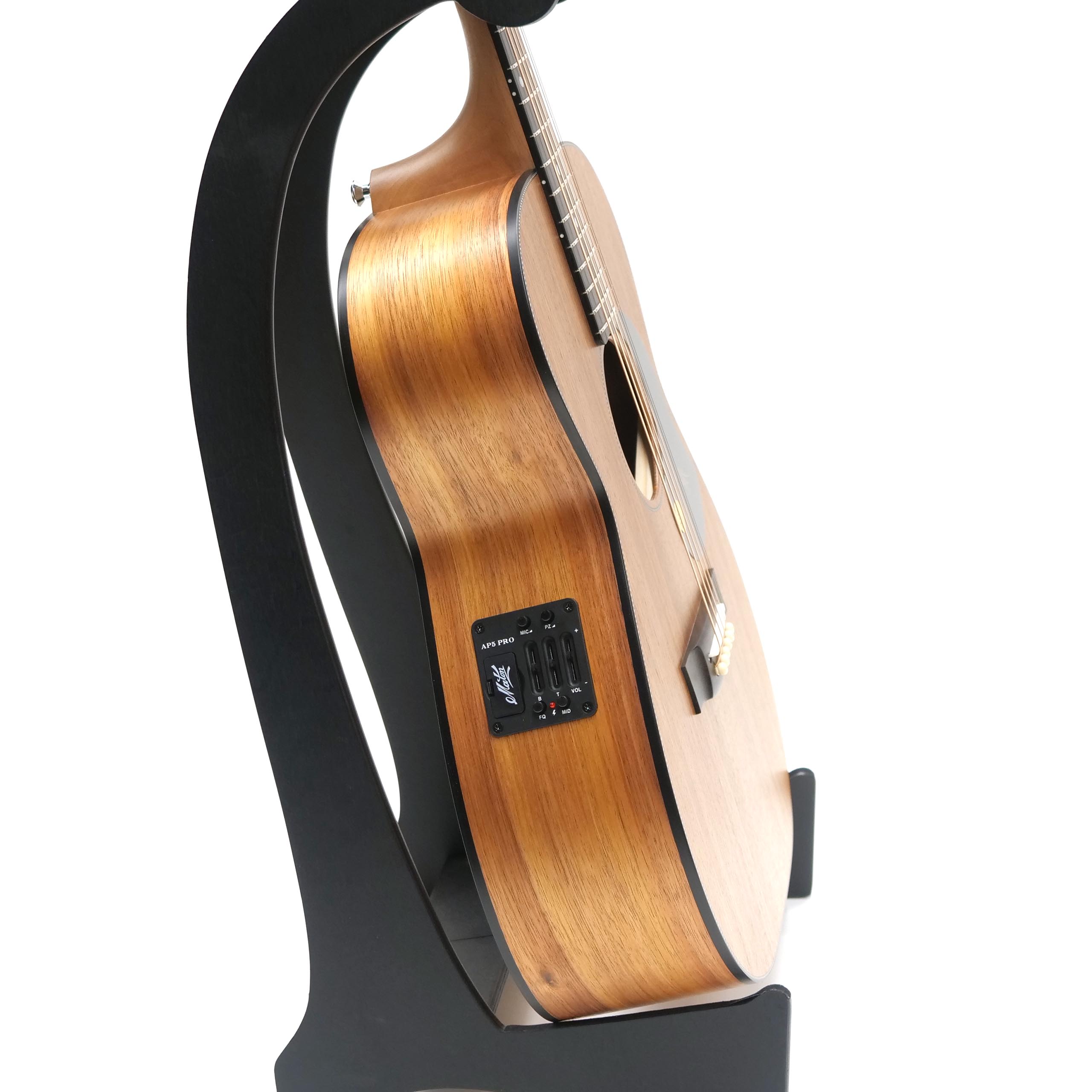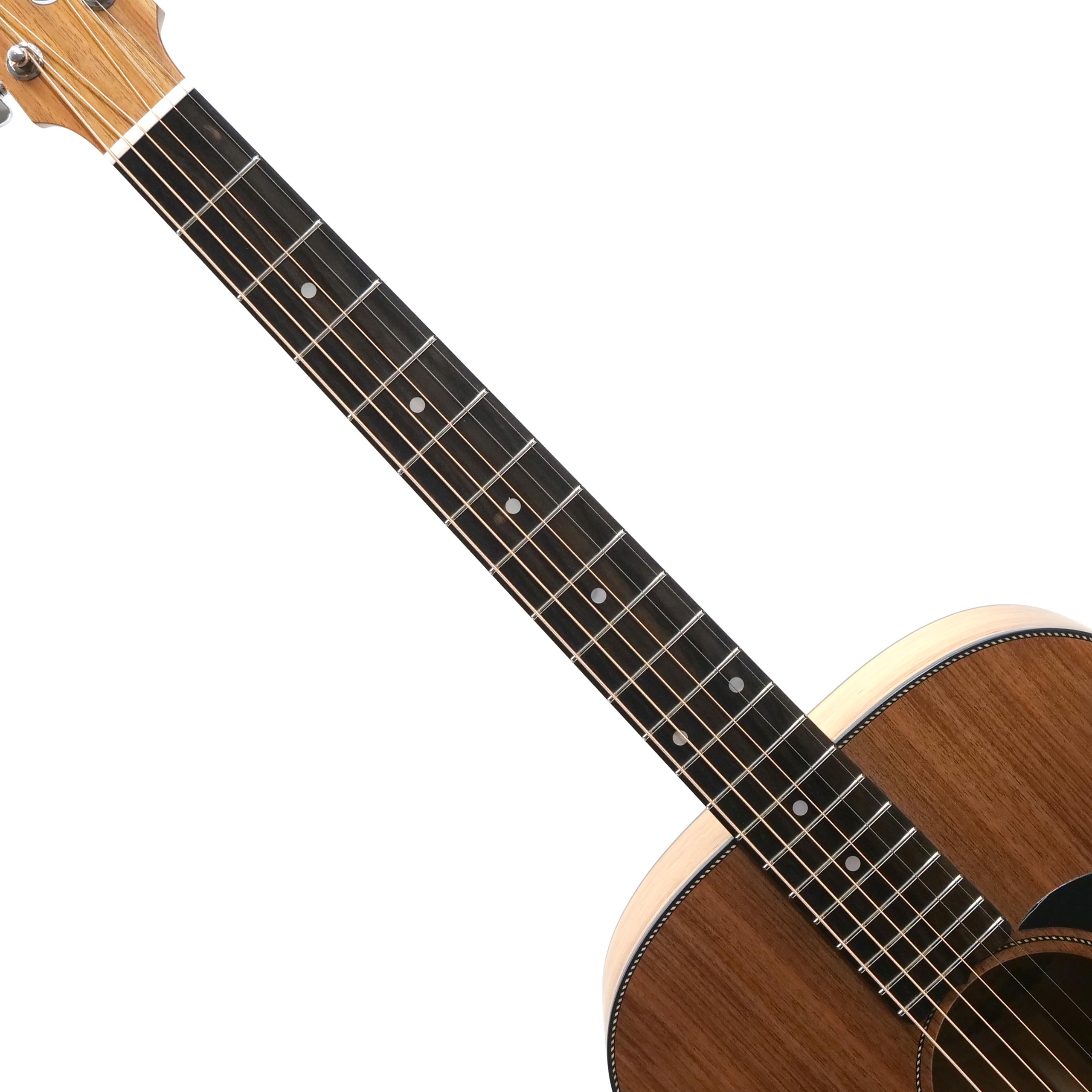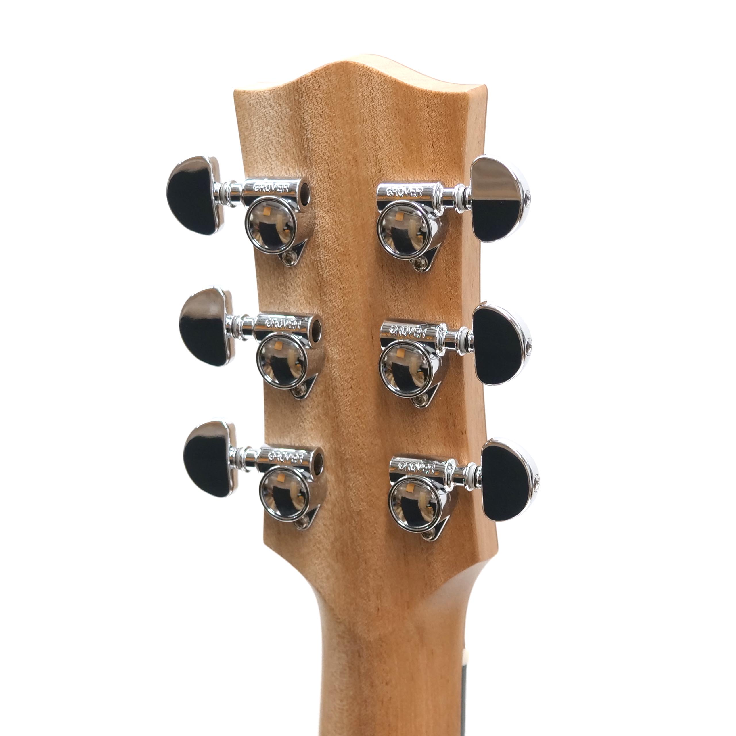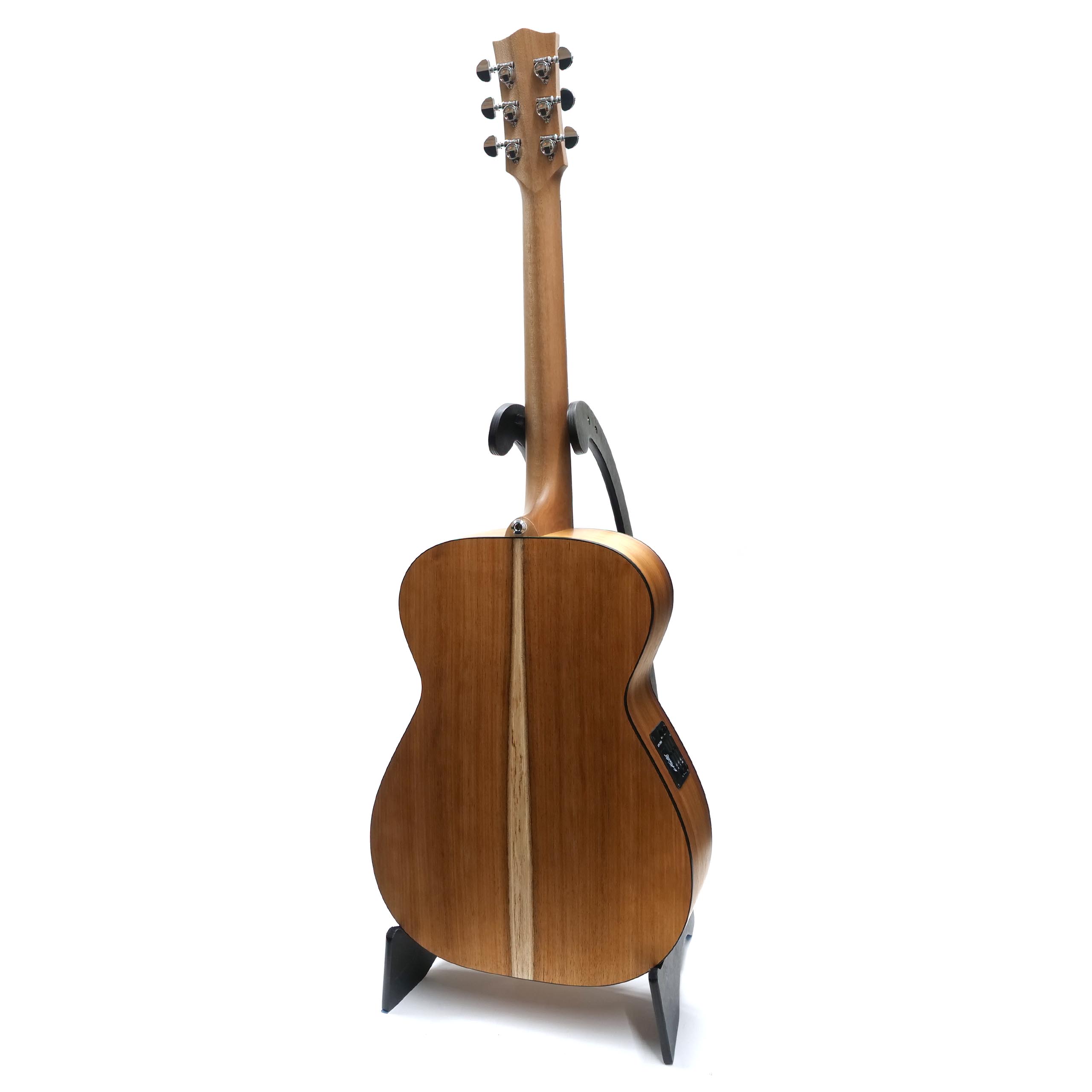 ボディ幅は000と00サイズの中間でありながら、ディープボディである為、抱え易い小柄でありながらも豊かなベース音を生み出し、極限まで高められたセットアップ、ローポジションからハイ・ポジションまで、指板に吸い付く様な弾き心地がテクニカルなプレイをサポートします。