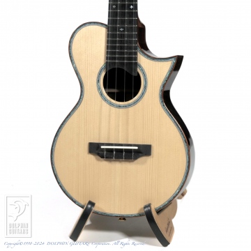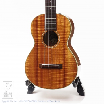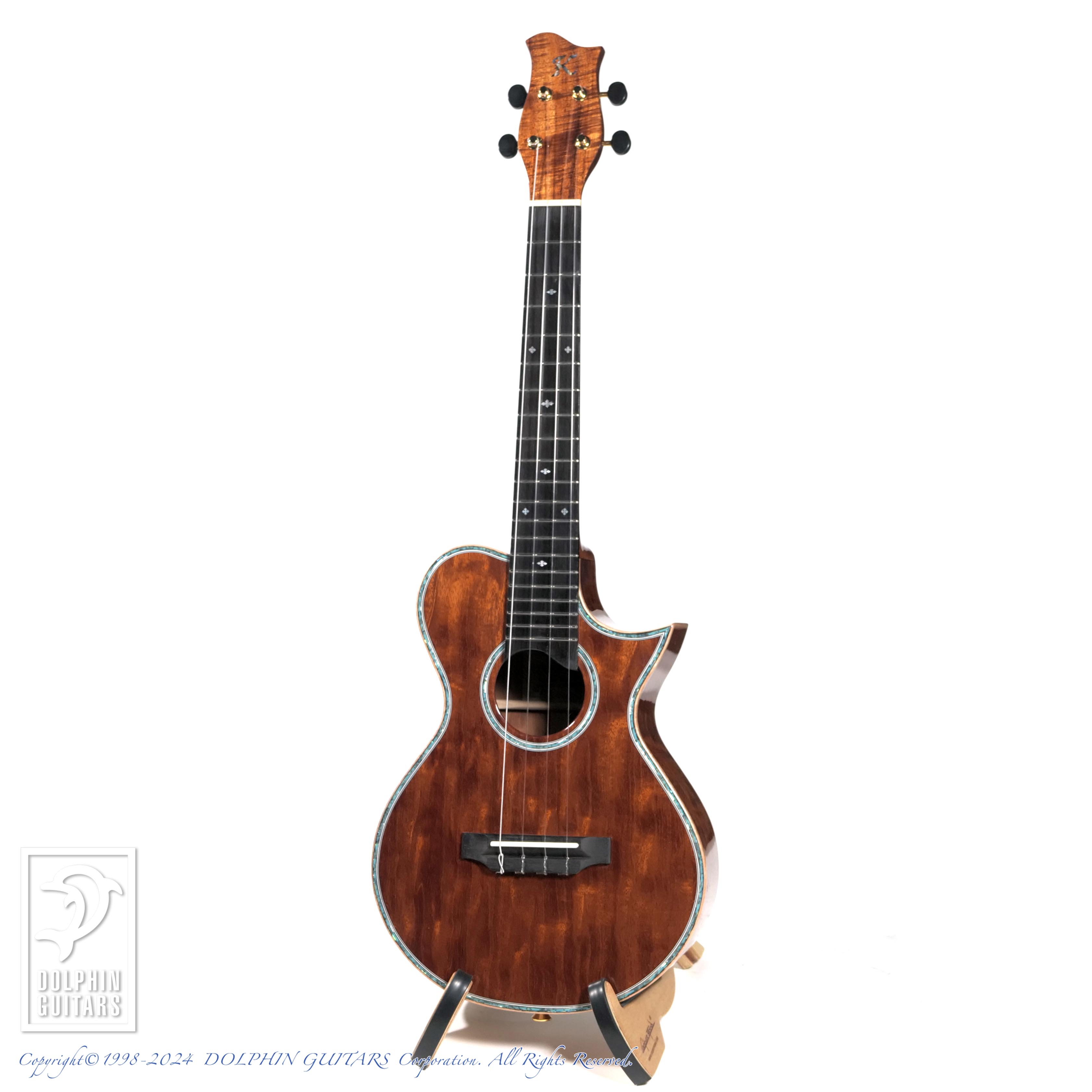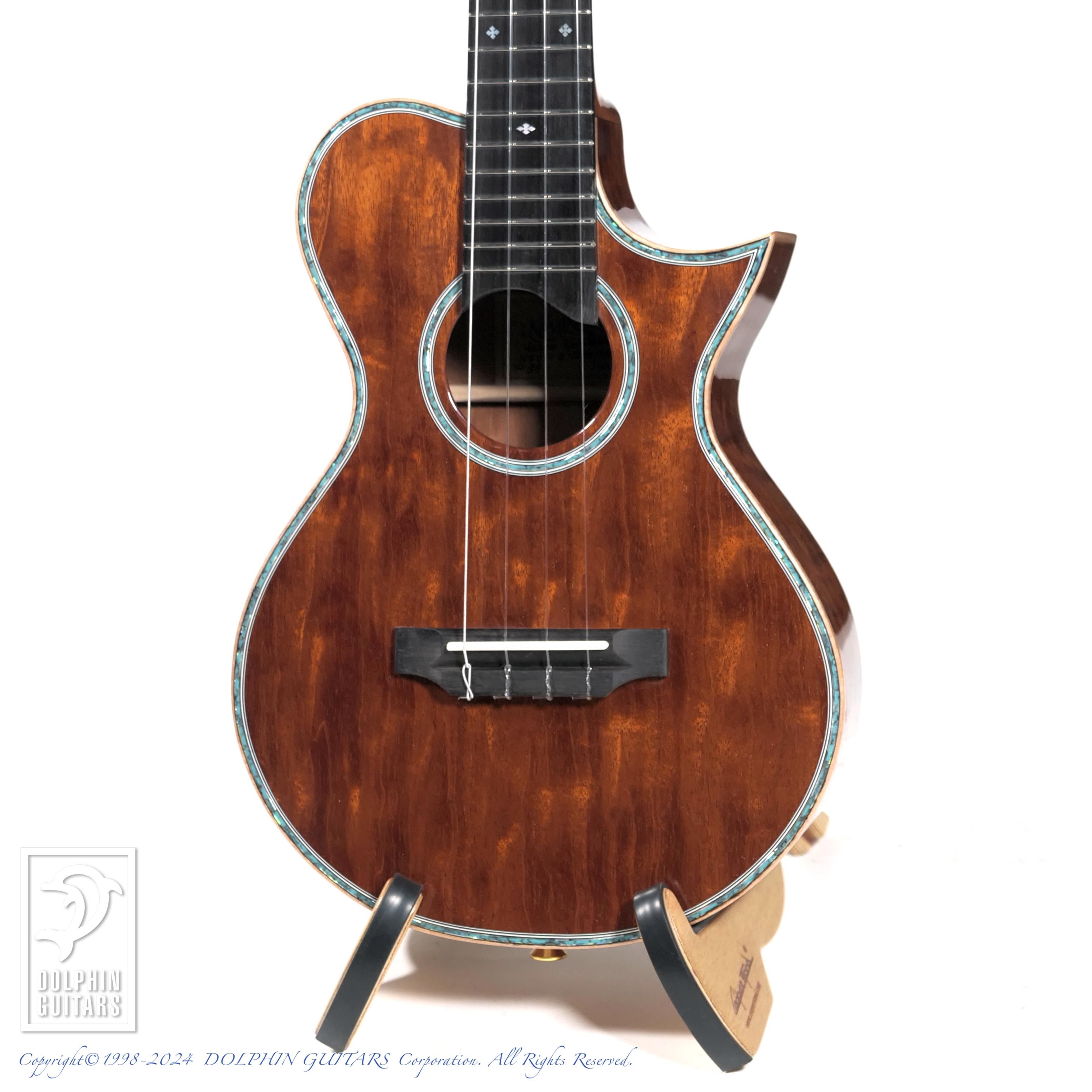 川上氏の代名詞でもあるニューウェーブシェイプのテナーウクレレ、流れるようなカッタウェイラインが美しいテナーウクレレです。