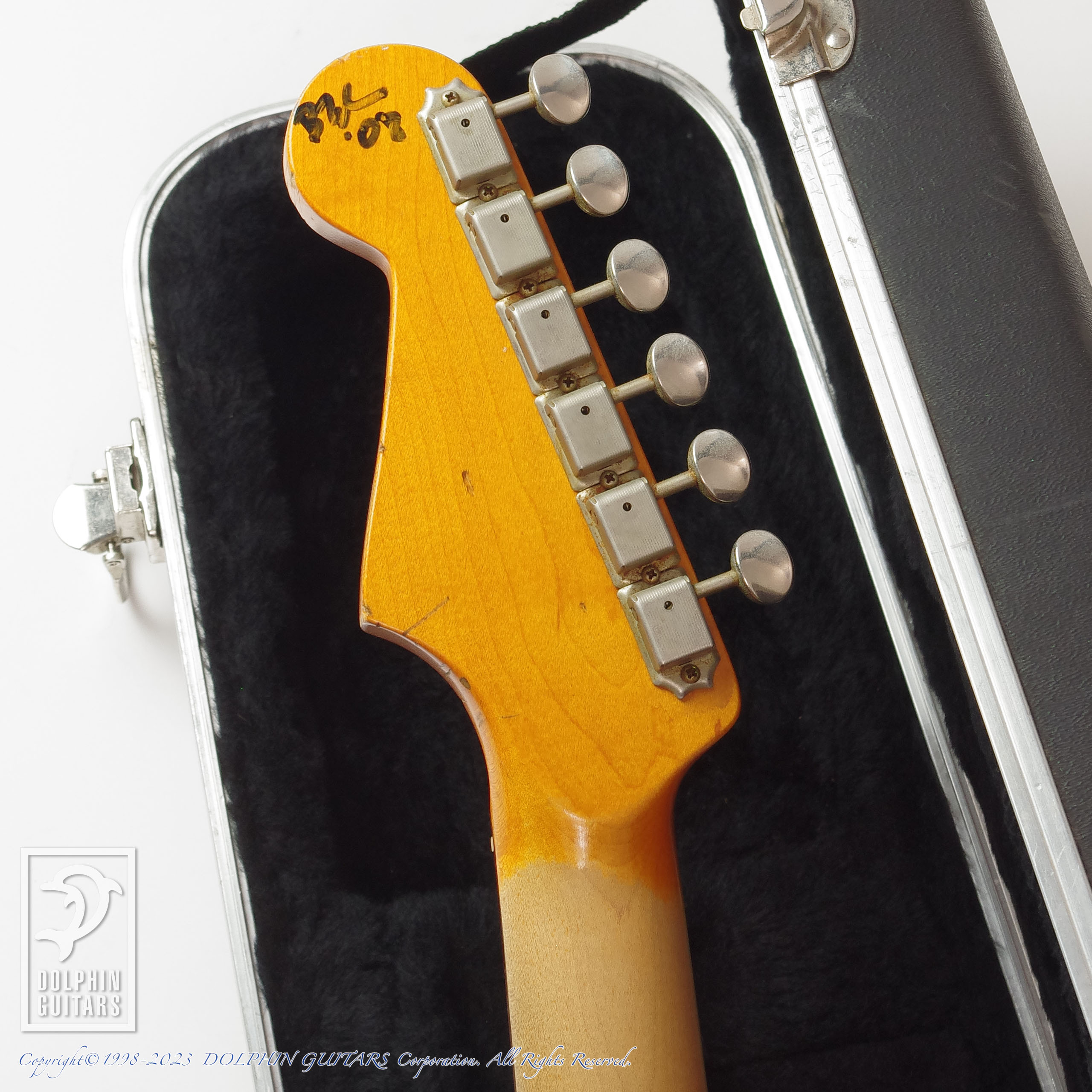 フレット周りや電気系統も使用感はなく、修理もありません。初期のナッシュギターズはヘッドロゴがなく、現在貼ってあるフェンダーデカールは製作後ユーザーによってに貼られた物であると思われます。エイジドによるダメージ加工も多く施していた時代であり、外観の傷は製作時からの物と思われ、フレットの減りもなく使用感の少ない個体と言えます。ケースはFenderのハードケースが付属します。