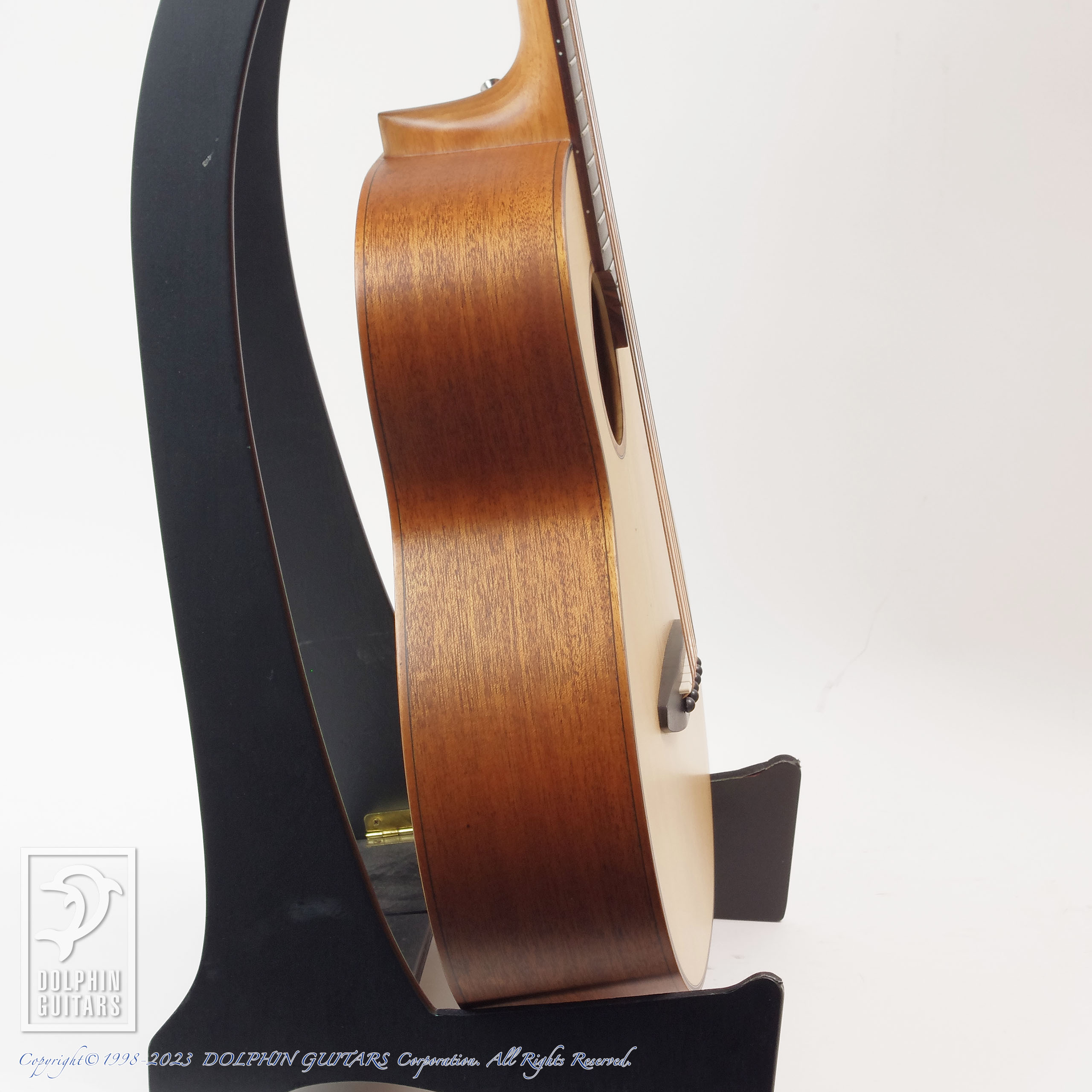 スプルーストップの明るいトーンにハリのあるサウンドと、マホガニーの柔らかさや軽やかさを感じさせ、このサイズからイメージされる以上の音量や表現力に驚かれるでしょう。ご自宅でパッと手にとって楽しめるギターであります。