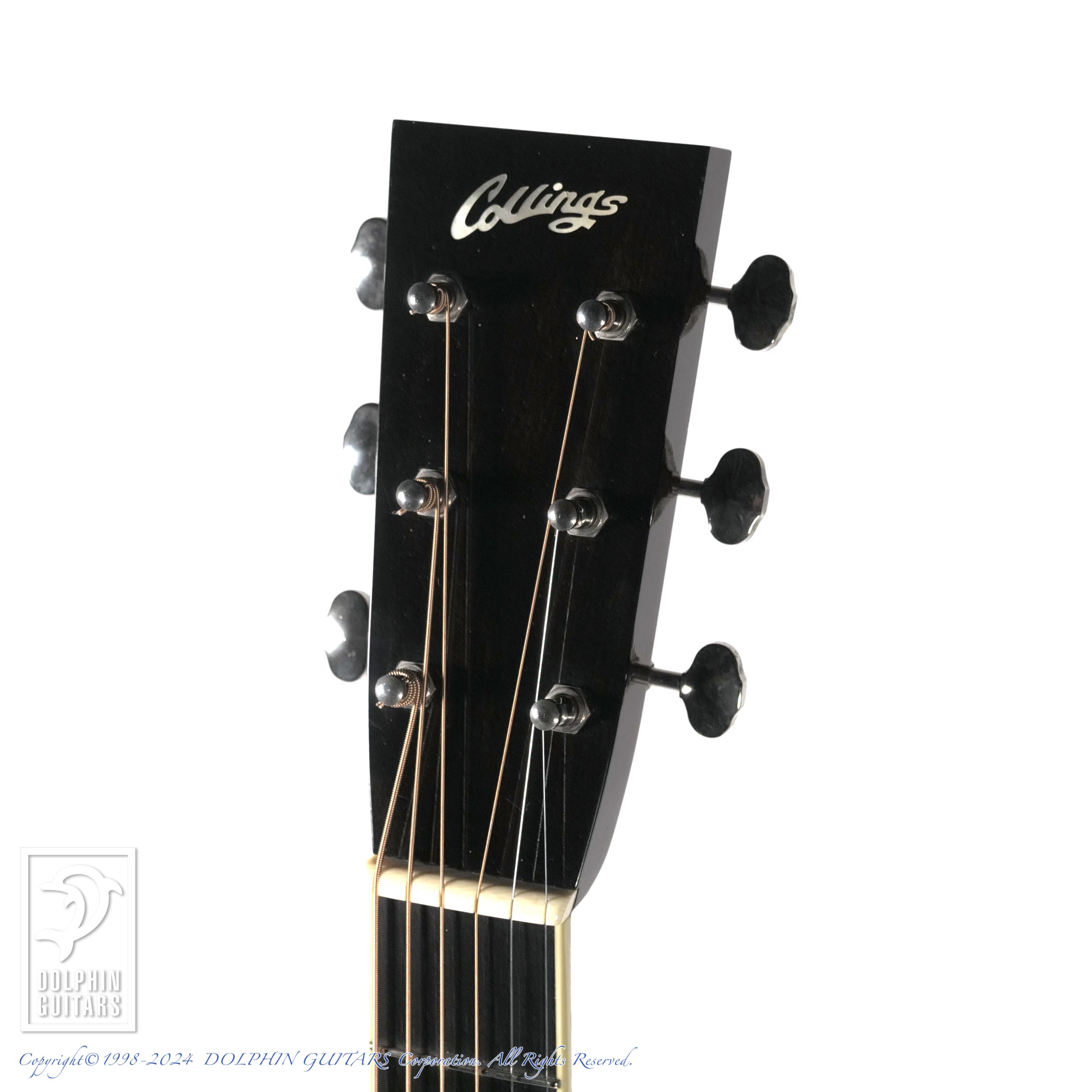 綺麗な杢のアディロンダックスプルースとグラマラスなハカランダのコントラストの効いたビジュアルは、コリングスの工作精度の高さと相まって工芸品のようなオーラを放ちます。