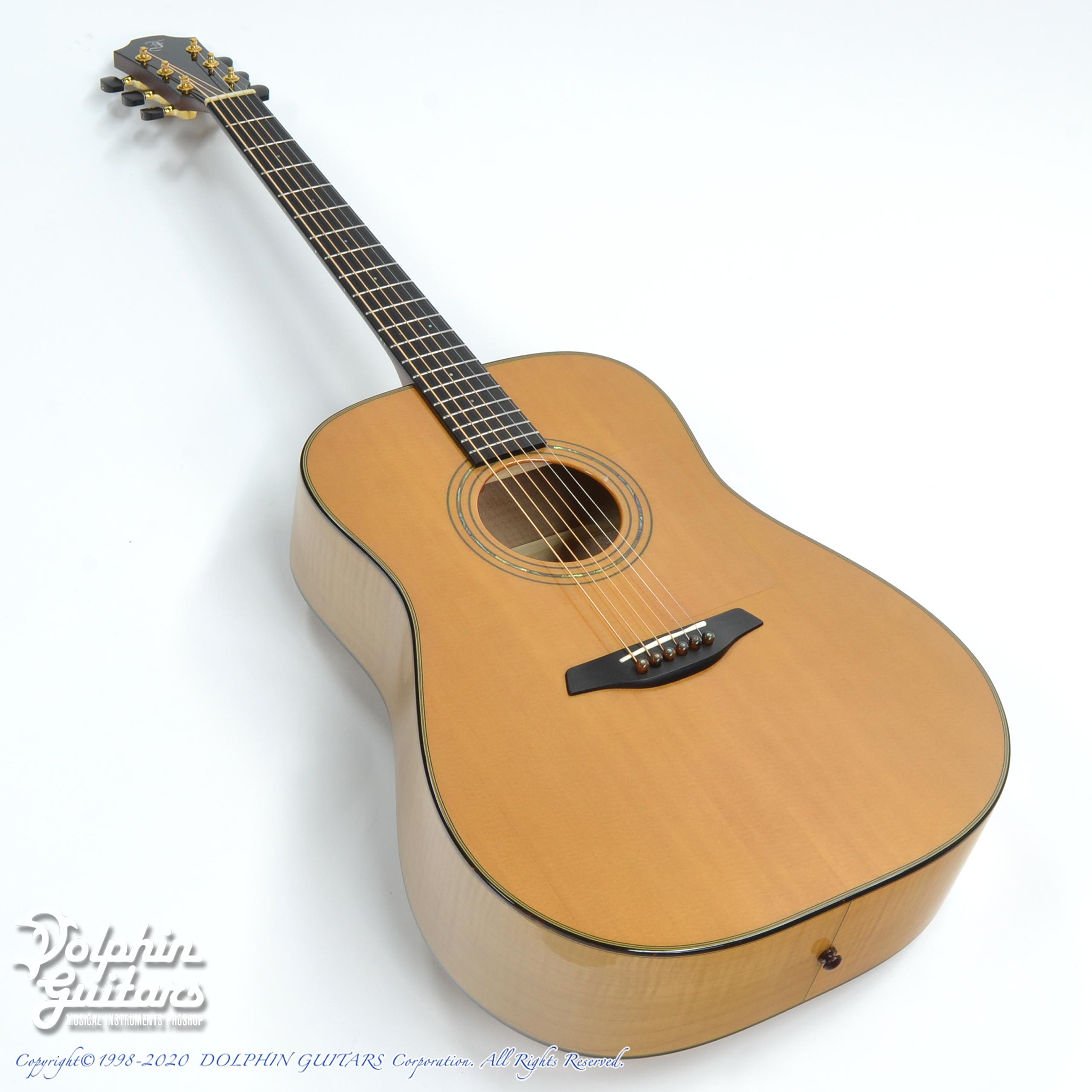 シトカスプルース・トップ、フレイム・メイプル・サイド&バック、マホガニーネック、エボニー・フィンガーボード&ブリッジ、スキャロップドXブレイス、GOTOH 510 PEG。