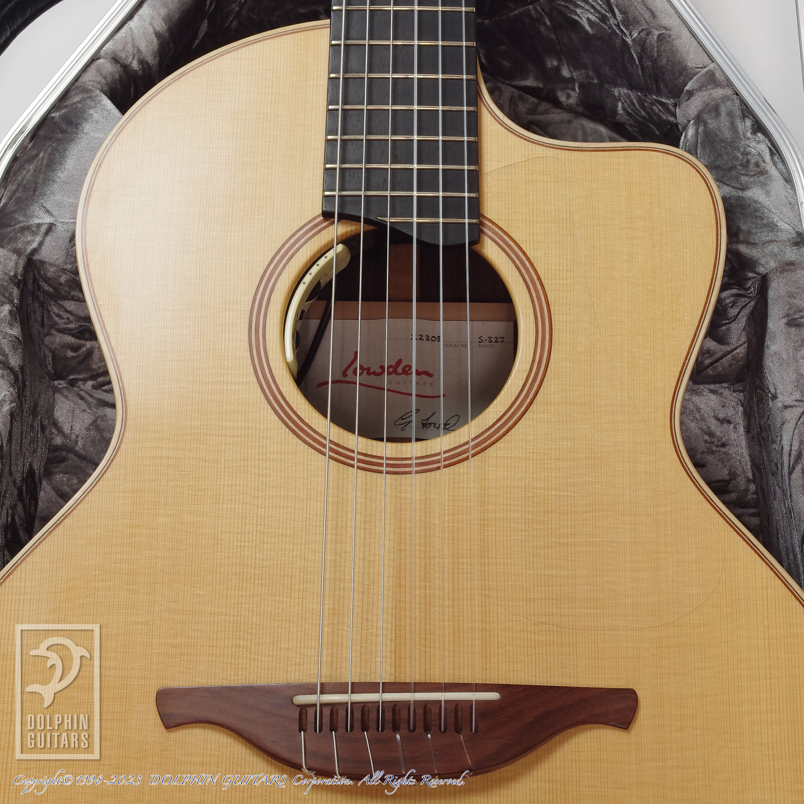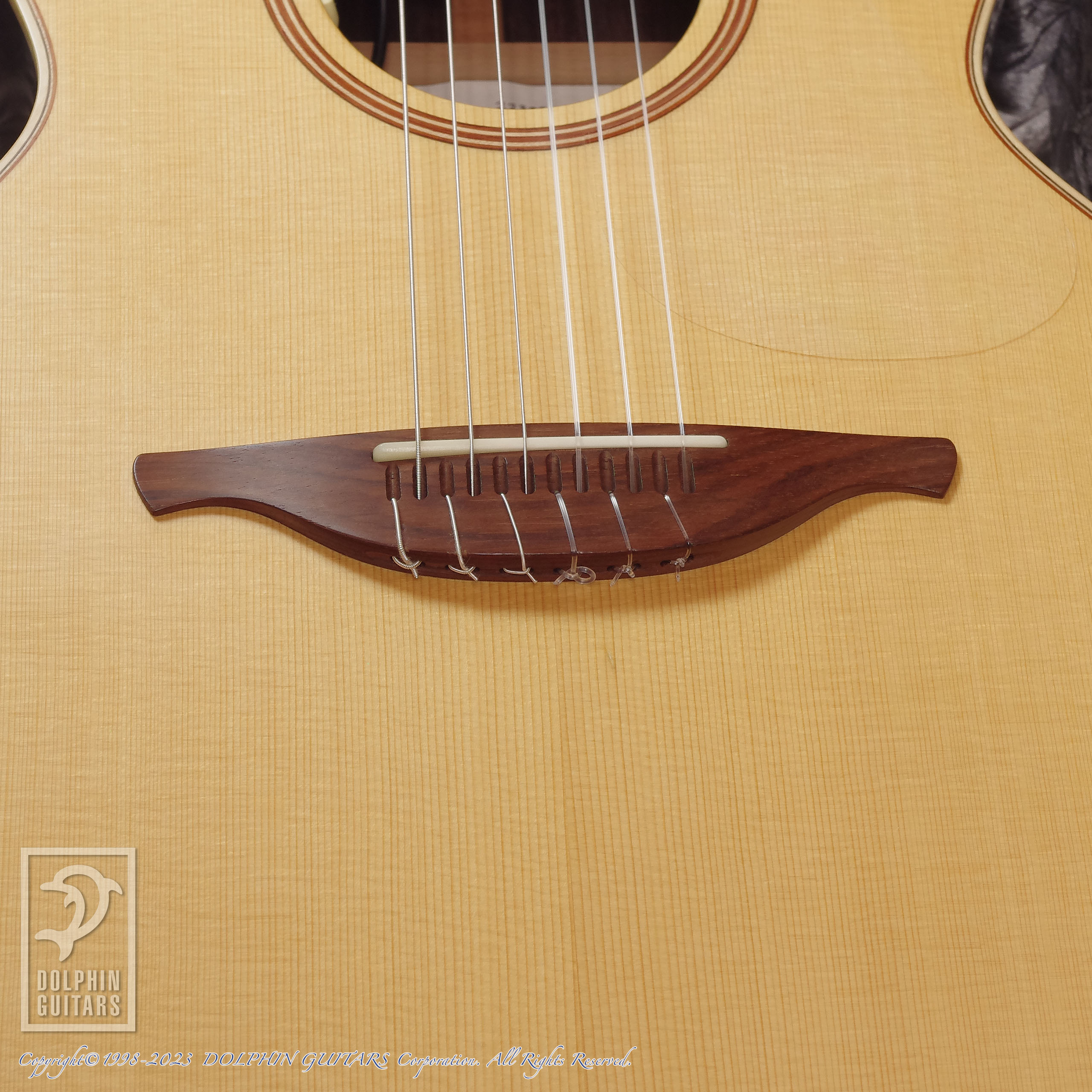 S-32Jのトップ材スタンダード仕様はシトカスプルースでありますが、本器はカスタムオプションのアルパインスプルースを採用し、シトカとはまた異なったトーンを感じさせます。ナイロン弦モデルもまた、ローデンでしか味わえないサウンドがあり、派手さはありませんが一音ならしていただくとこの上質さを体感いただけるでしょう。